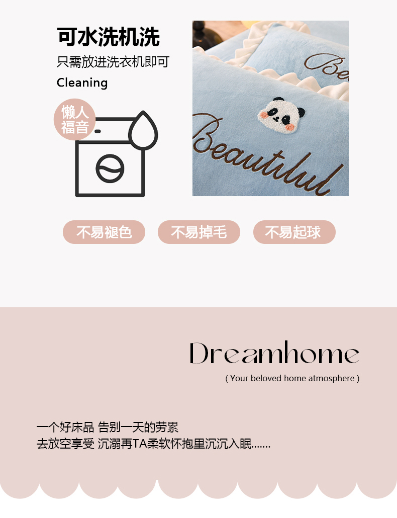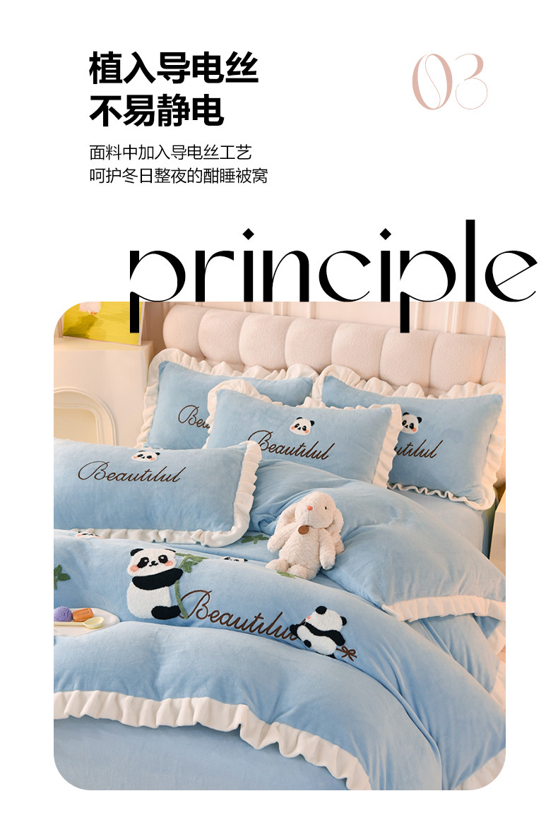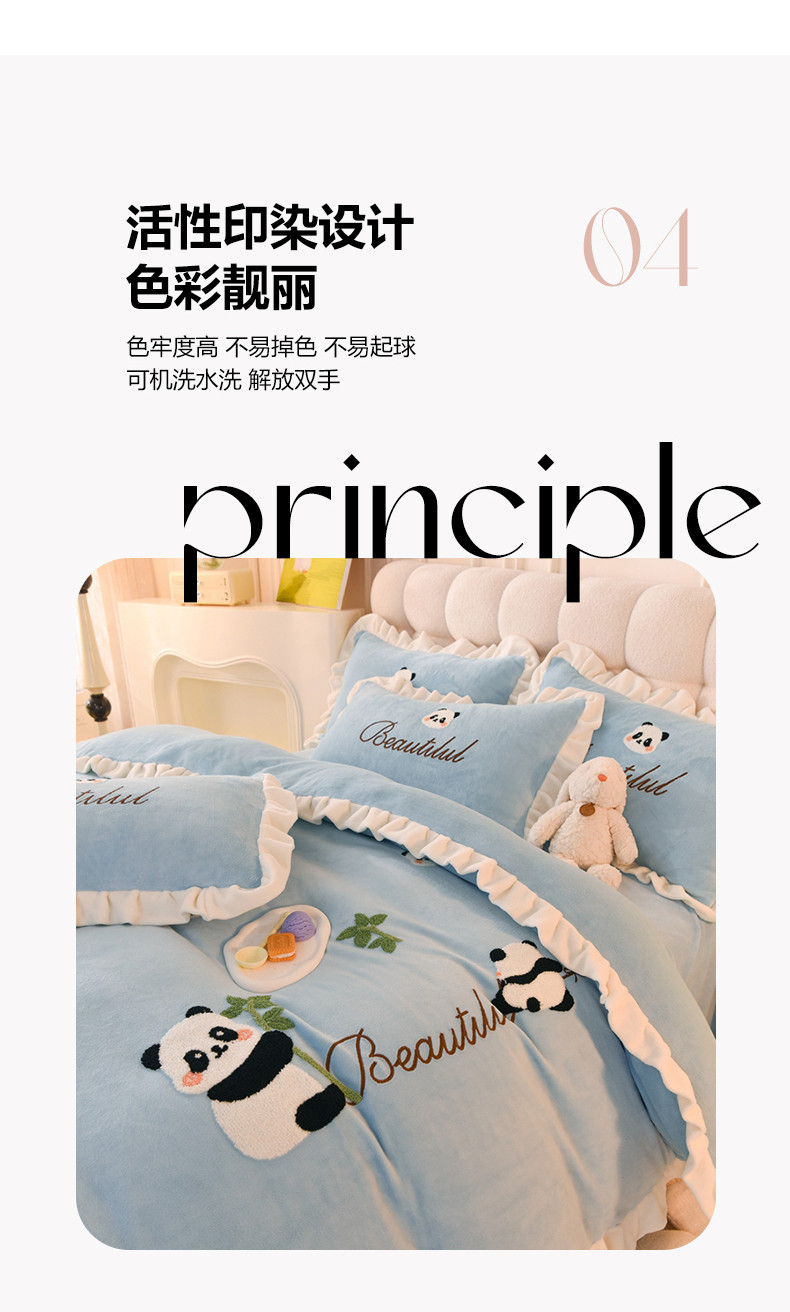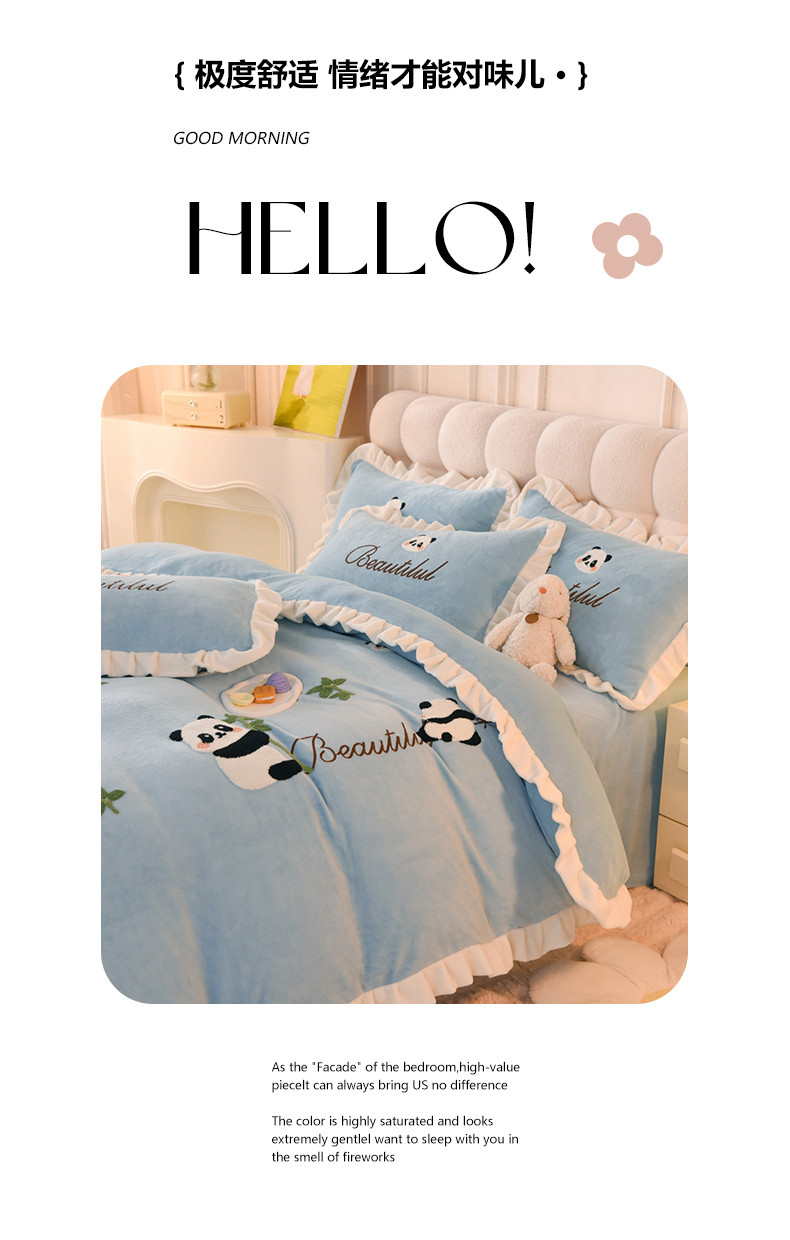 商品名称:菲儿家纺 2023新款牛奶绒毛巾绣四件套 小熊猫-星空蓝