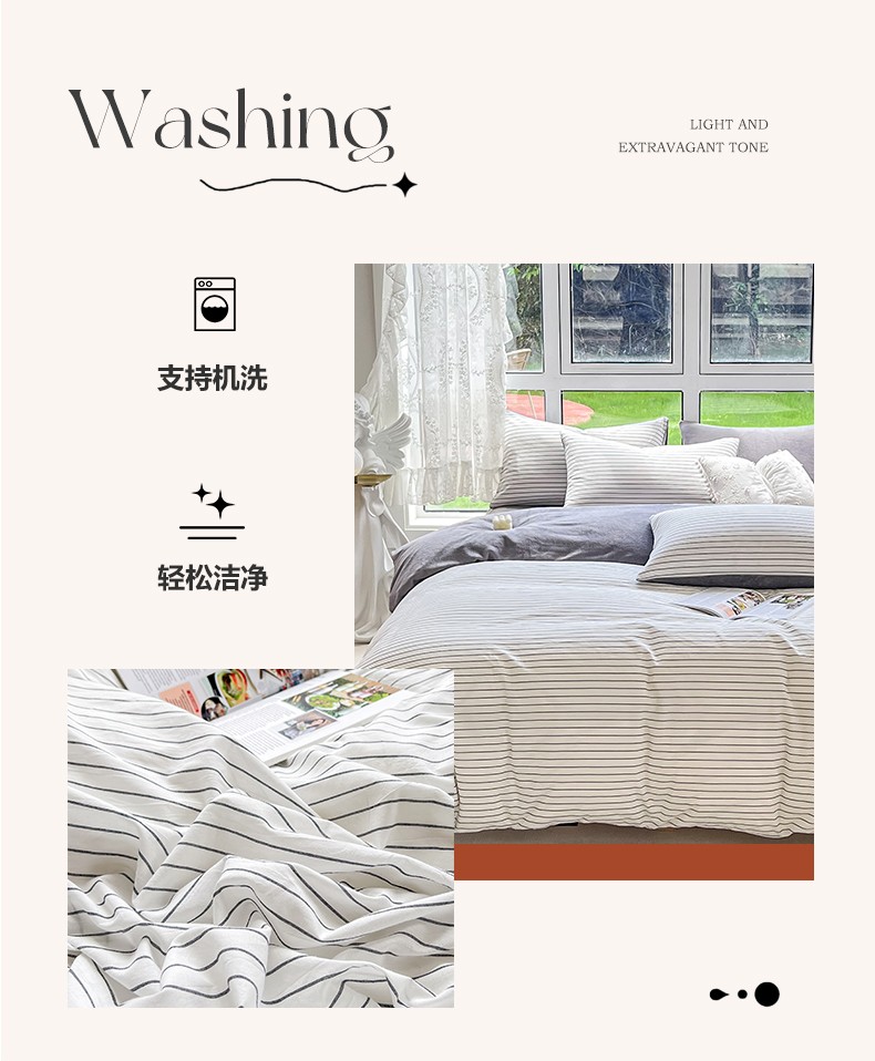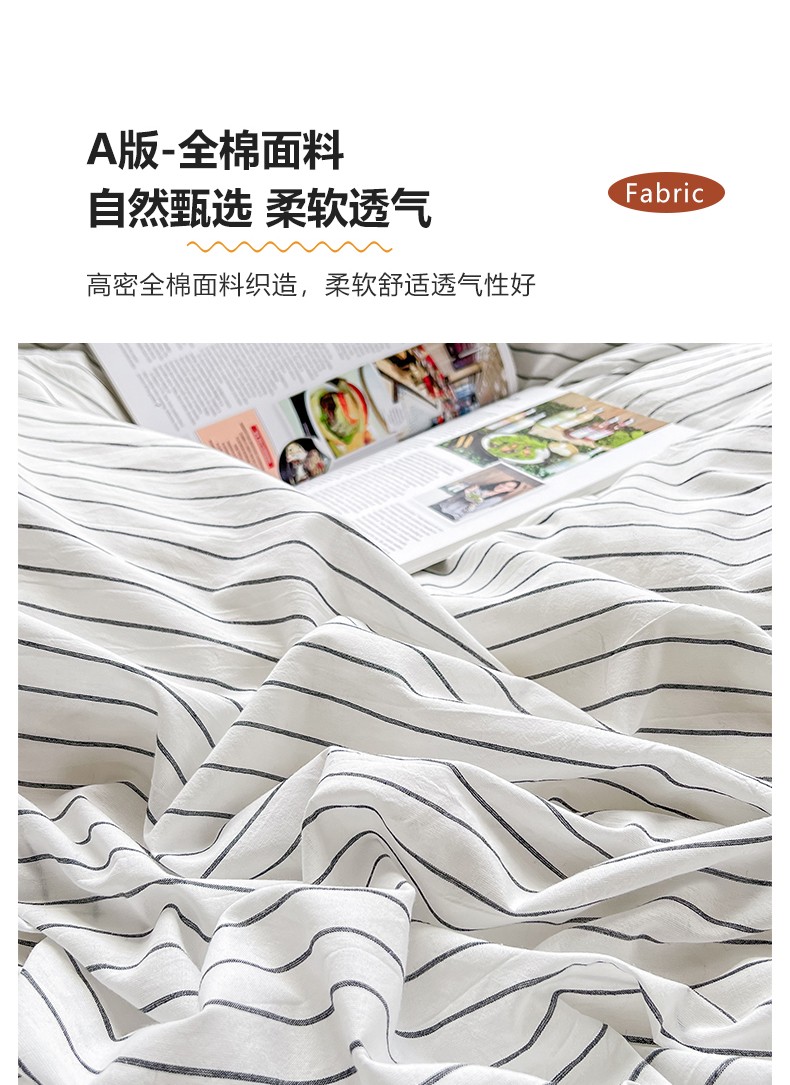 (总)柠萌家居 2026新款色织水洗棉四件套单被套,粉极细条,粉紫条,黄咖条,灰极细条,蓝咖条,绿极细条,绿紫条,米极细条,驼红条