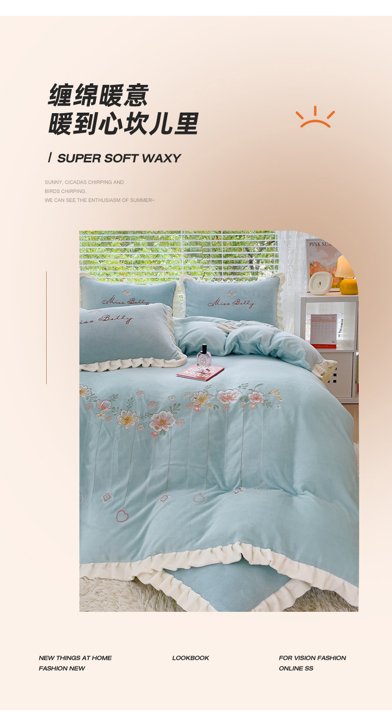(总)菲儿家纺 2025新款轻奢简约牛奶绒刺绣保暖四件套,如梦绒-粉,如梦绒-灰,如梦绒-天蓝,如梦绒-紫