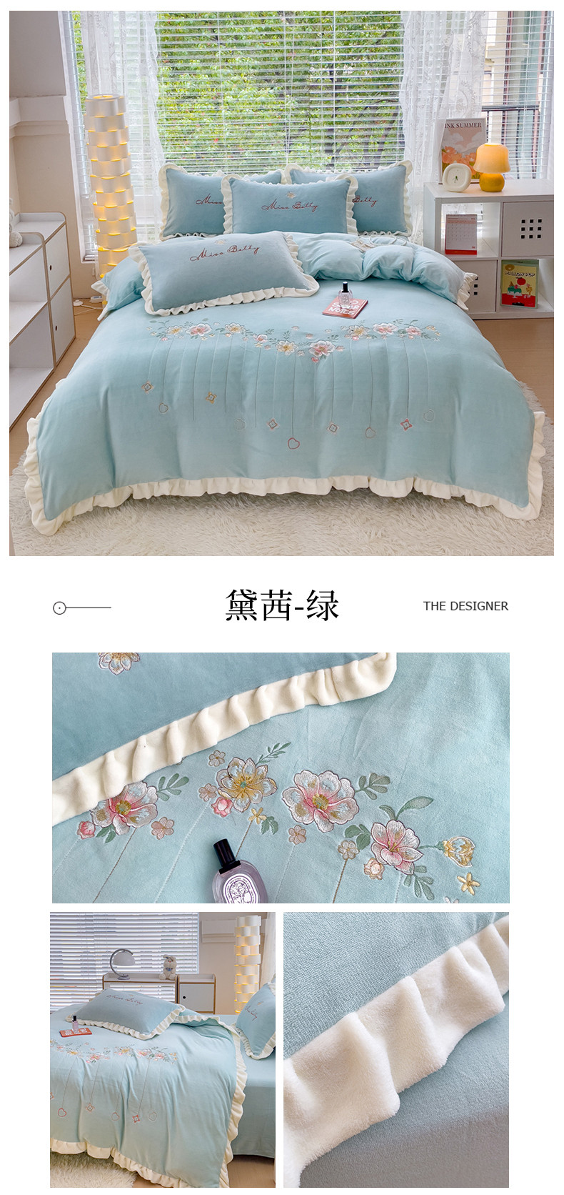 菲儿家纺 2023新款牛奶绒平绣四件套-黛茜 黛茜-绿