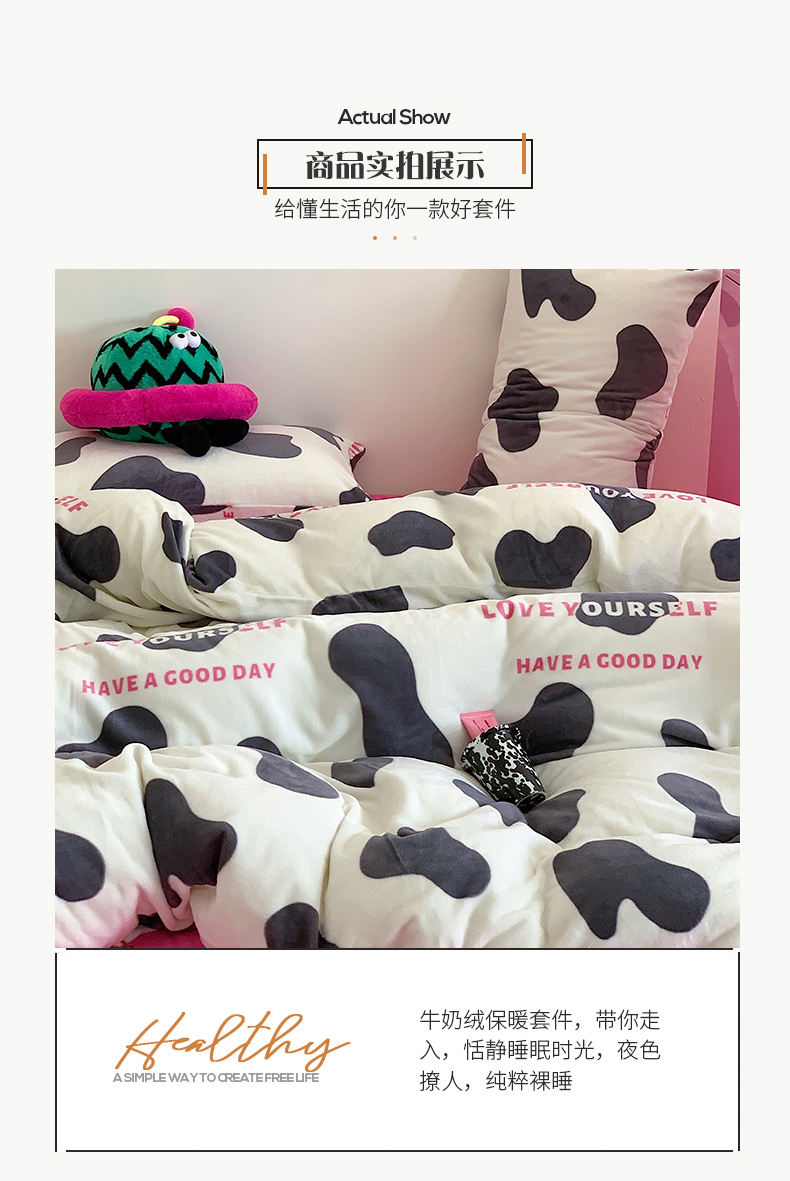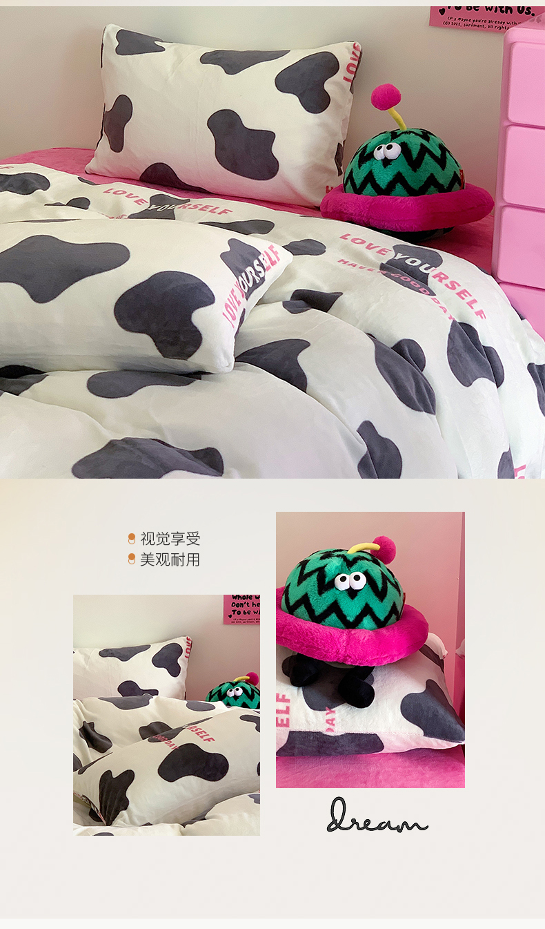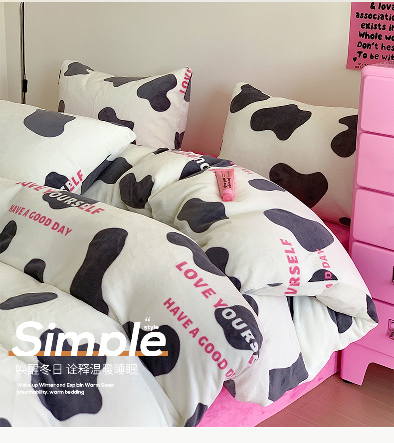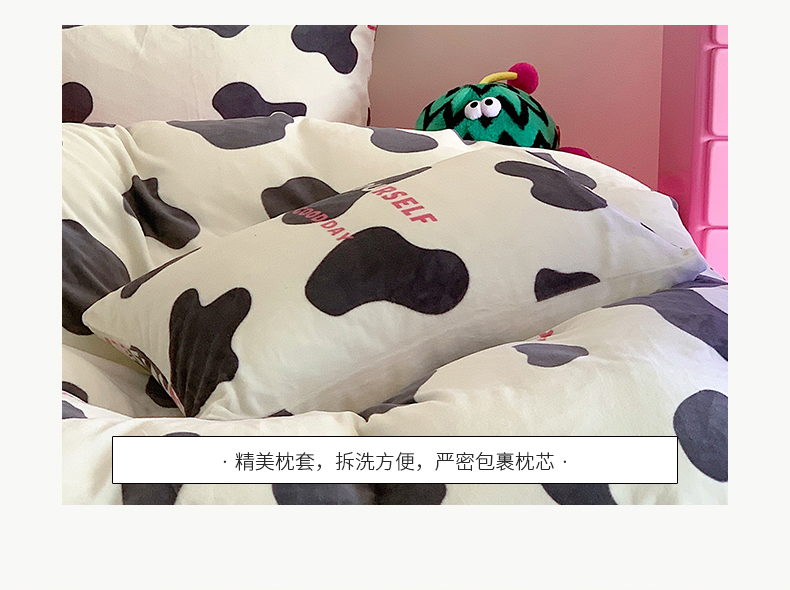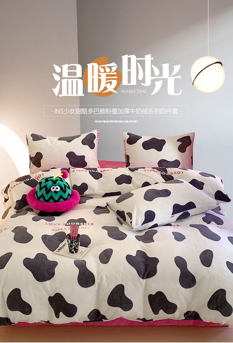 商品名称:桃子家居 2023新款ins少女甜酷多巴胺粉墨加厚牛奶绒系列四件套 绒-粉墨奶牛