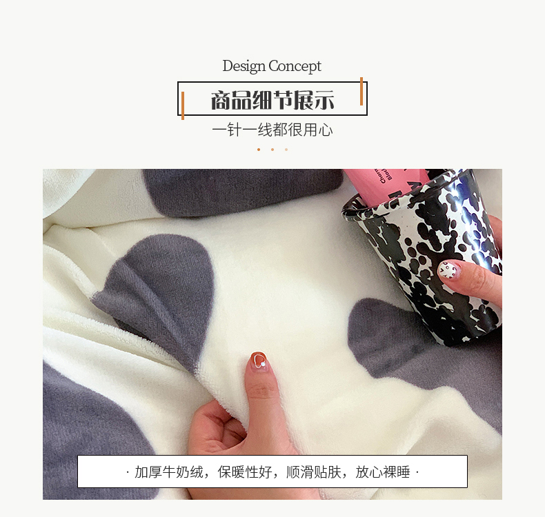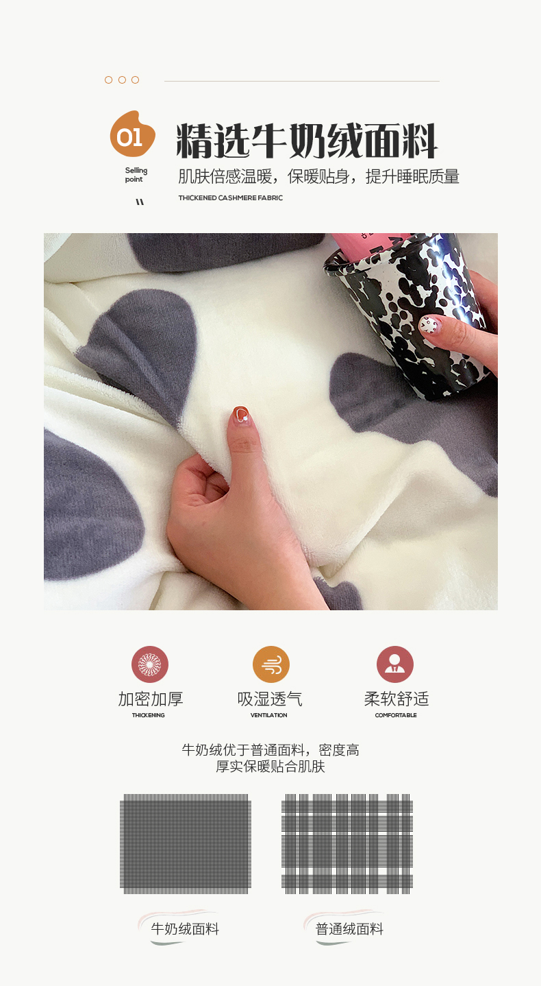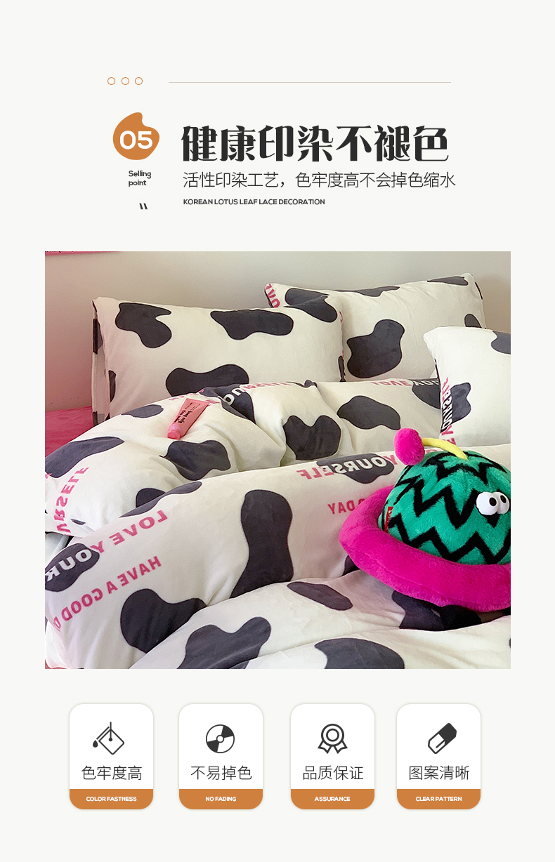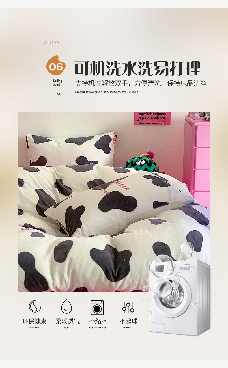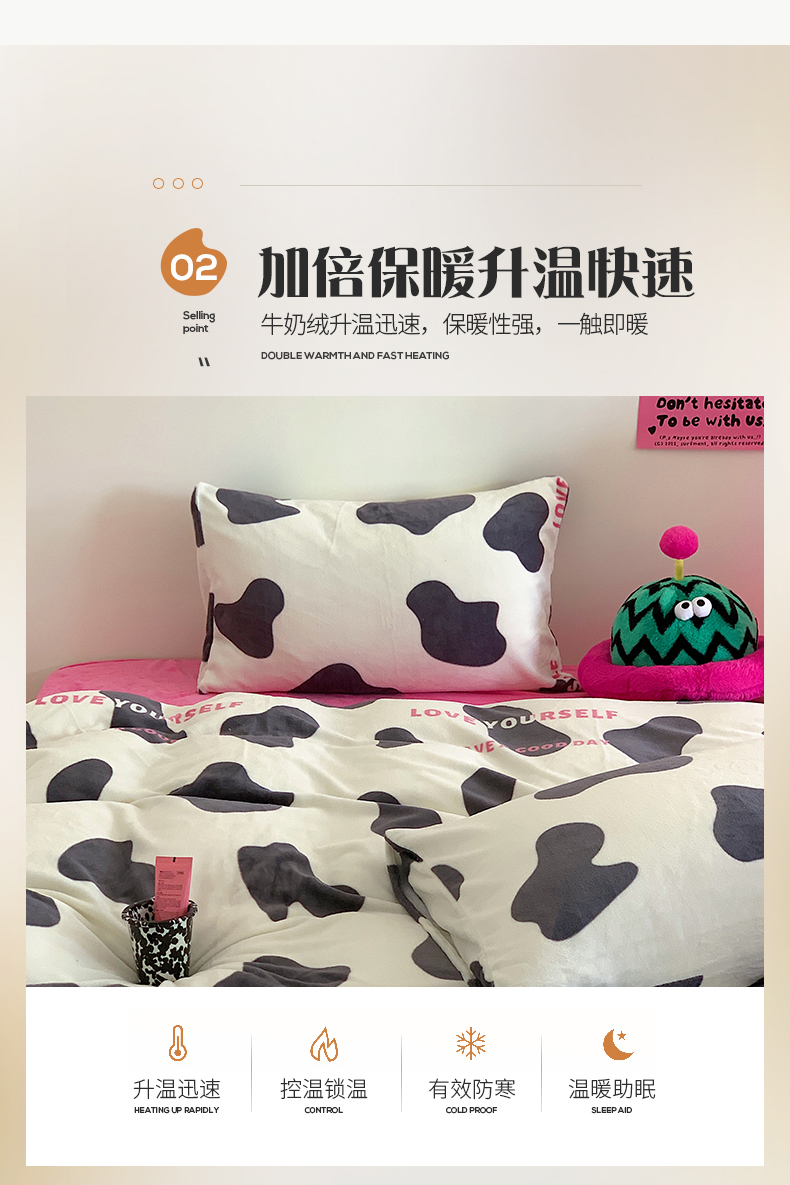 商品名称:桃子家居 2023新款ins少女甜酷多巴胺粉墨加厚牛奶绒系列四件套 绒-粉墨奶牛
