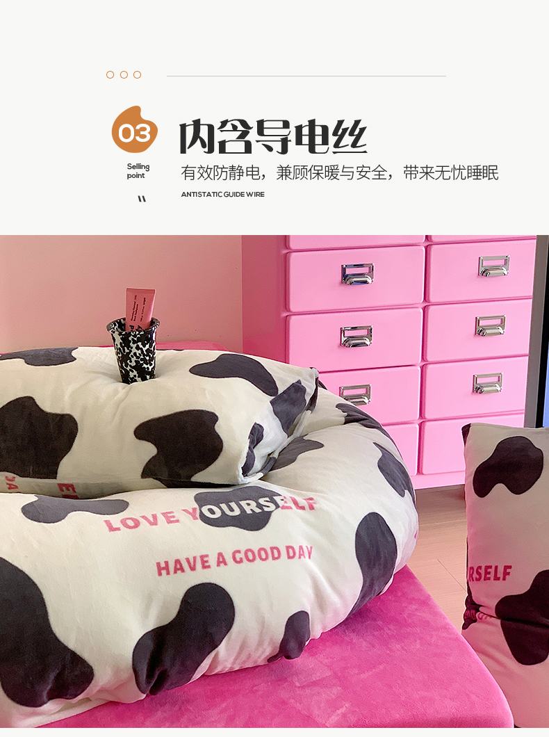 桃子家居 2023新款ins少女甜酷多巴胺粉墨加厚牛奶绒系列四件套 绒-粉墨奶牛