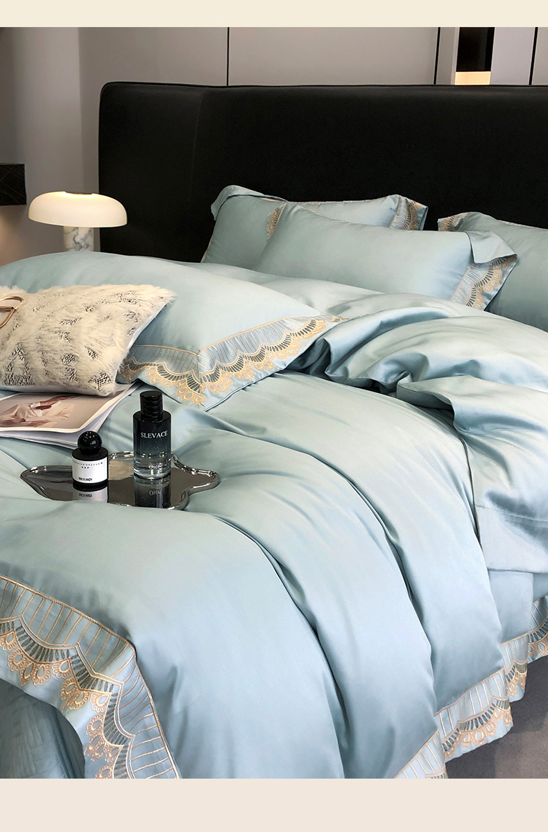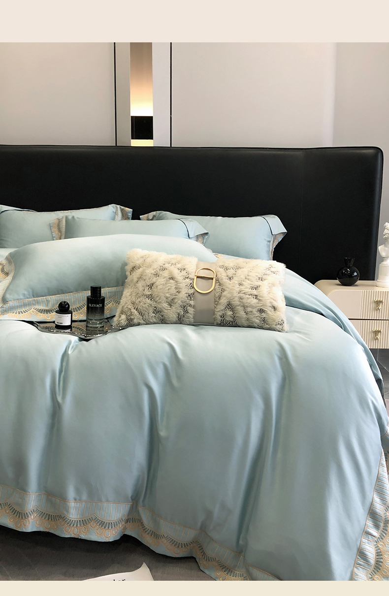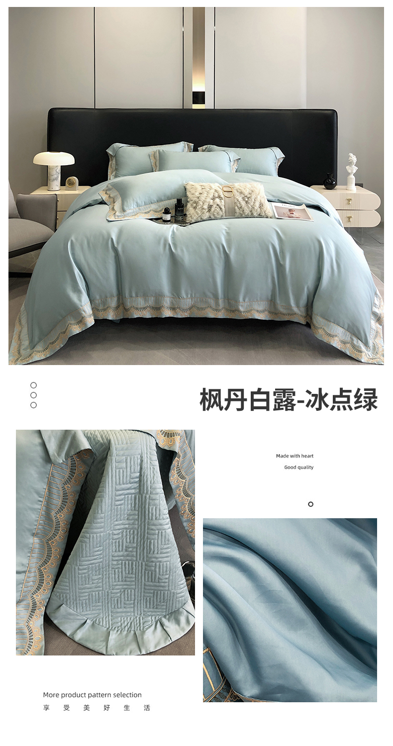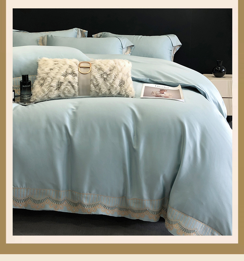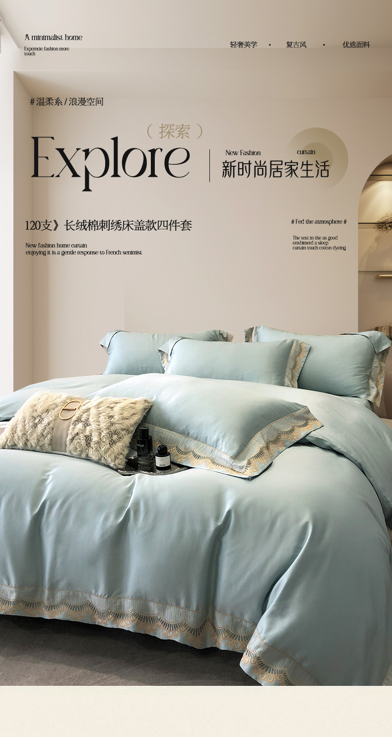 商品名称:保罗圣迪奥 120支长绒棉刺绣床盖款四件套 枫丹白露-冰点绿
