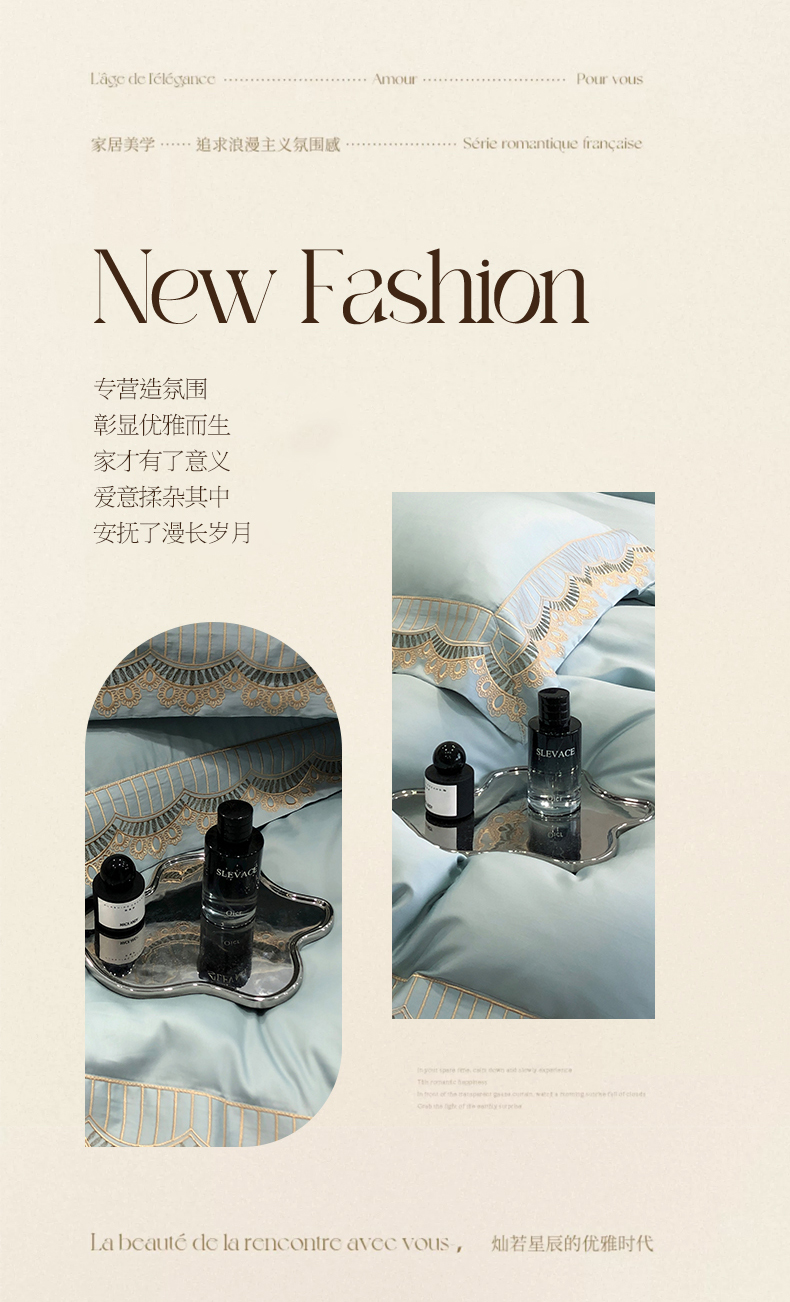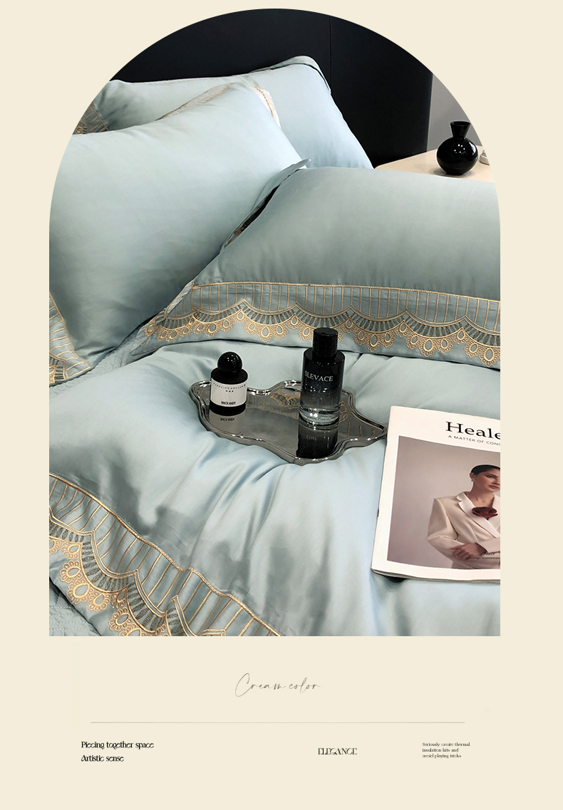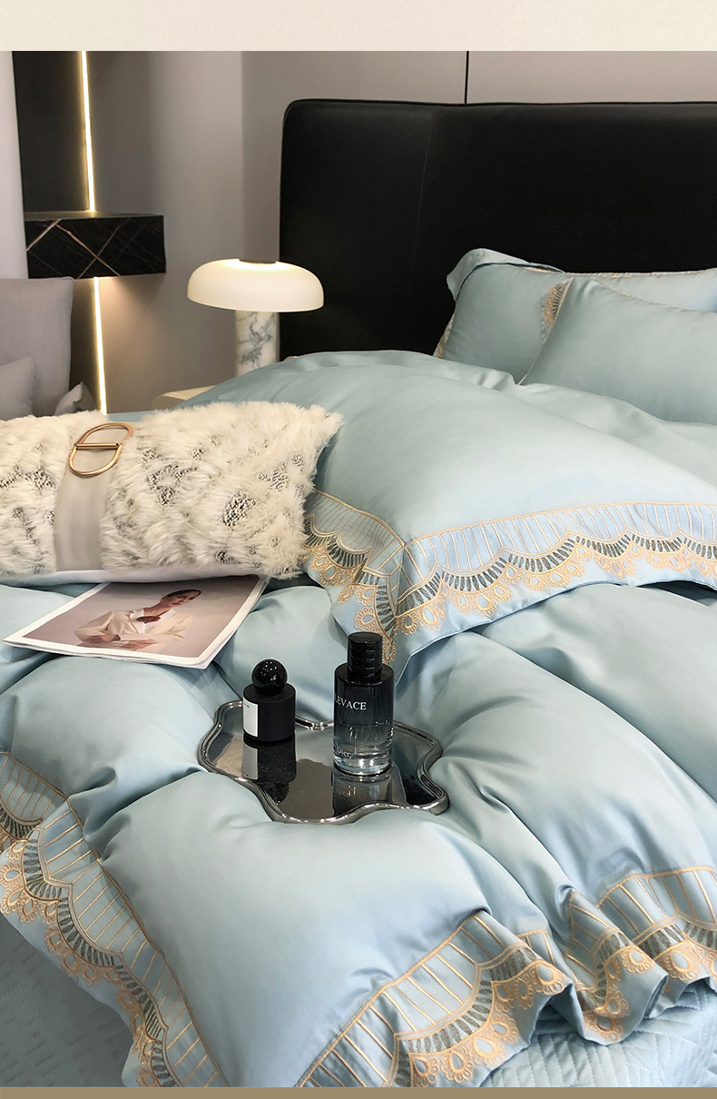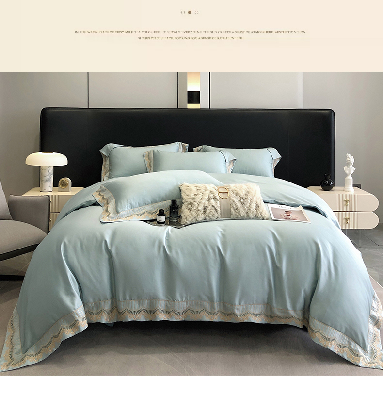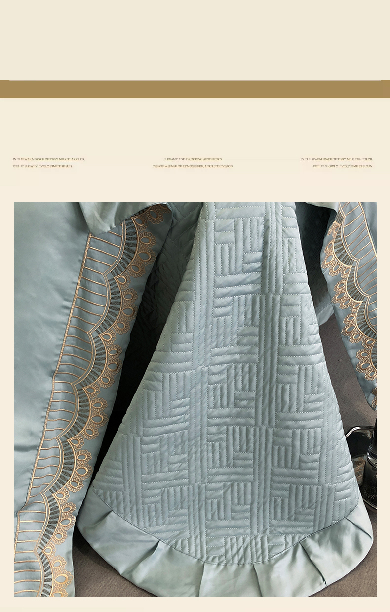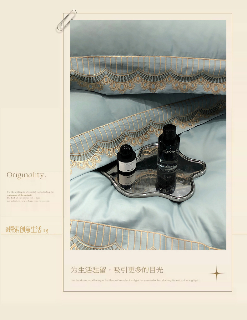 商品名称:保罗圣迪奥 120支长绒棉刺绣床盖款四件套 枫丹白露-冰点绿