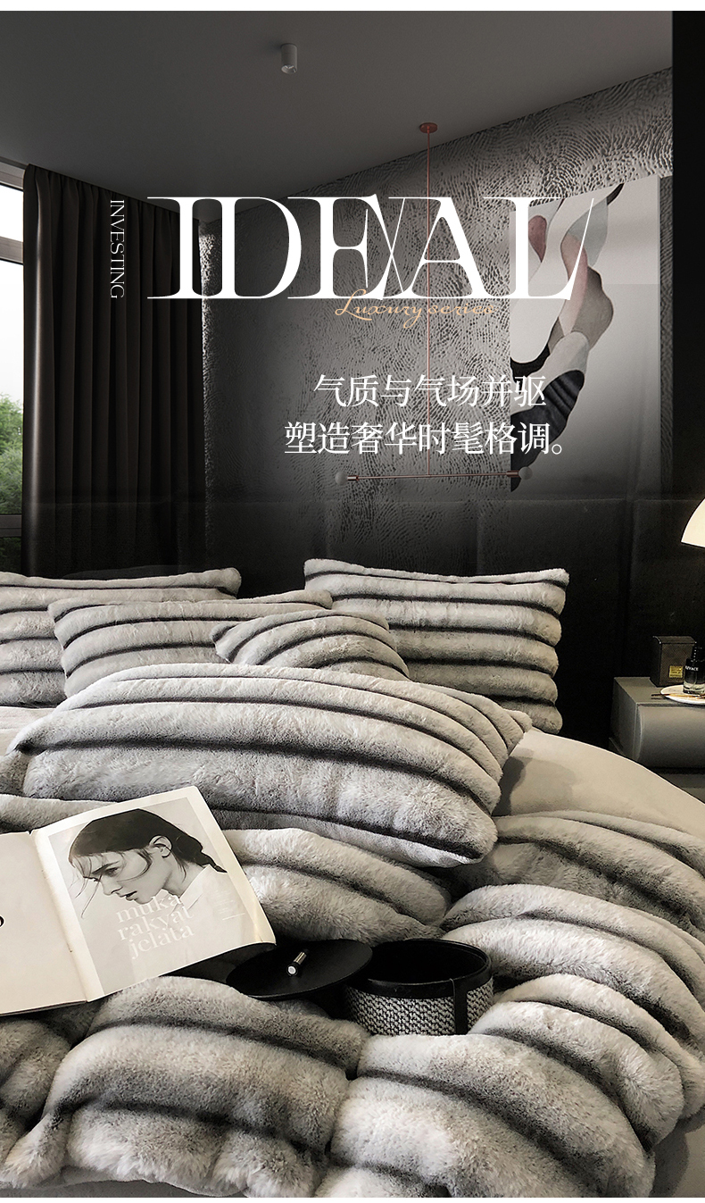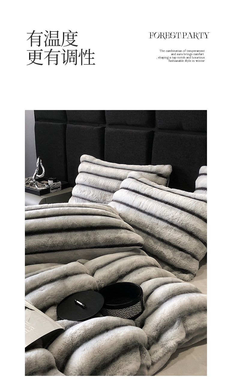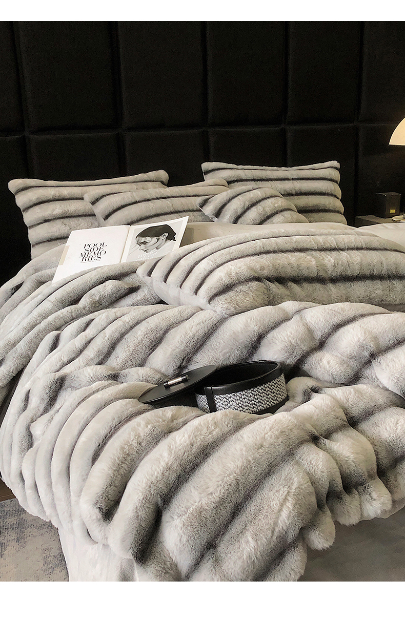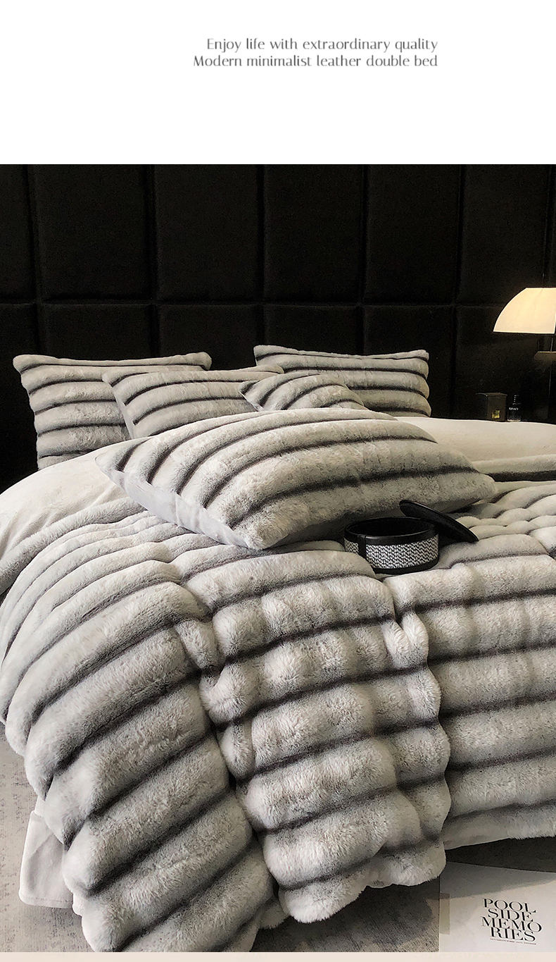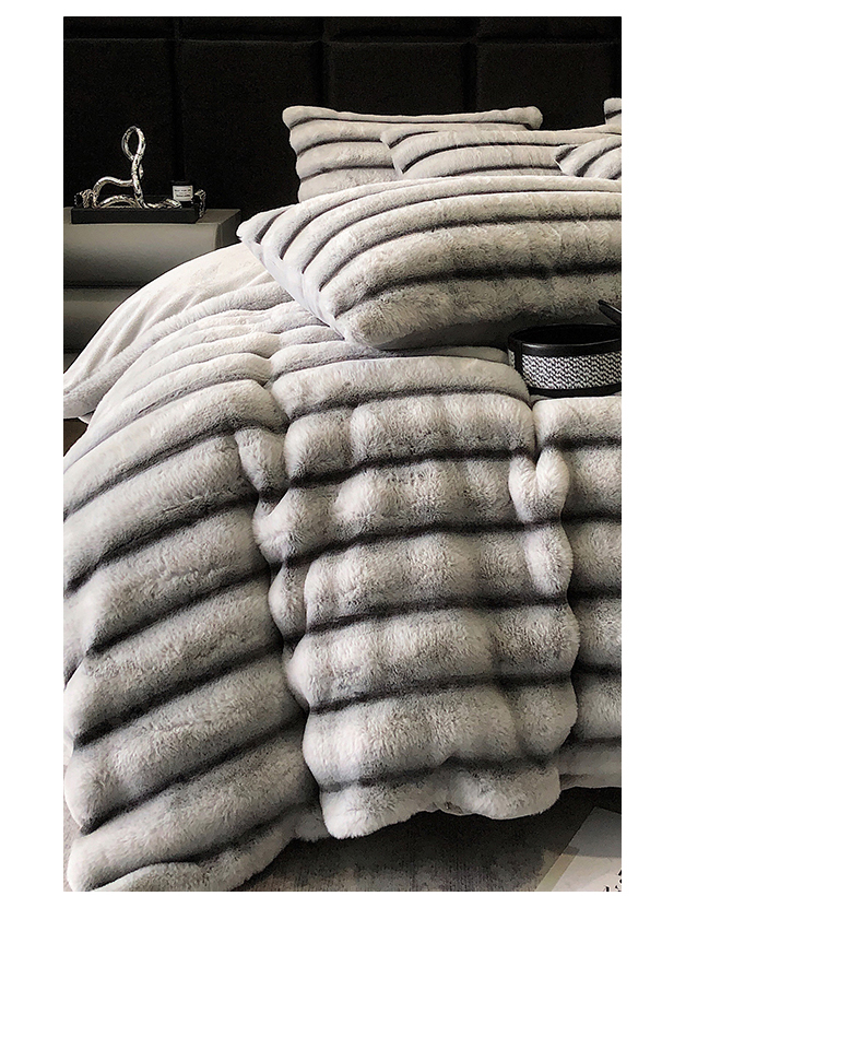 商品名称:罗优家纺 2025新款条纹兔兔绒四件套 雪灰