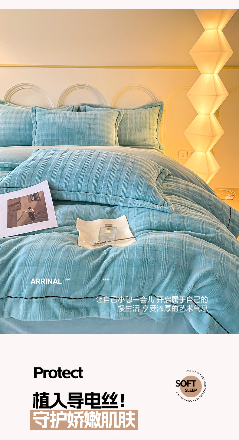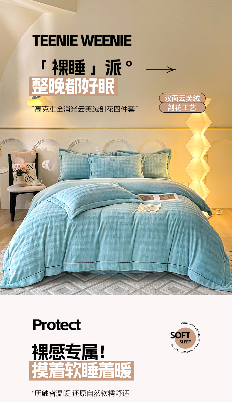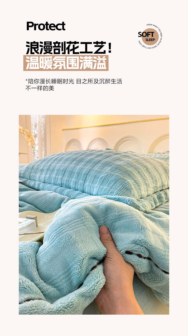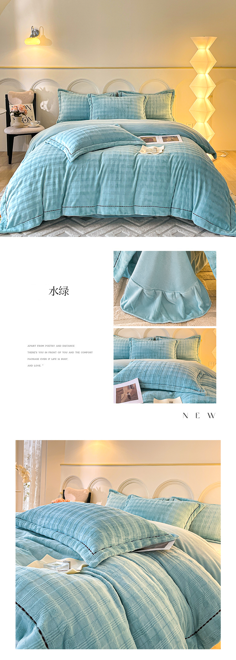 商品名称:嗯呢家纺 2023新款A类轻奢高克重全消光剖花牛奶绒四件套 水绿