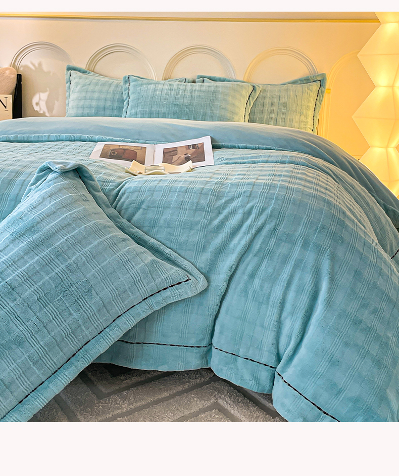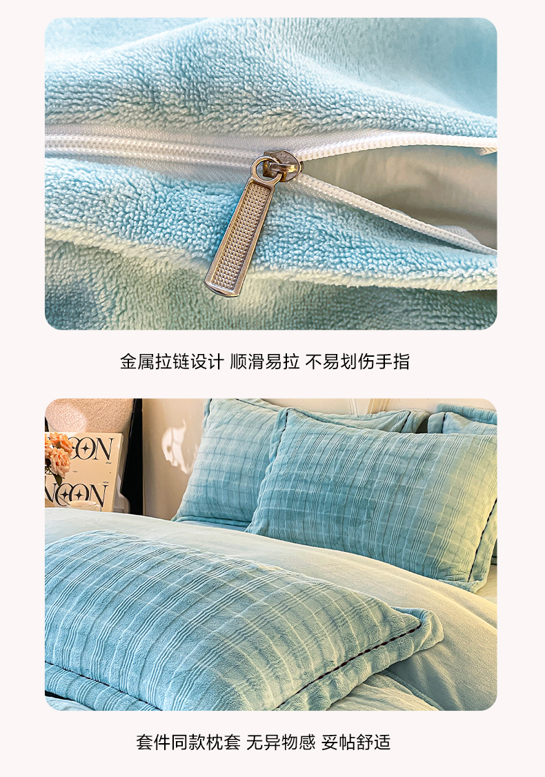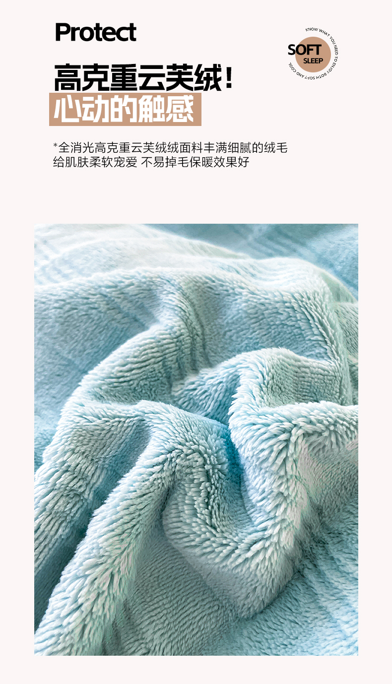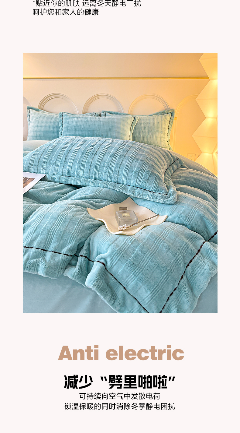 商品名称:嗯呢家纺 2023新款A类轻奢高克重全消光剖花牛奶绒四件套 水绿