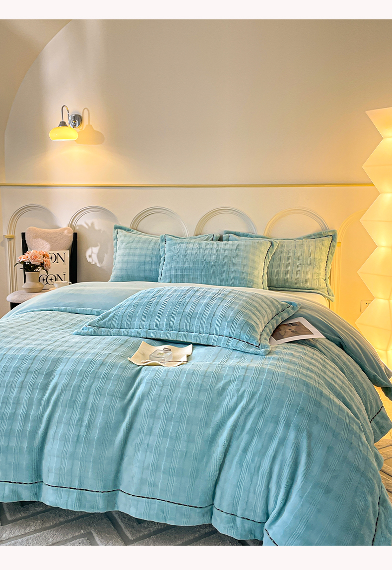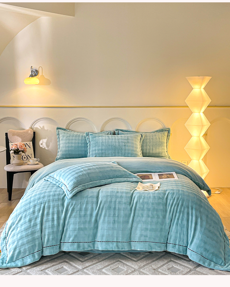 嗯呢家纺 2023新款A类轻奢高克重全消光剖花牛奶绒四件套 水绿