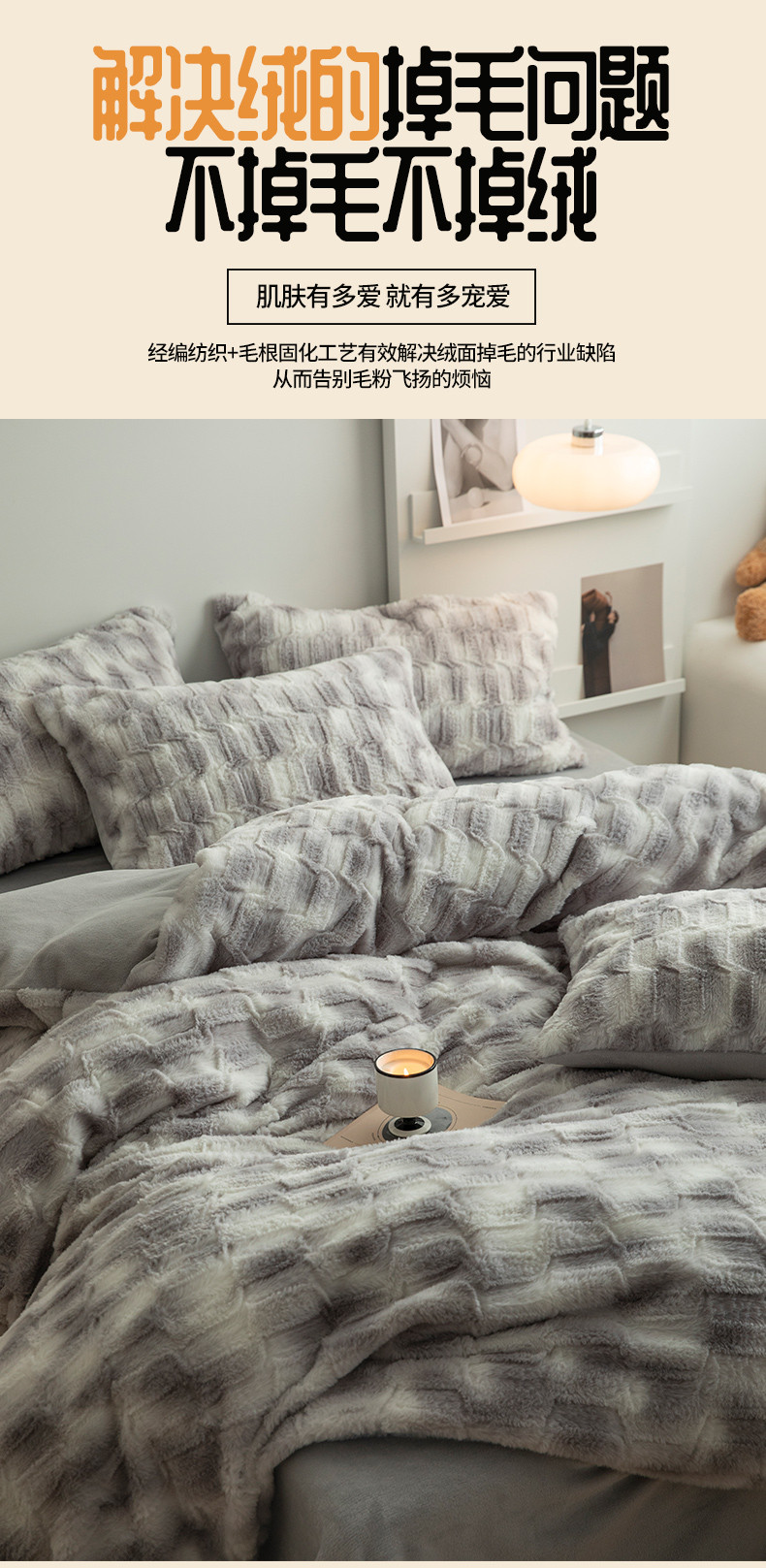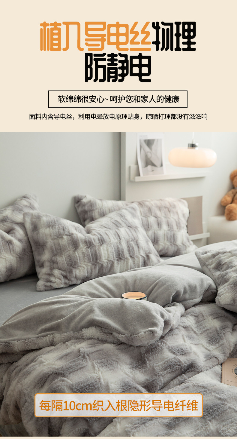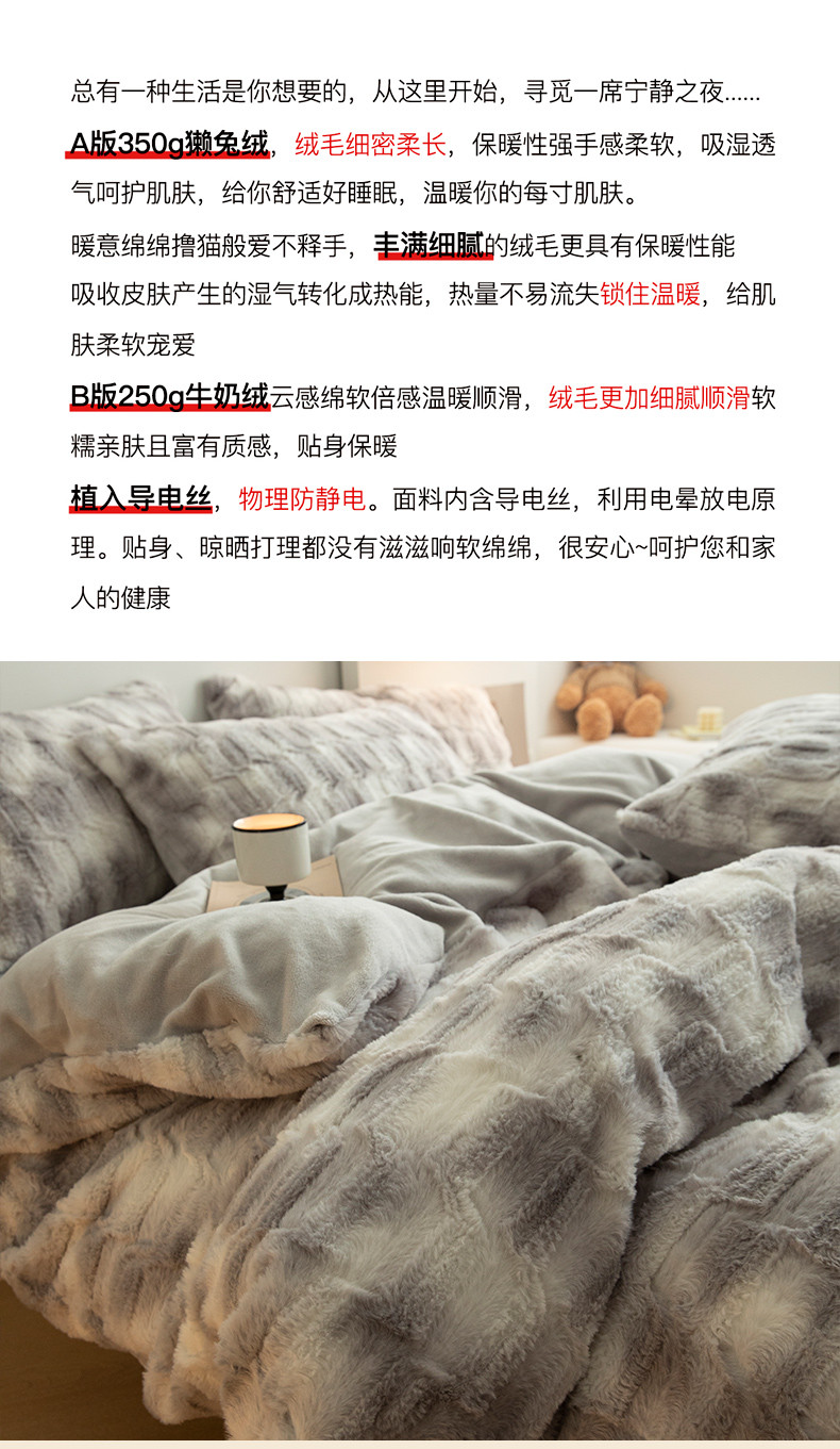 当前位置: 91家纺网 > 商品网购 > 床品套件 > 四件套 > 兔毛绒四件套 > 安哆啦家纺 2024新款濑兔绒毛晕染色系牛奶绒四件套 晕染灰