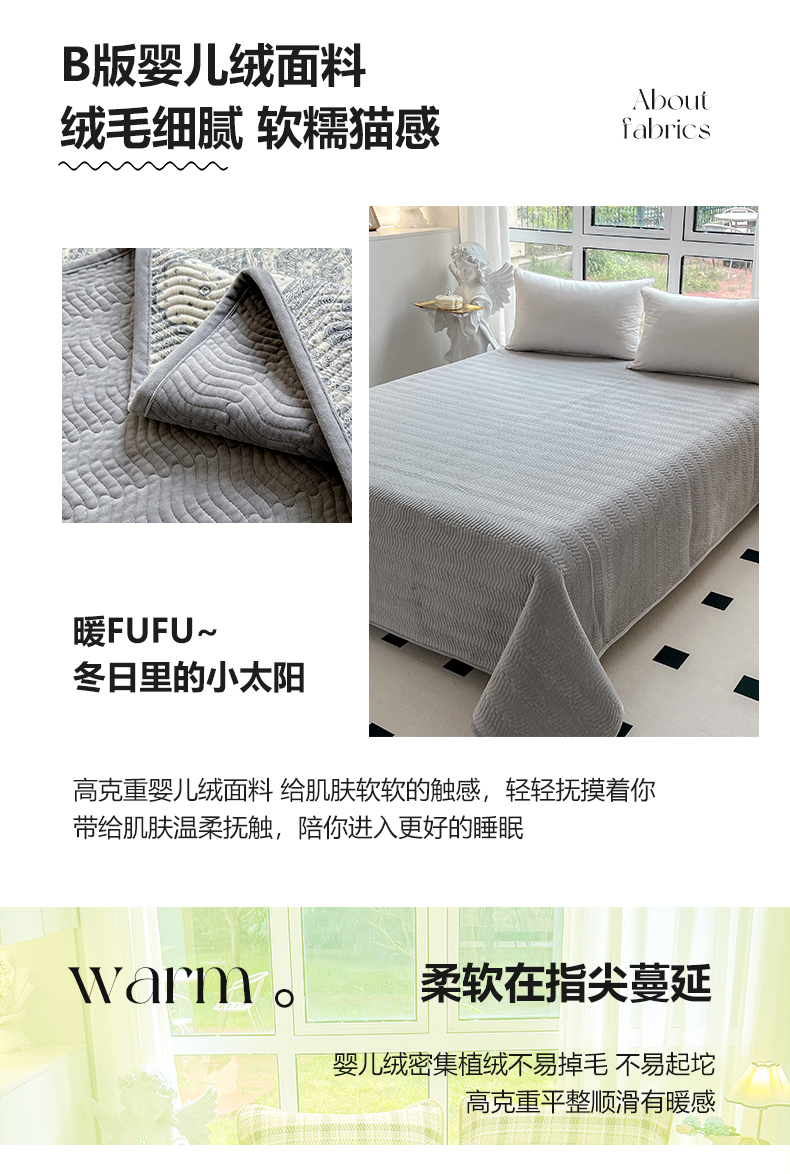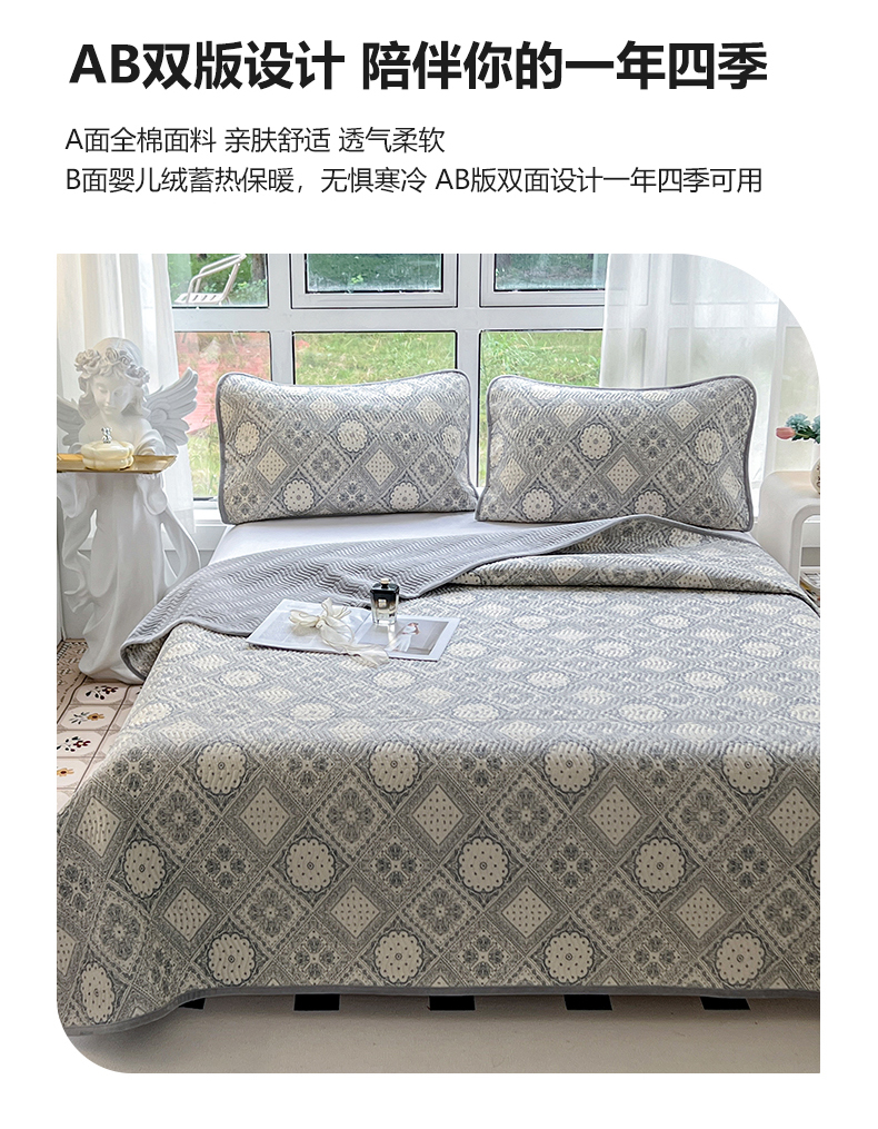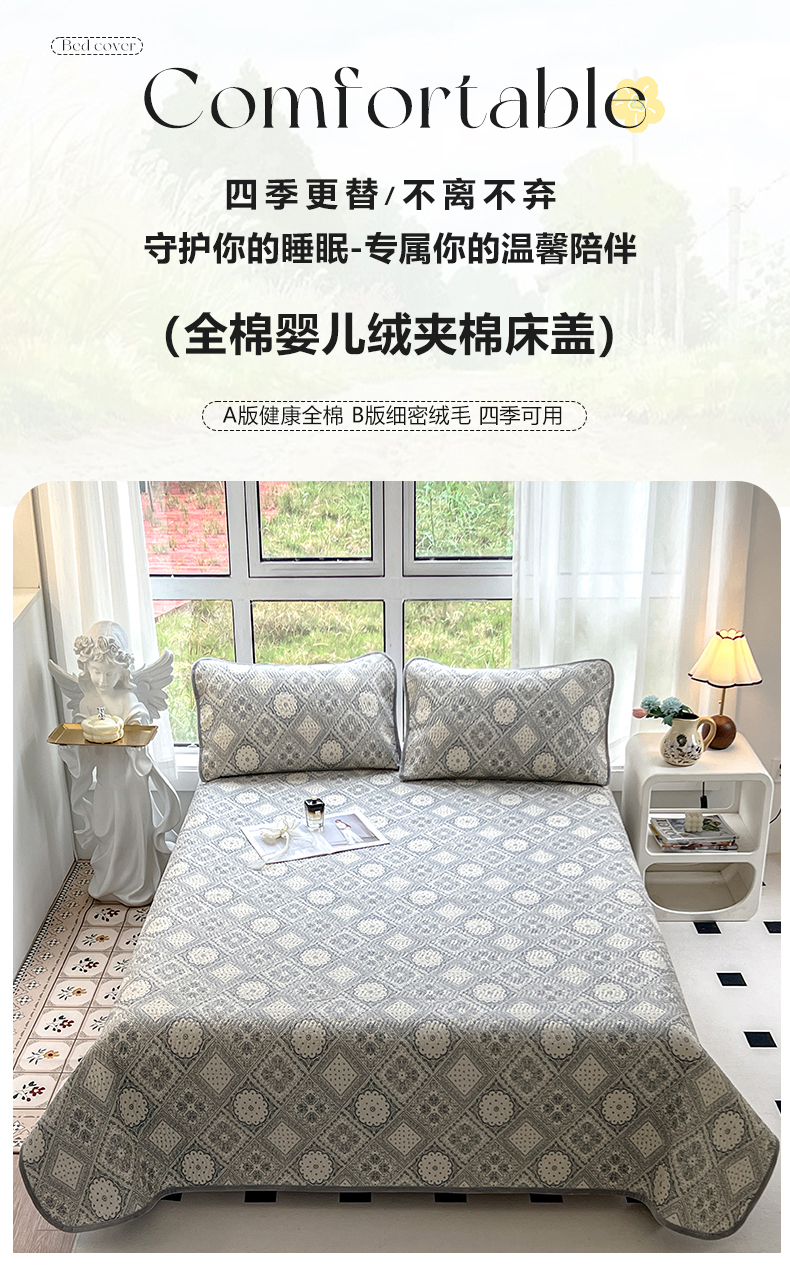 • 91家纺网 家纺一手货源 找家纺 2024新款40支棉加绒单床盖三件套双面可用全棉加厚婴儿绒 凡尔赛