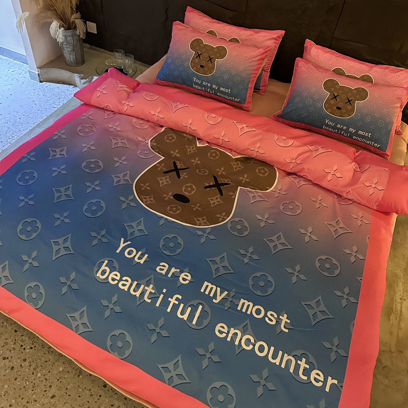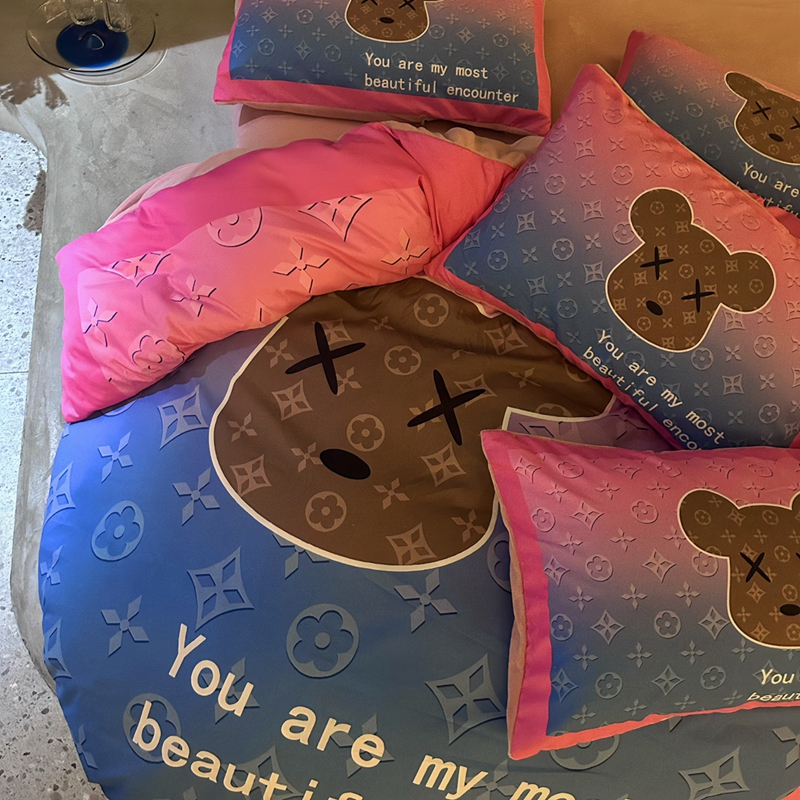 (总)色鬼布艺高端家居主号 2025秋冬新款网红款水洗棉四季款四件套,豹纹熊-粉,豹纹熊-绿,彩虹兔,格子熊,公仔蓝,梦幻粉,梦幻蓝,棋盘格公仔,太阳花粉,天使熊-粉,天使熊-咖,小熊头,熊头白,熊头橙,熊头咖,熊仔白