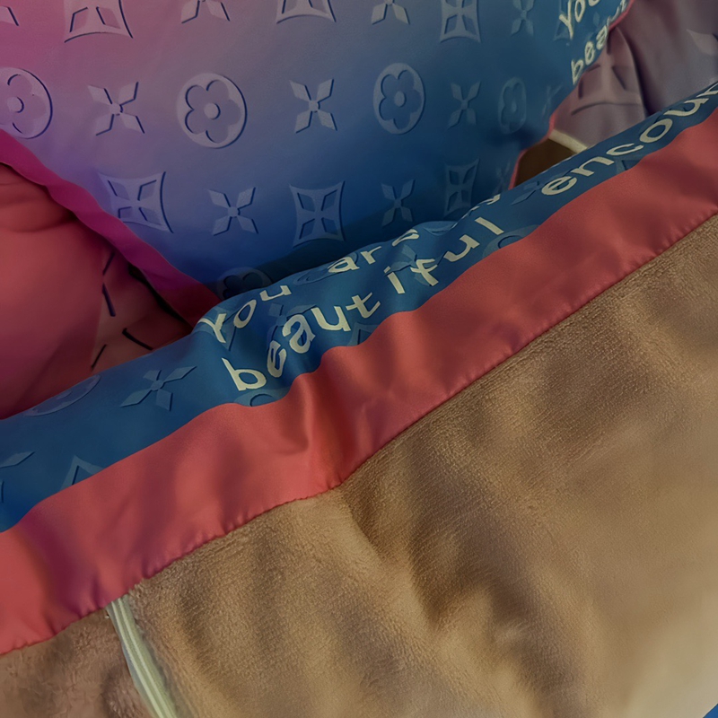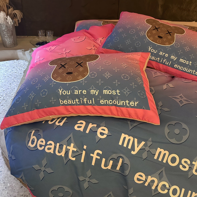 商品名称:色鬼 2023新款轻奢潮牌大牌风棉加绒四件套印花牛奶绒四件套 粉嫩渐变