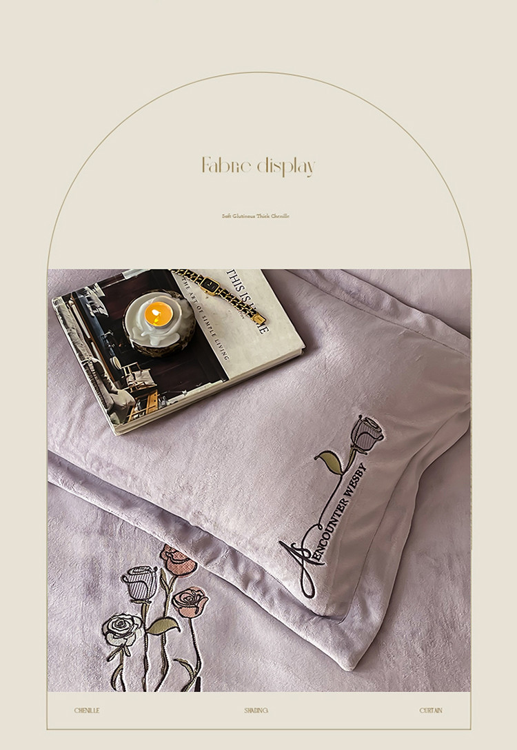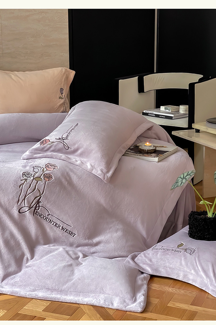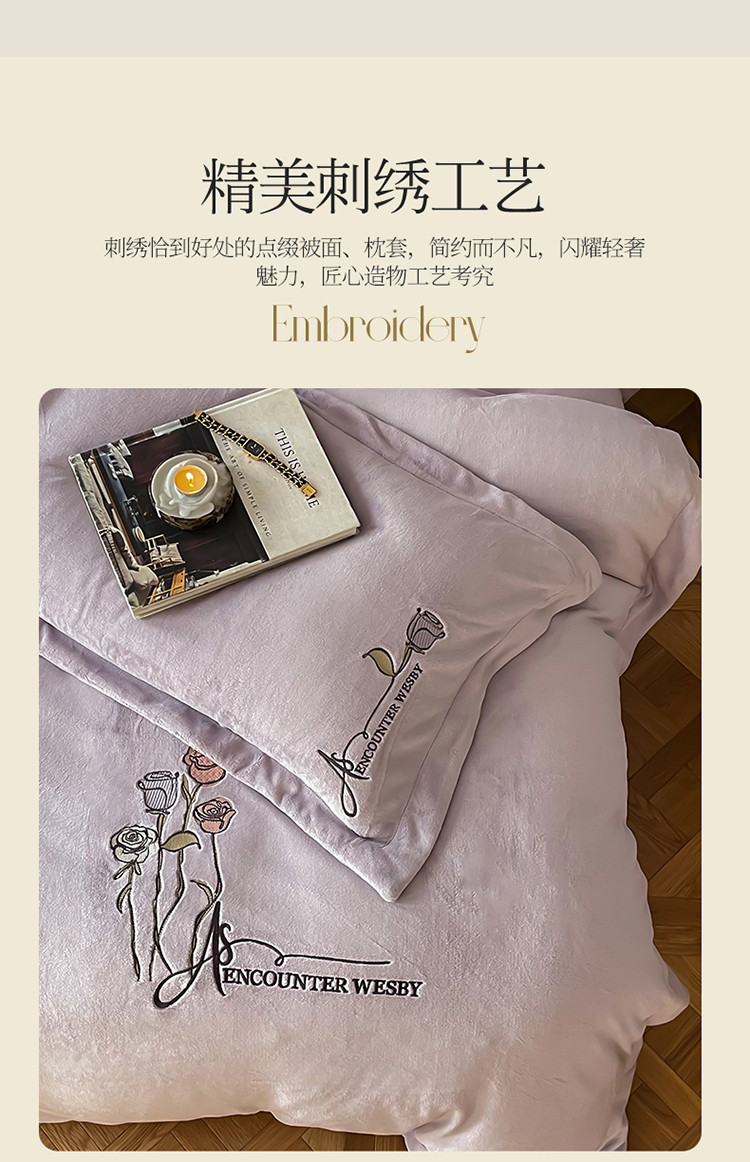 商品名称:名品优仓 2023新款高克重230克牛奶绒绣花款四件套-保加利亚 保加利亚-浅紫