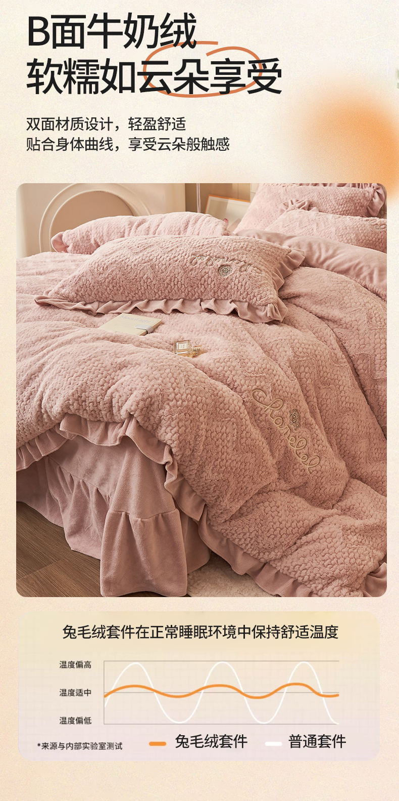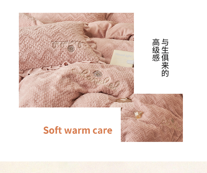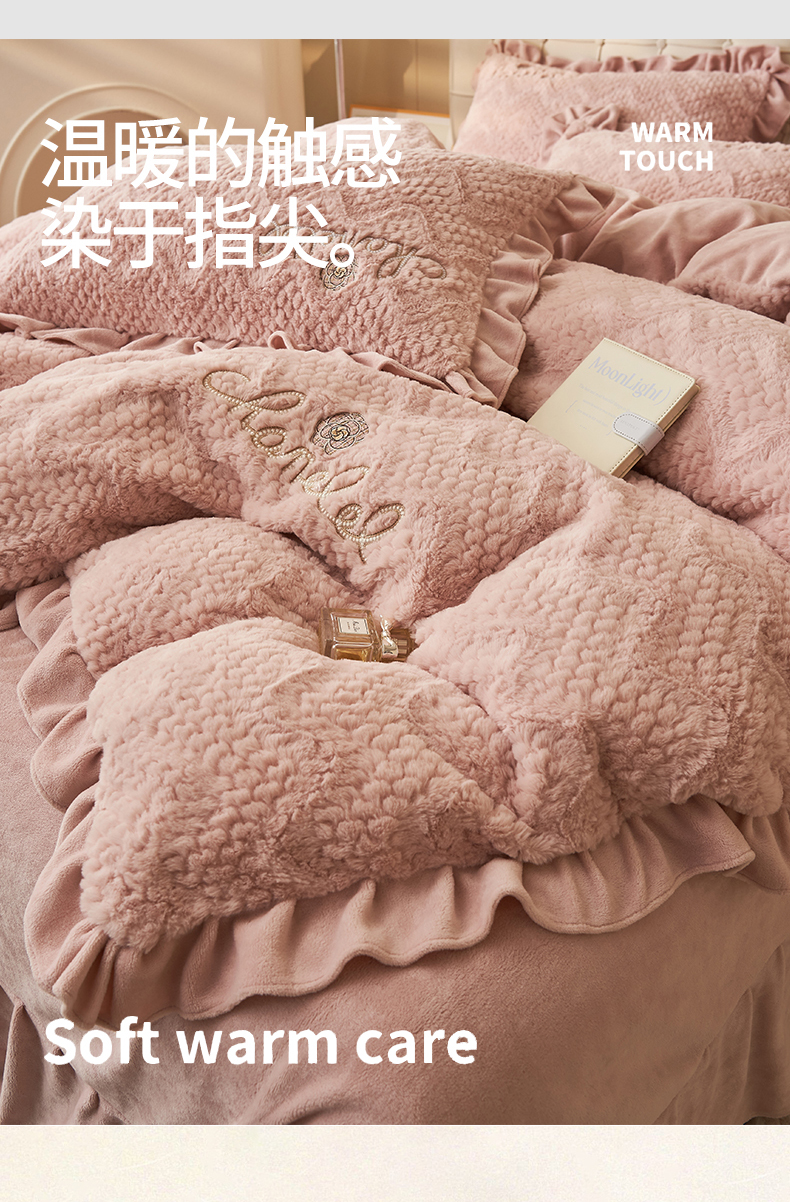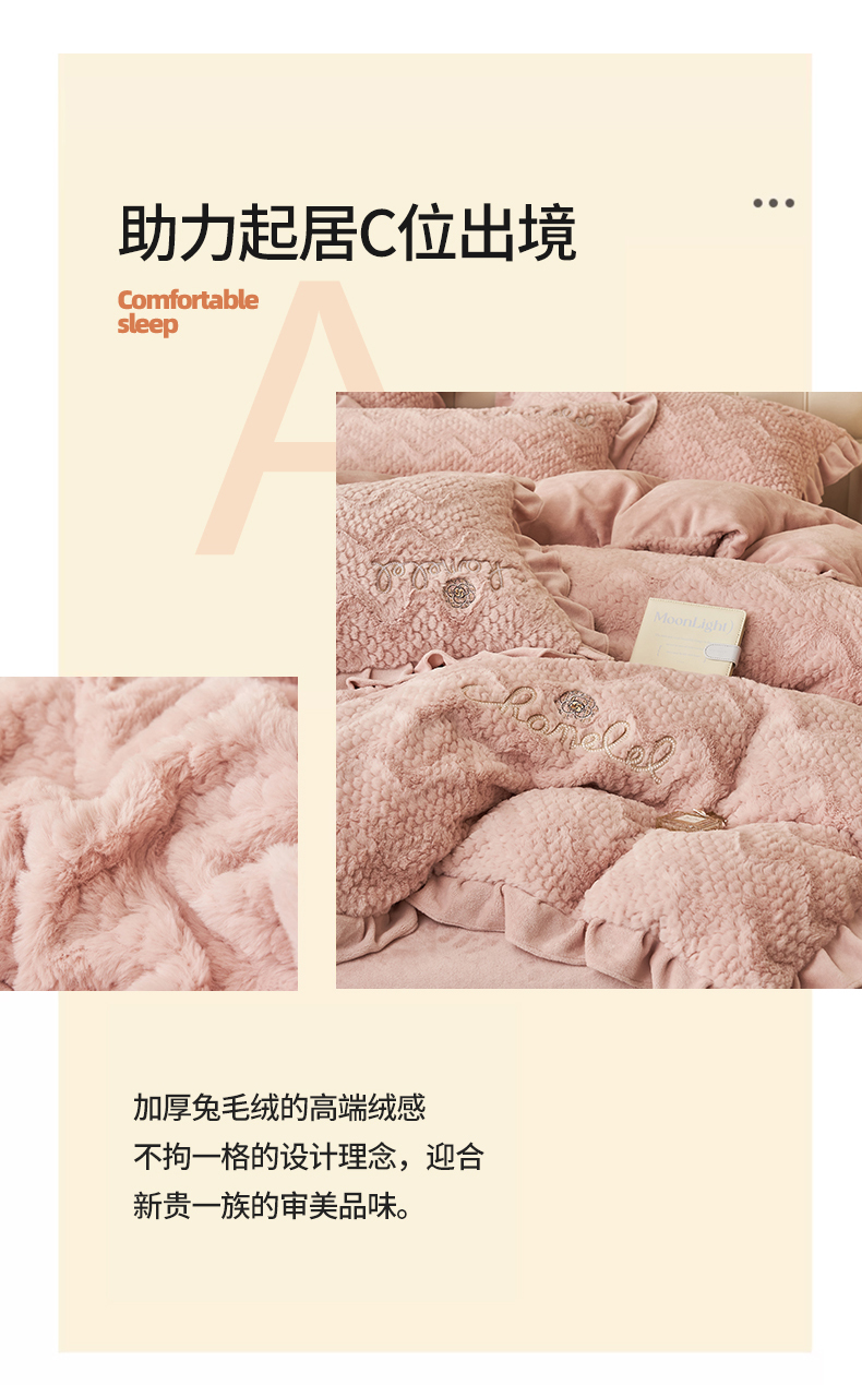 恒爱家纺 2023新款兔毛绒绣花四件套 波浪款-浅粉