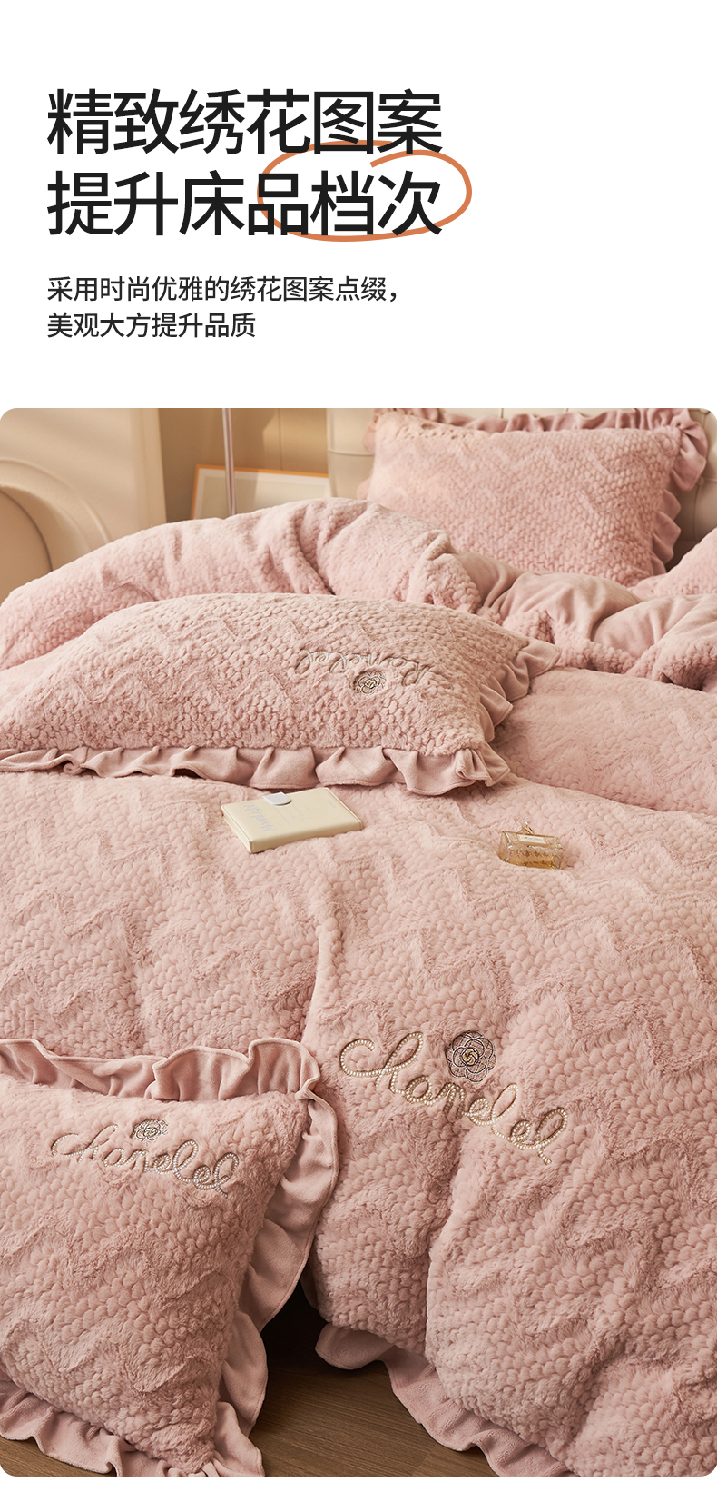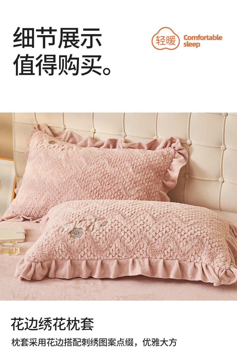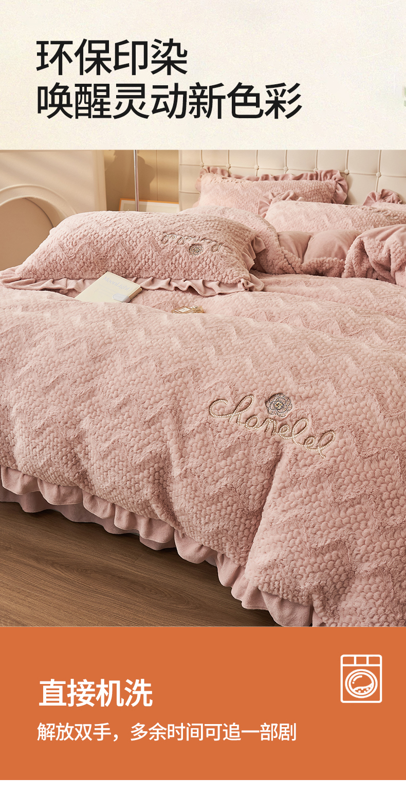 商品名称:恒爱家纺 2023新款兔毛绒绣花四件套 波浪款-浅粉