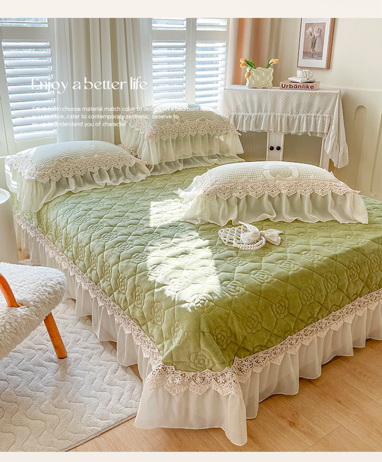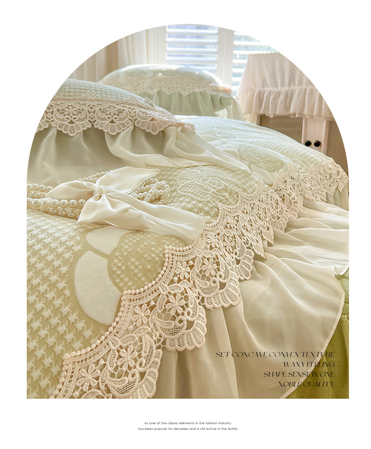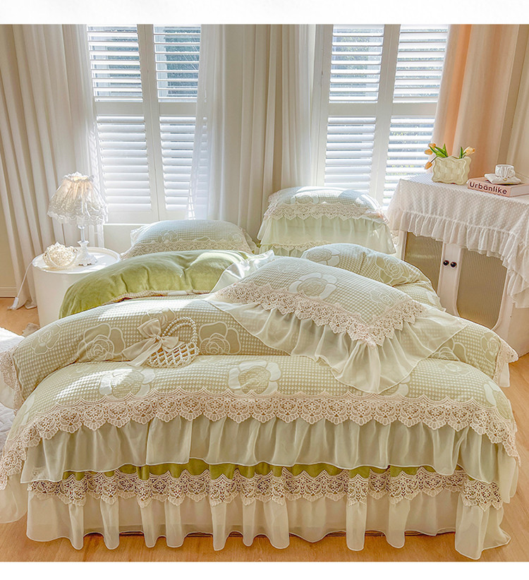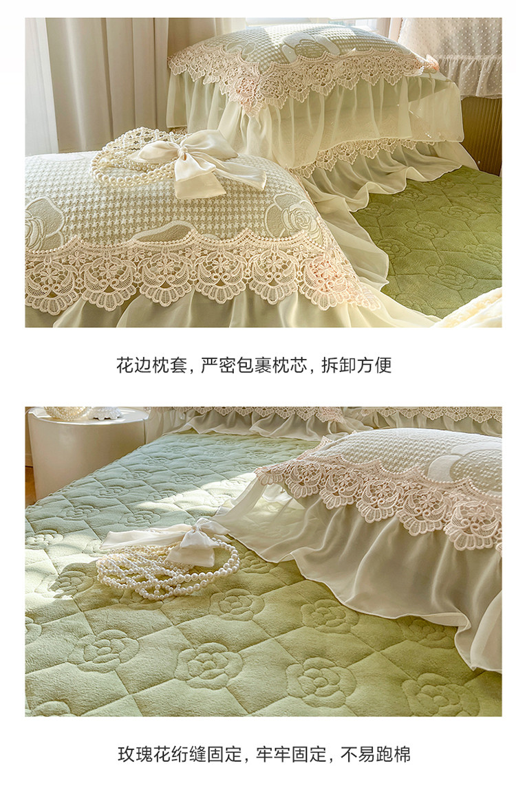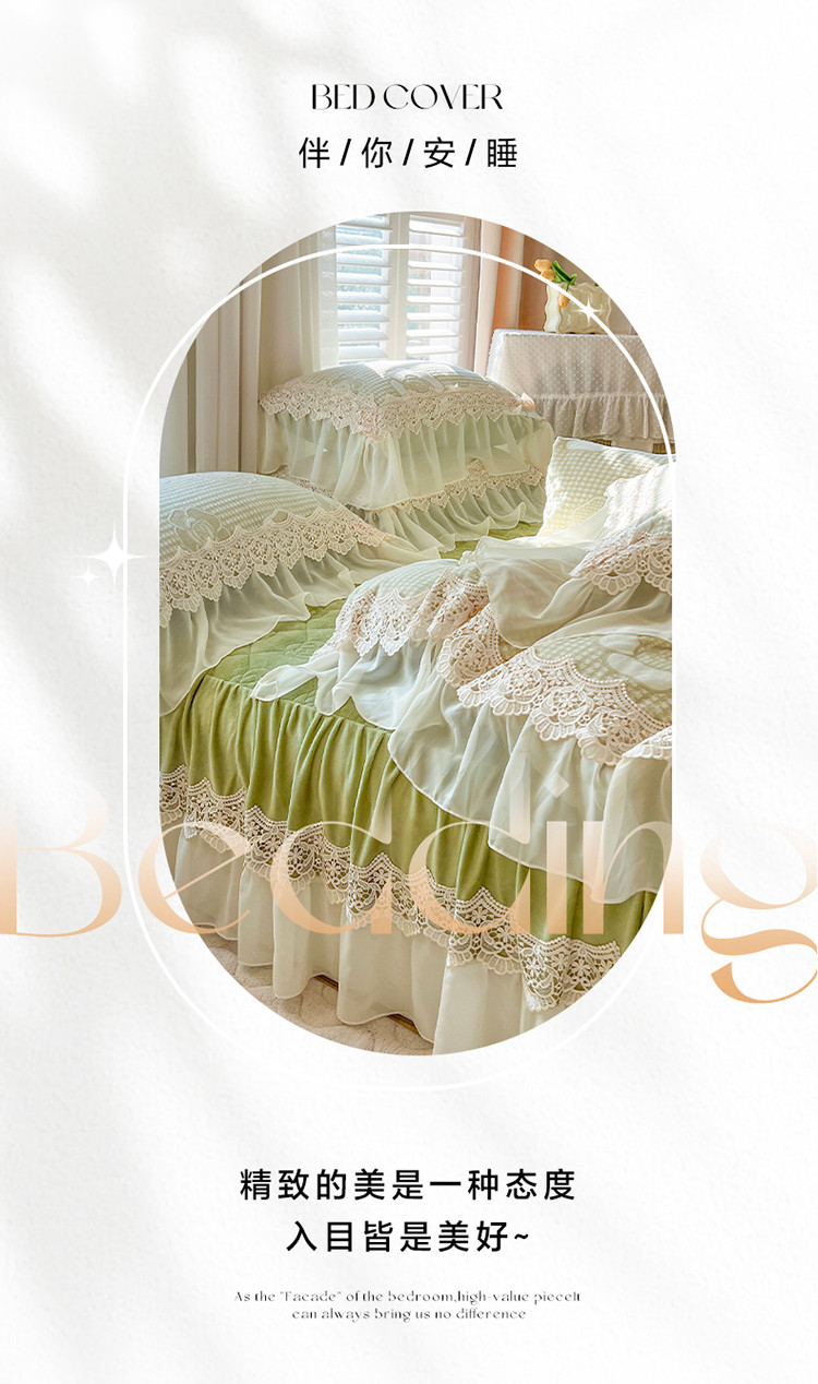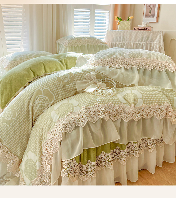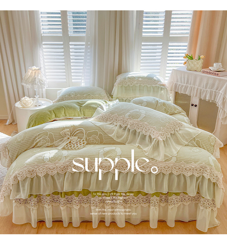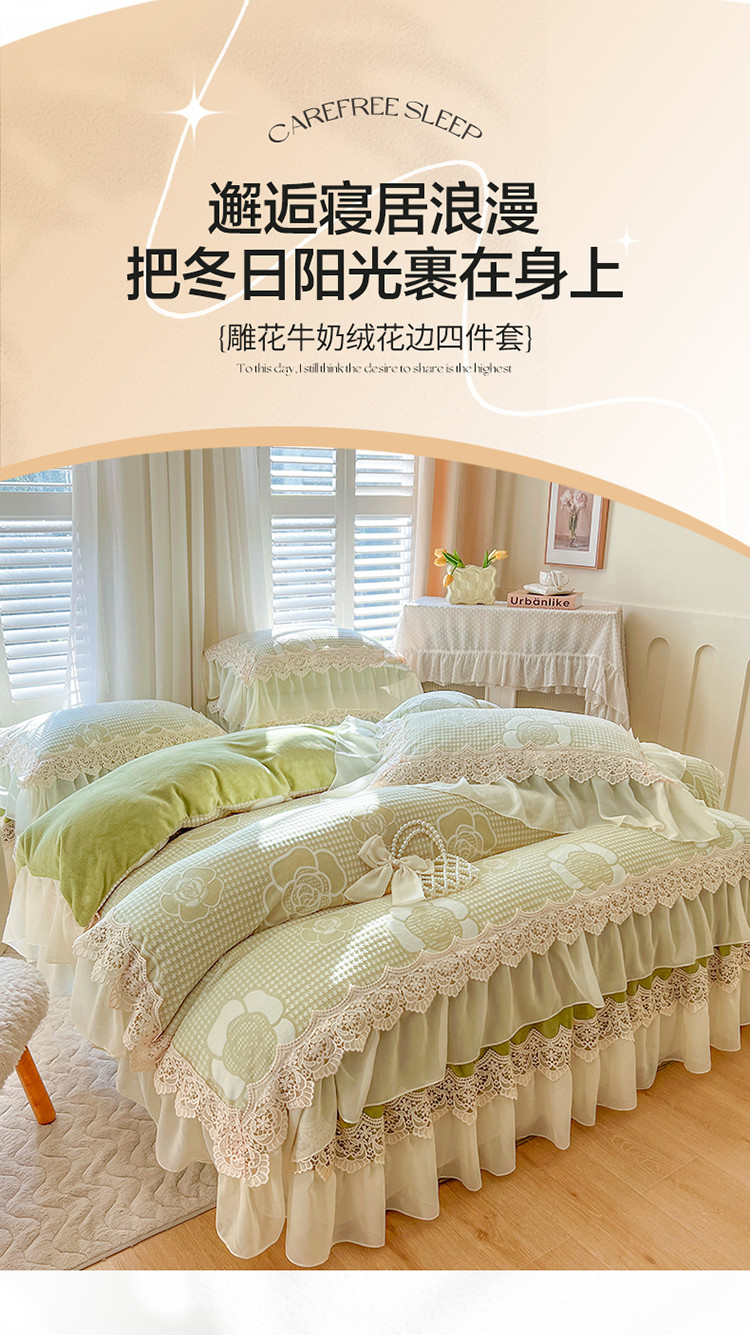 当前位置: 91家纺网 > 商品网购 > 床品套件 > 四件套 > 牛奶绒四件套 > 网红馆 2025新款花间浪漫 牛奶雕花绒四件套 果绿色
