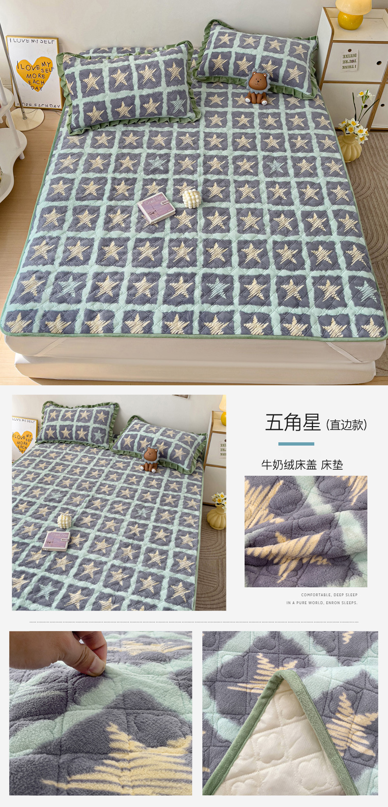 羽爱家纺 2024新款牛奶绒直边款床盖床垫 五角星