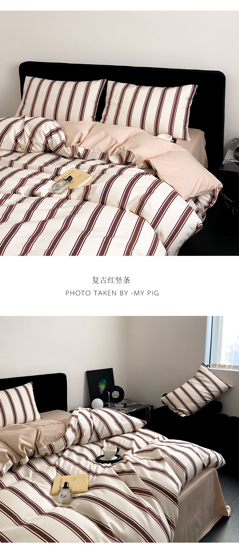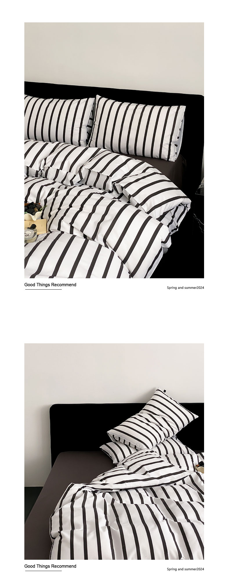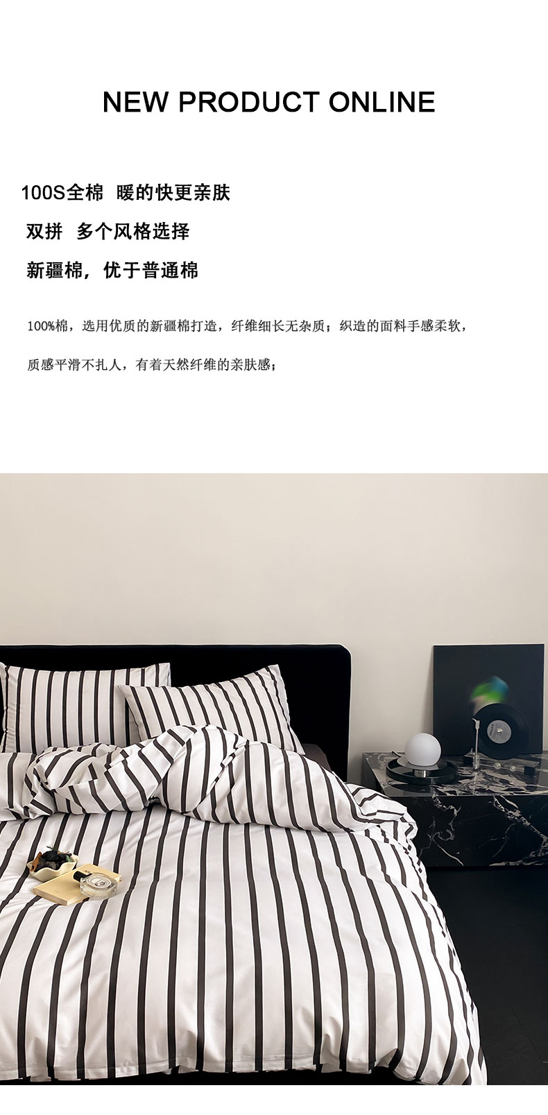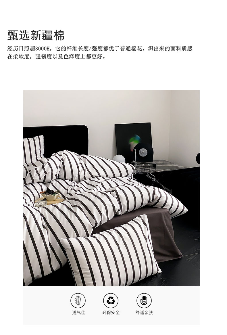 商品名称:Mr.pig猪先生水洗棉 2023新款A类全棉印花竖条纹四件套 黑条