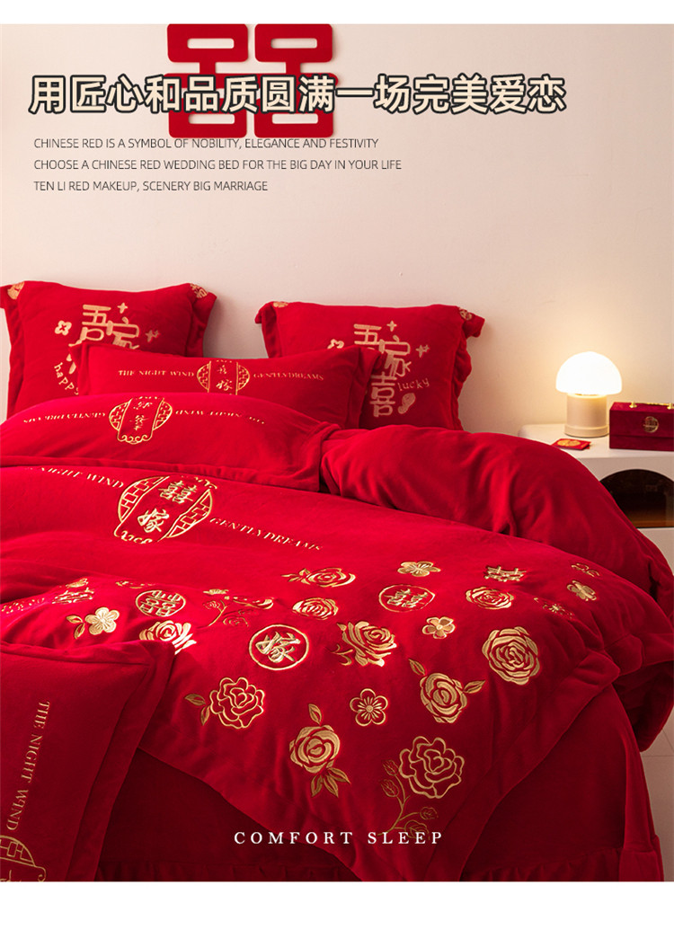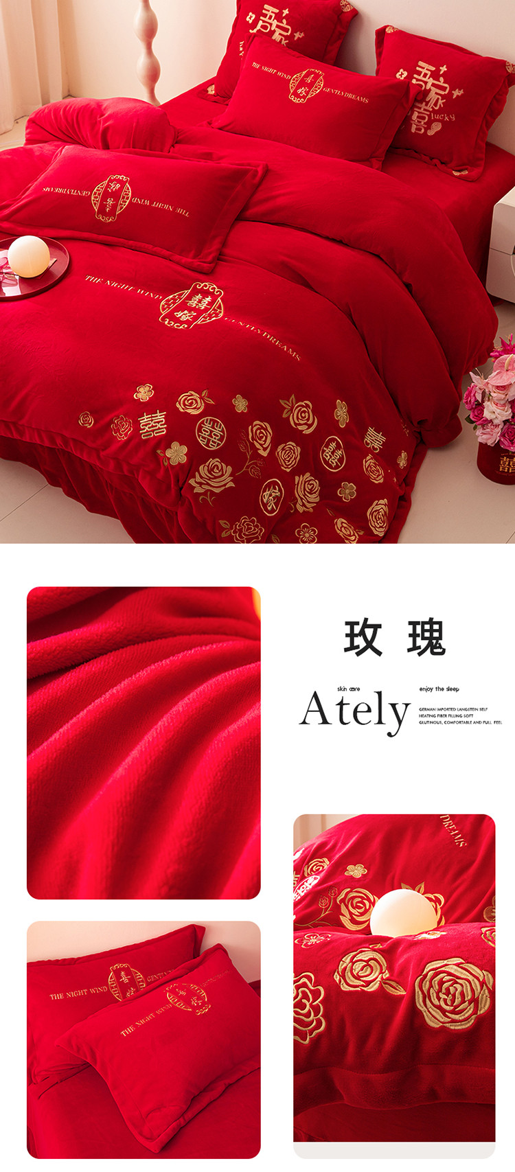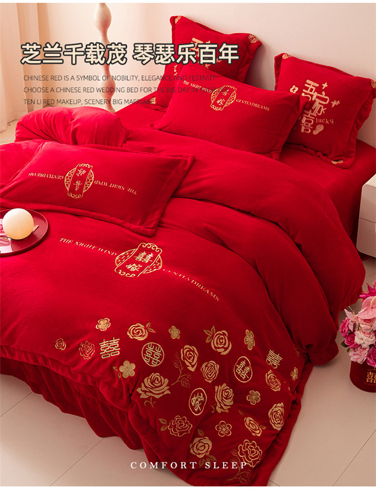 当前位置: 91家纺网 > 商品网购 > 床品套件 > 四件套 > 牛奶绒四件套 > 2025新款高克重牛奶绒刺绣婚庆四件套大红套件 牛奶绒婚庆-玫瑰