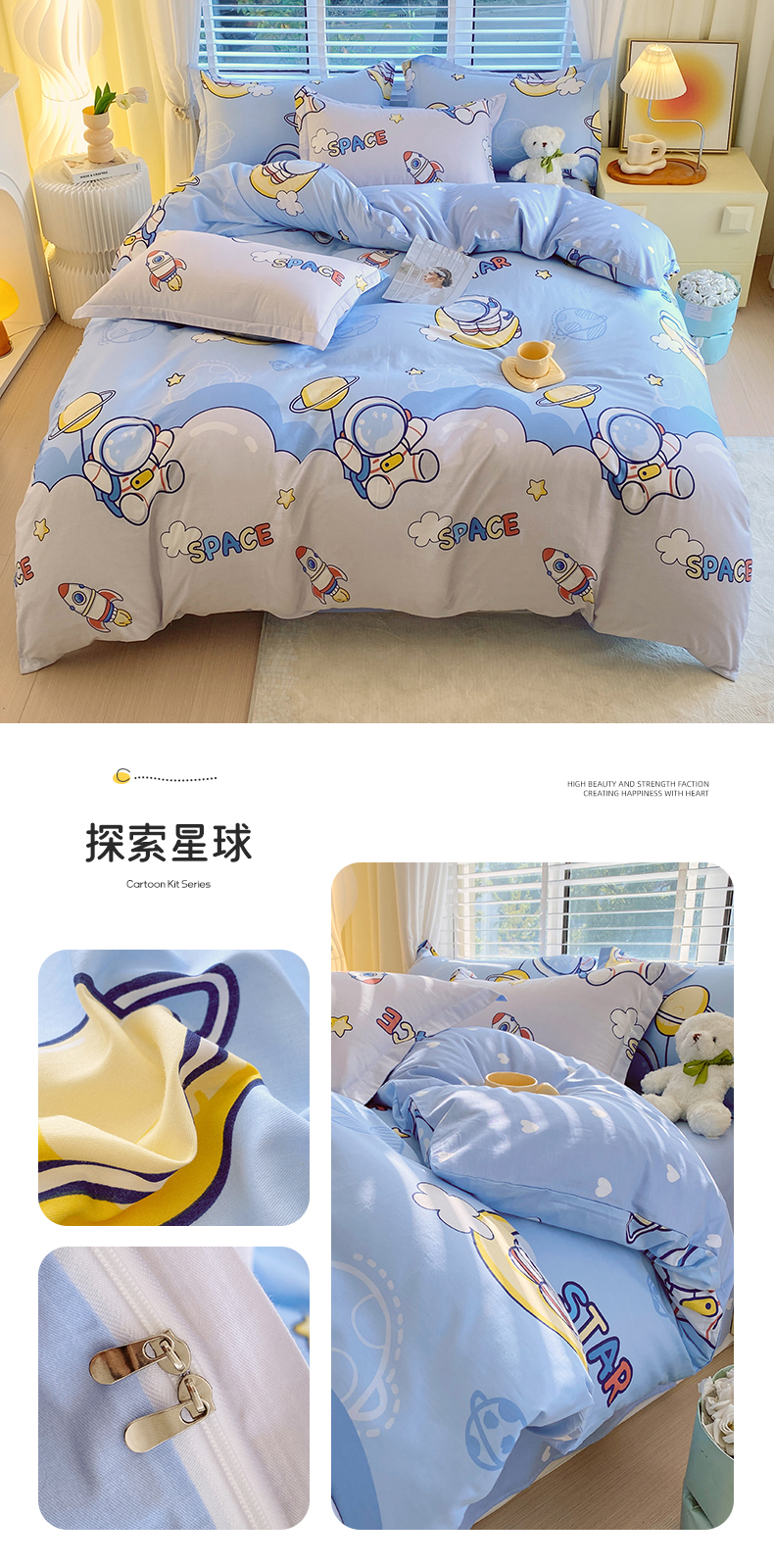当前位置: 91家纺网 > 商品网购 > 床品套件 > 四件套 > 全棉普通四件套 > 拾物记 2024新款A类喷气全棉12868卡通印花四件套 探索星球0