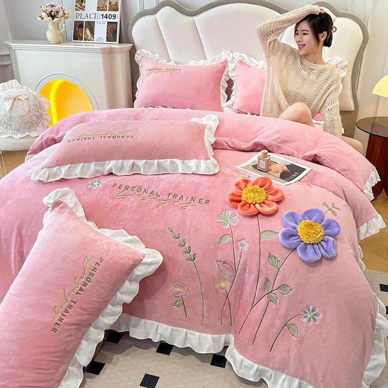 漫布云9斤230g全消光婴儿绒被套兔毛绒牛奶绒贴布绣刺绣花四件套小清新