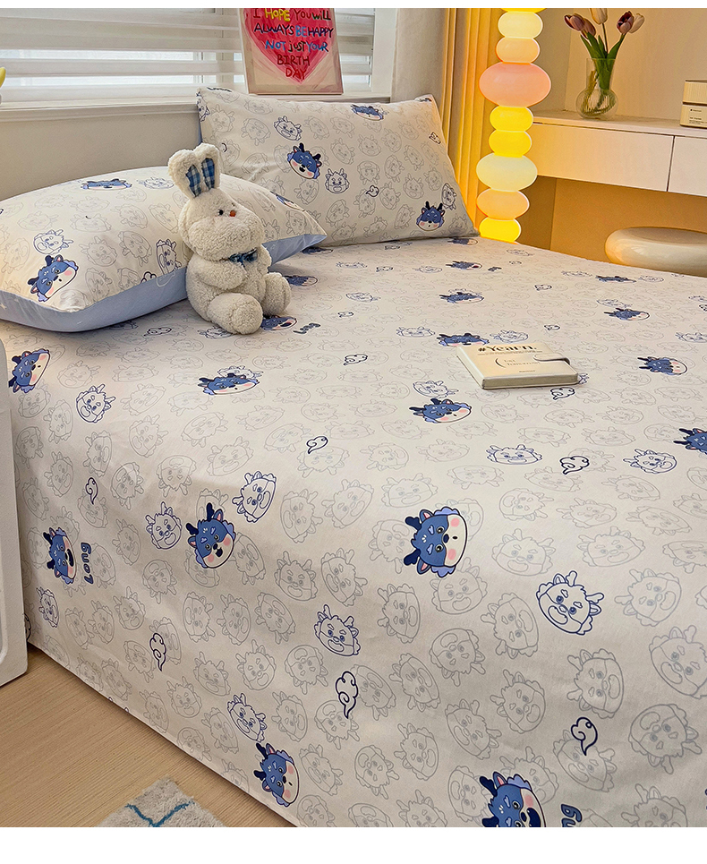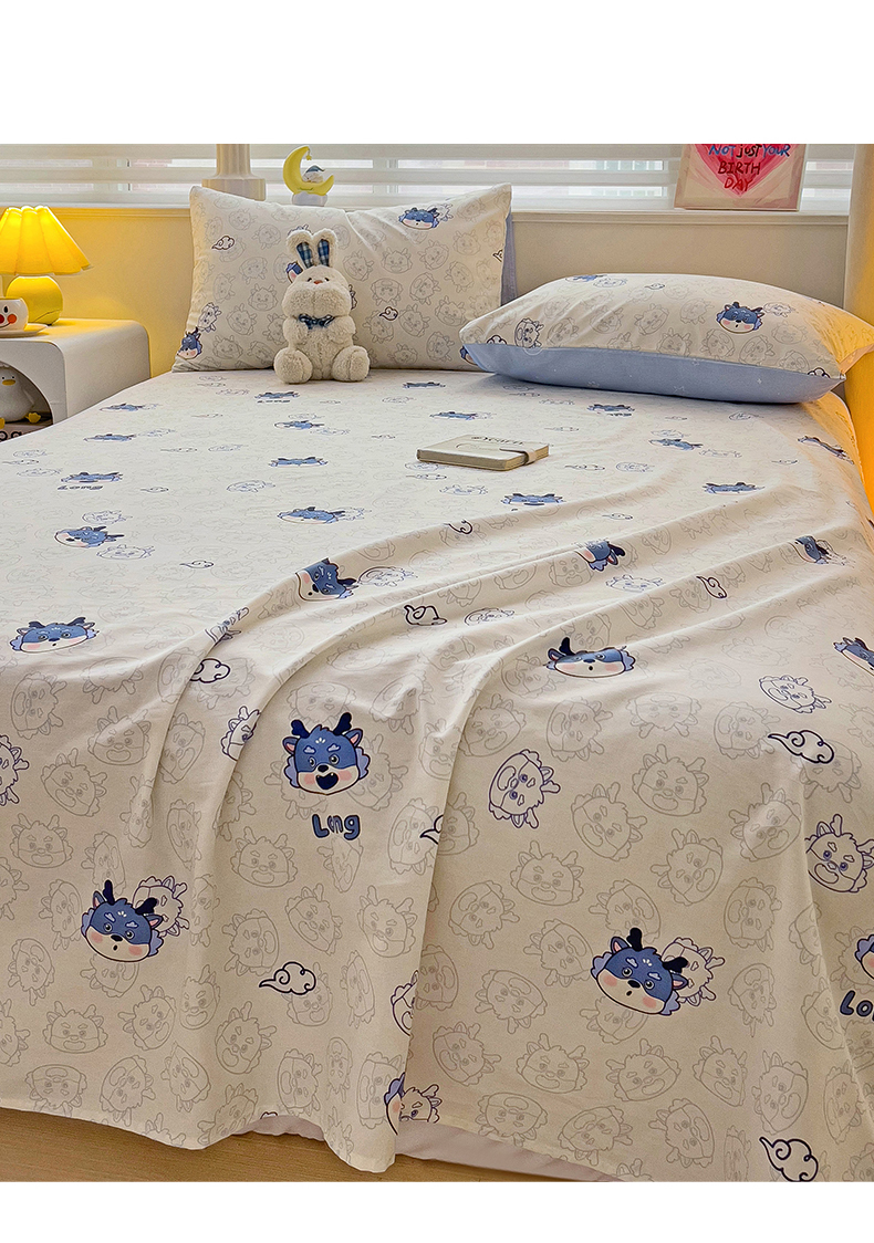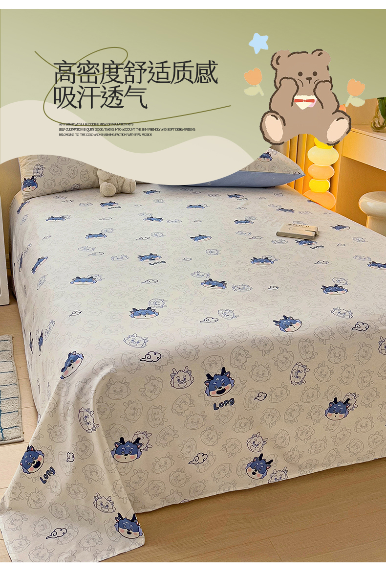 名兮家居 2024新款小清新全棉单品床单 龙宝宝-蓝
