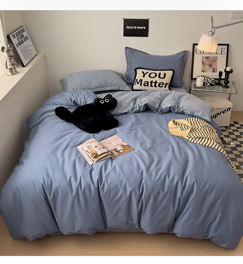 当前位置: 91家纺网 > 商品网购 > 床品套件 > 四件套 > 全棉普通四件套 > 恩泽家纺 2026新款全棉13372纯色双拼系列四件套 藏青+月白兰
