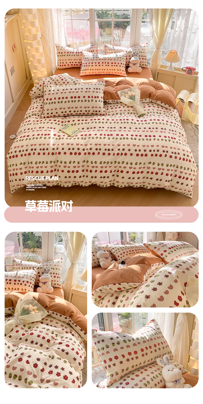 当前位置: 91家纺网 > 商品网购 > 床品套件 > 四件套 > 化纤普通四件套 > 玉海棠家纺 2024新款泡泡云朵棉四件套 草莓派对