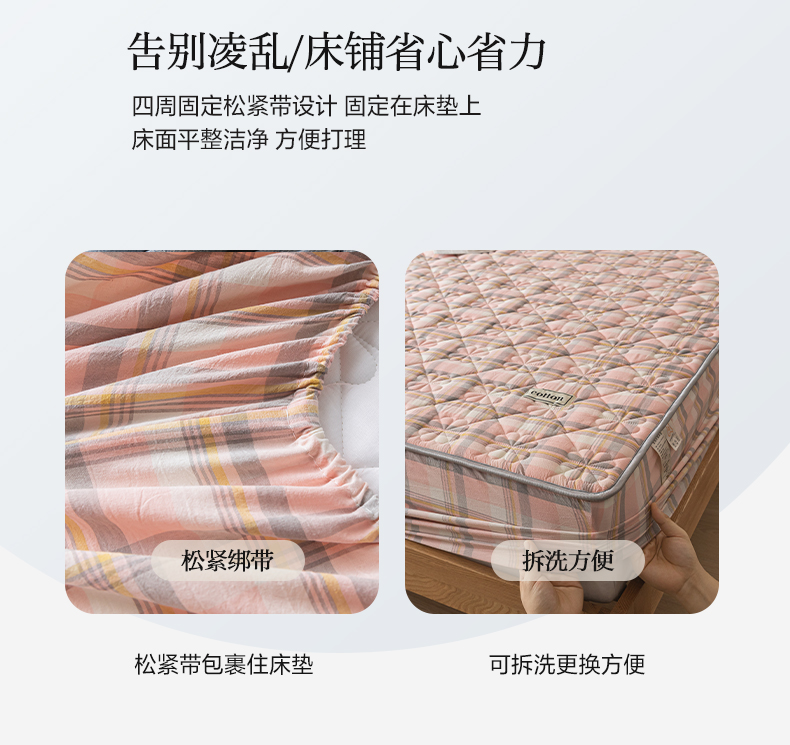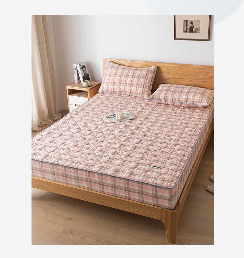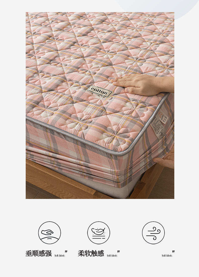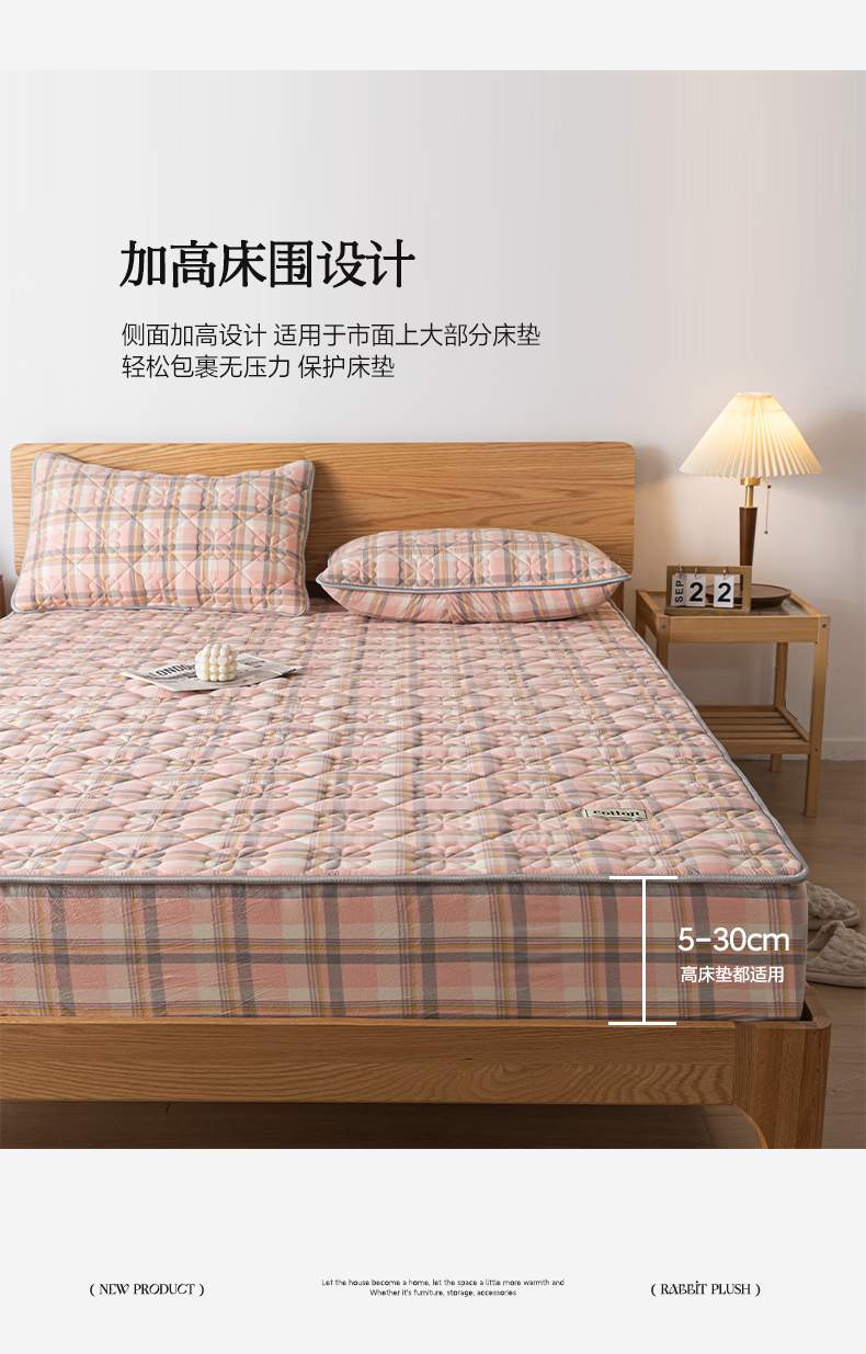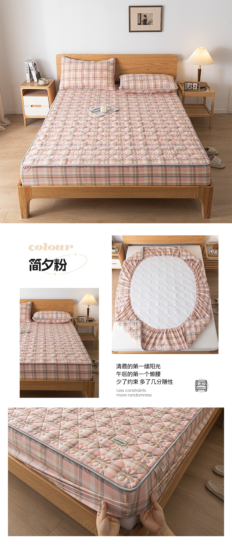 • 91家纺网 家纺一手货源 找家纺 芬晴家纺 2024新款纯棉色织夹棉床笠 简夕粉