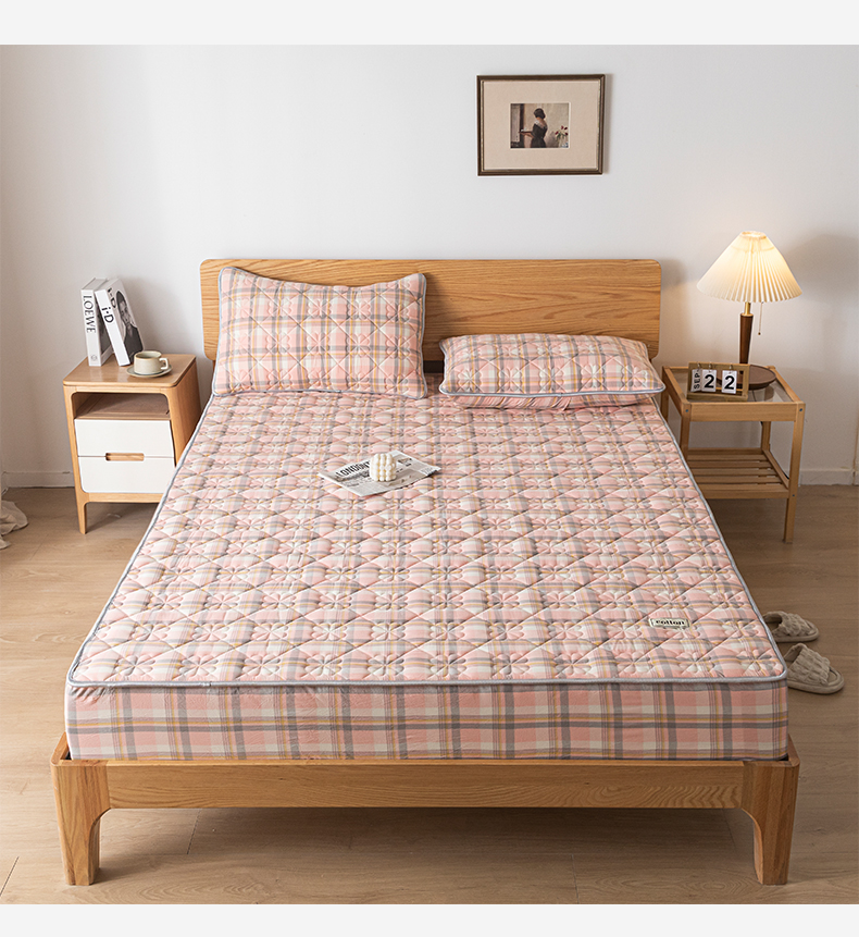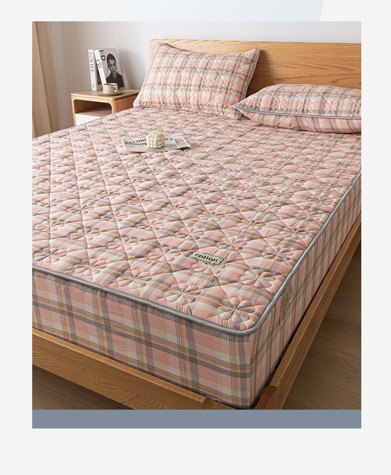 芬晴家纺 2024新款纯棉色织夹棉床笠 简夕粉