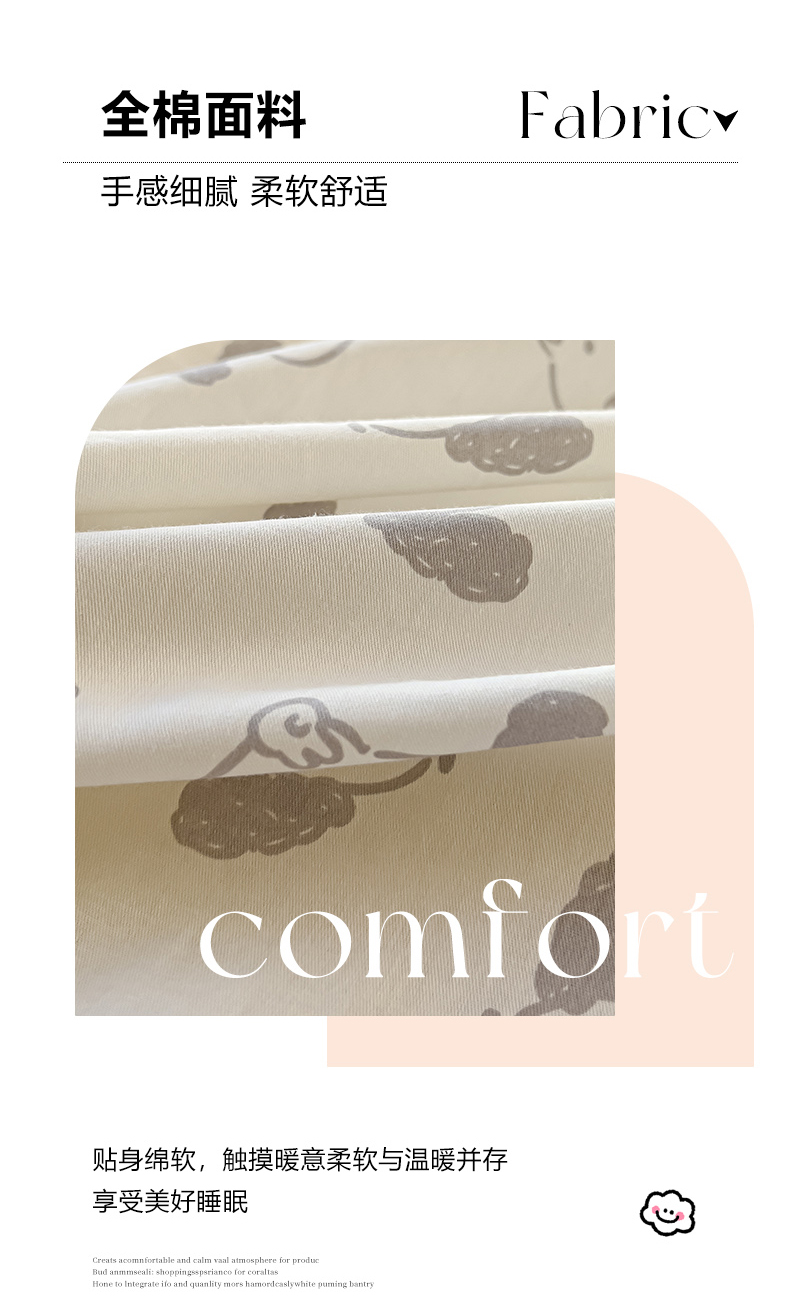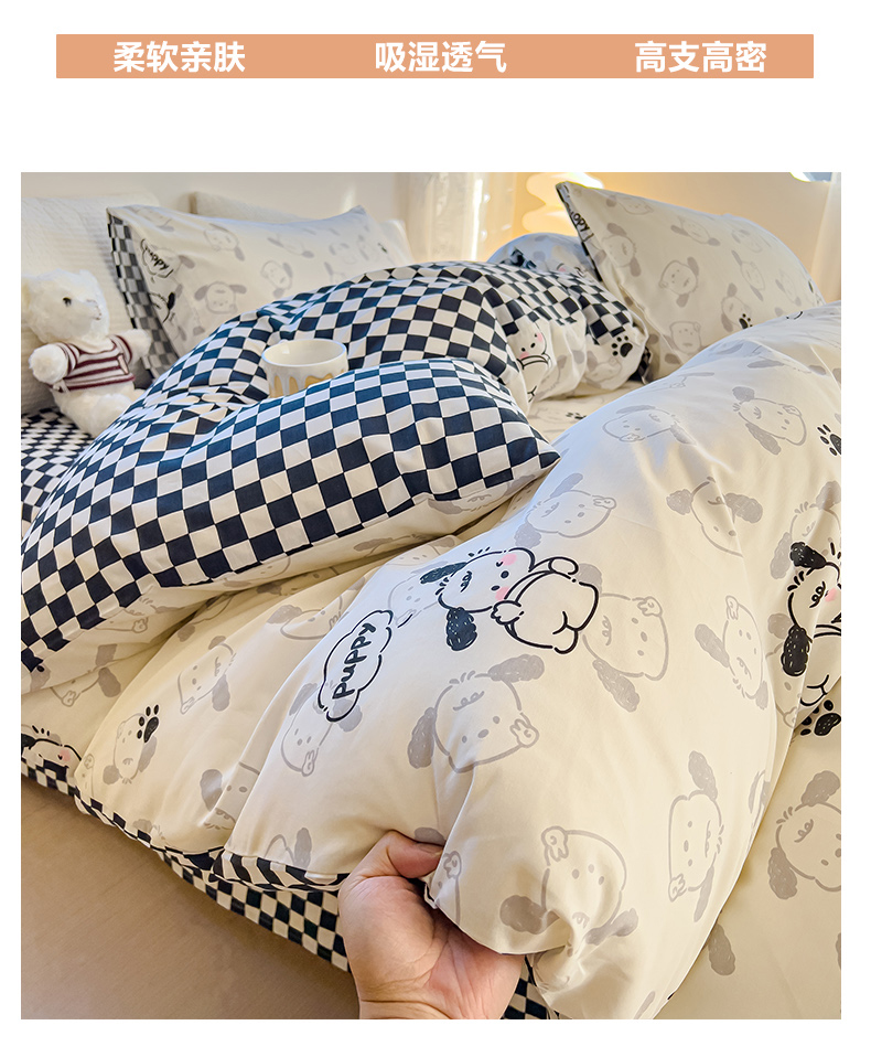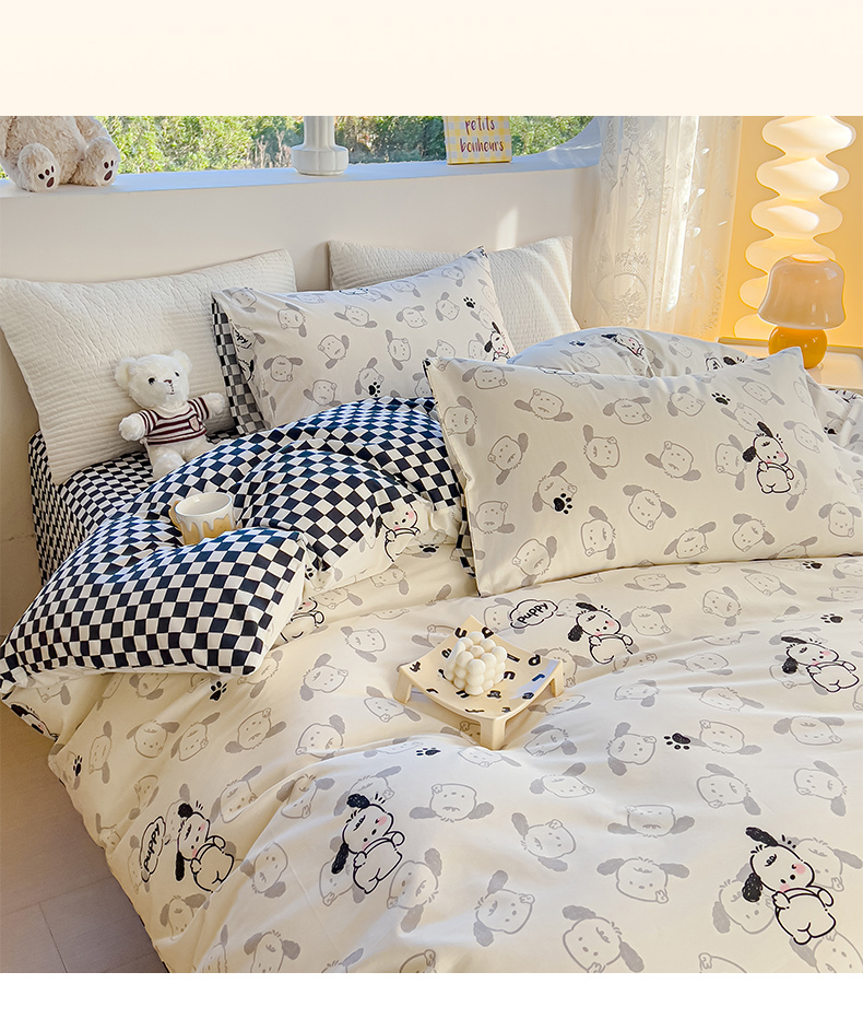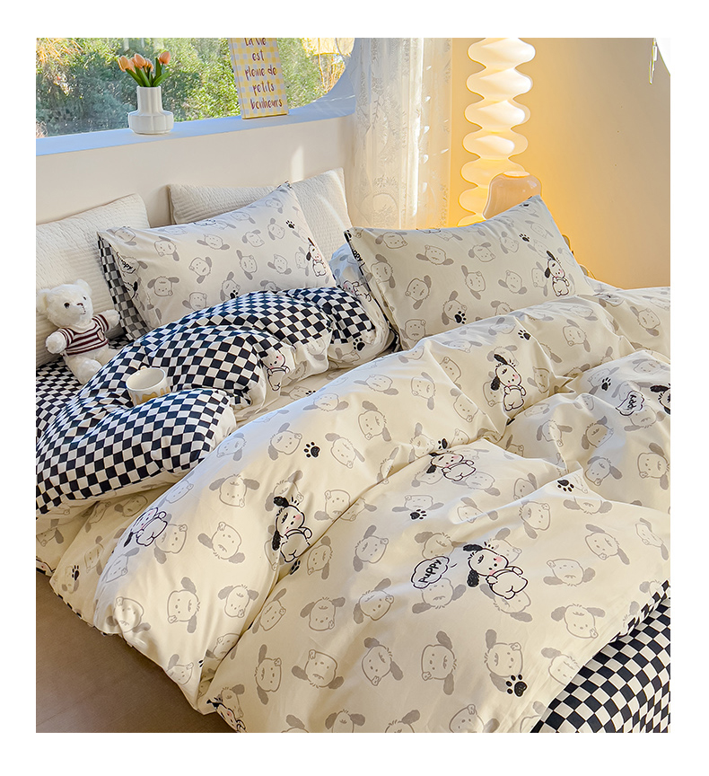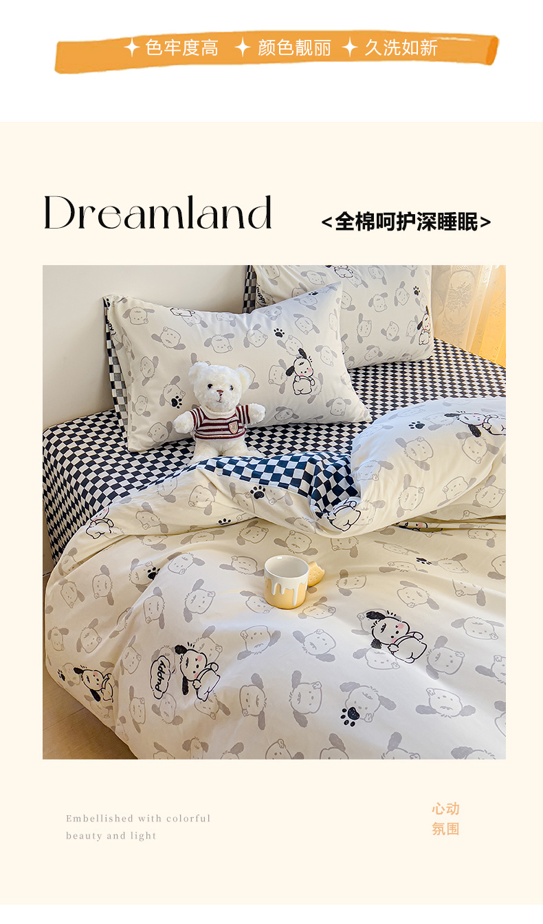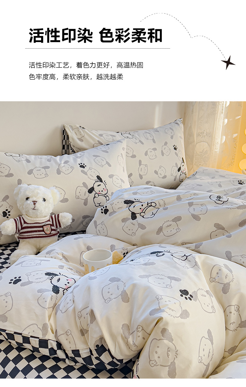 当前位置: 91家纺网 > 商品网购 > 床品套件 > 四件套 > 全棉普通四件套 > 感遇家纺 2024春夏新品全棉卡通印花四件套-第一批 回眸狗狗