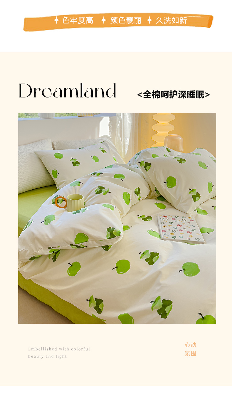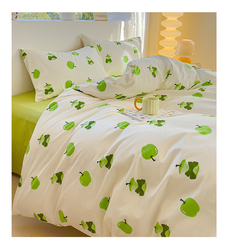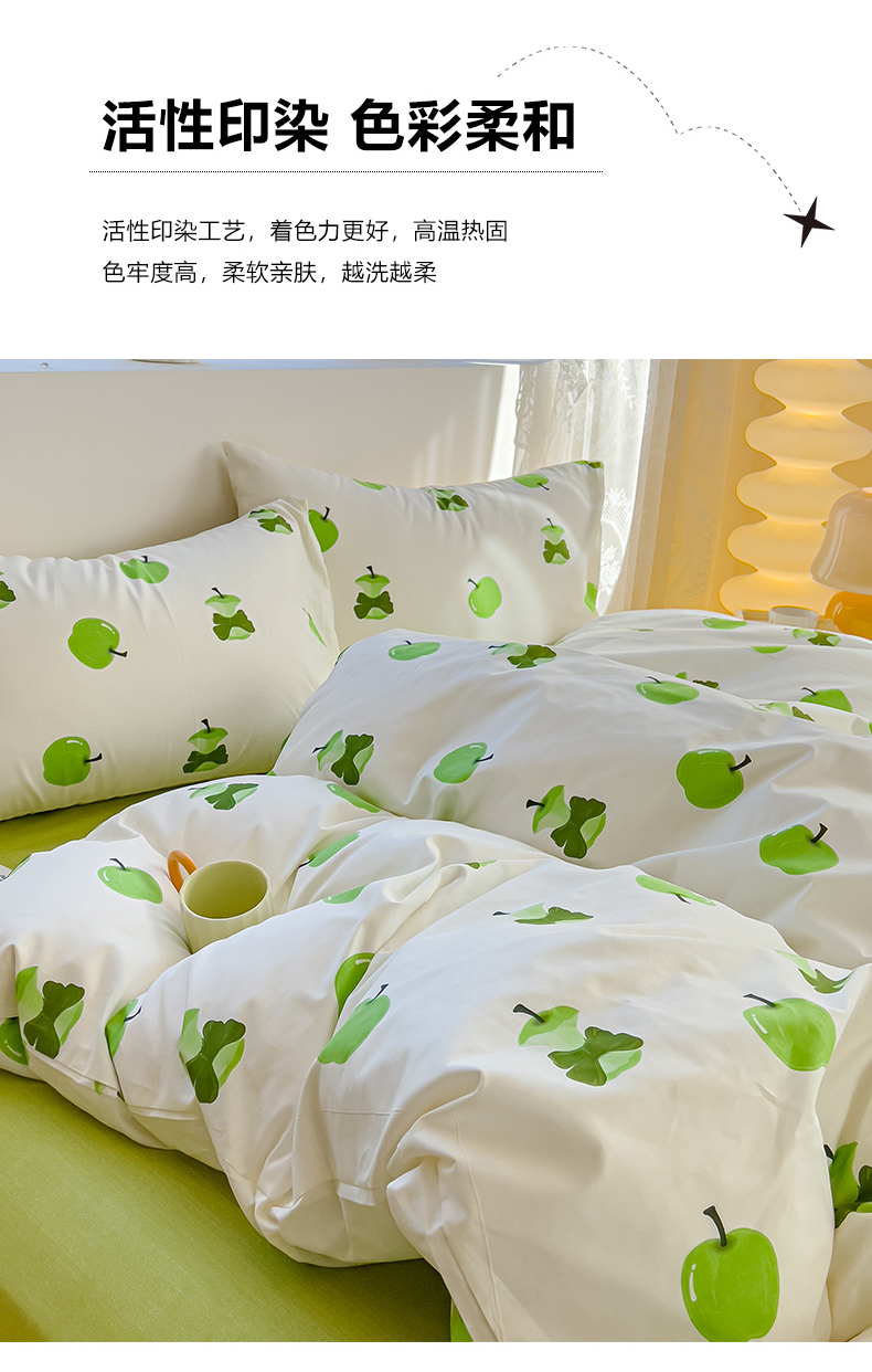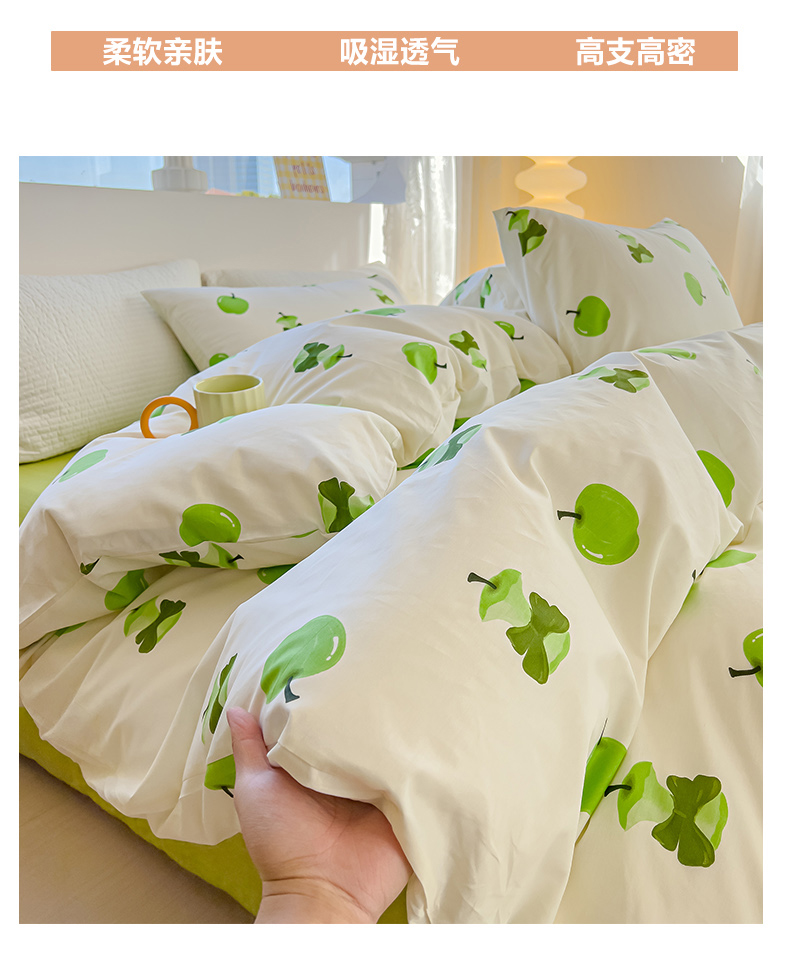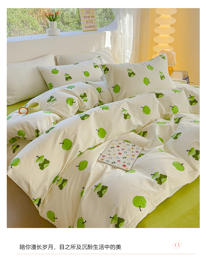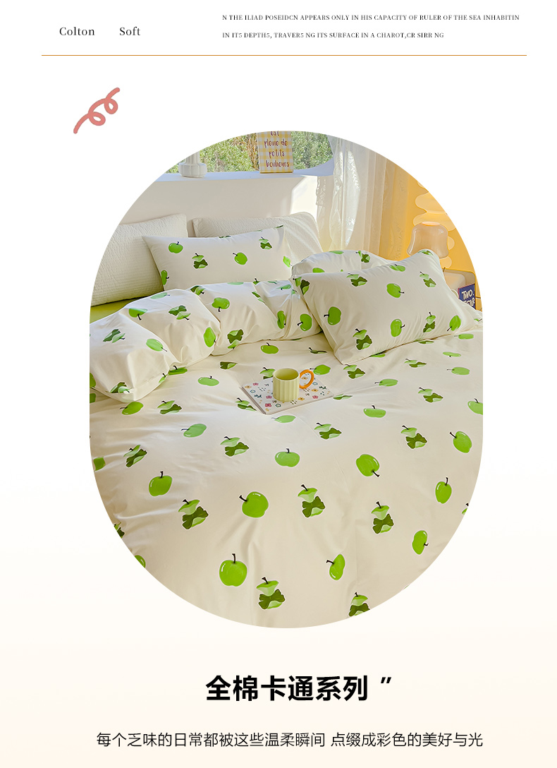 当前位置: 91家纺网 > 商品网购 > 床品套件 > 四件套 > 全棉普通四件套 > 感遇家纺 2024春夏新品全棉卡通印花四件套-第一批 青苹果