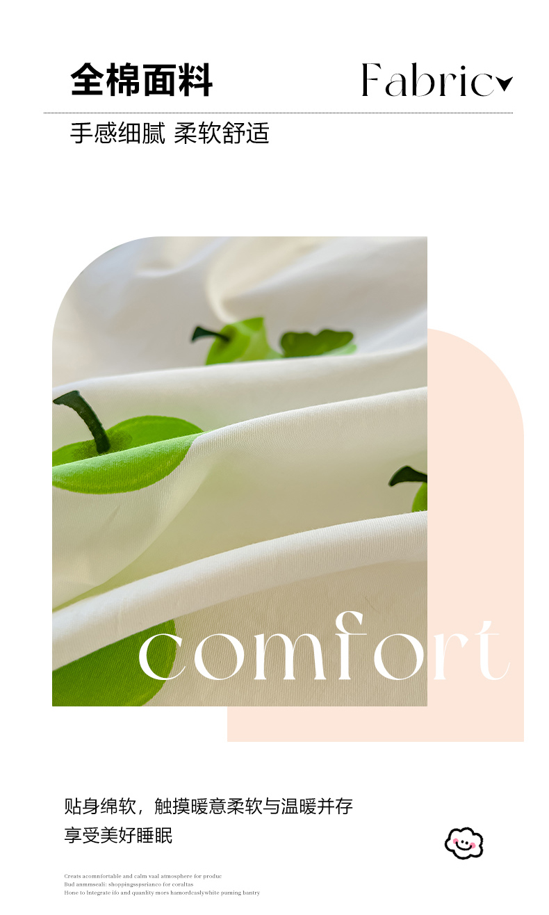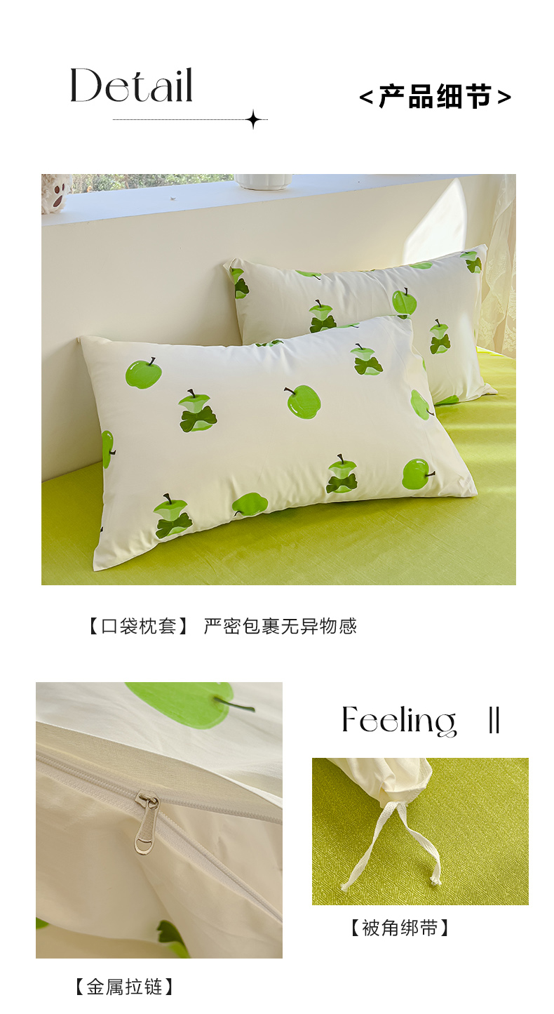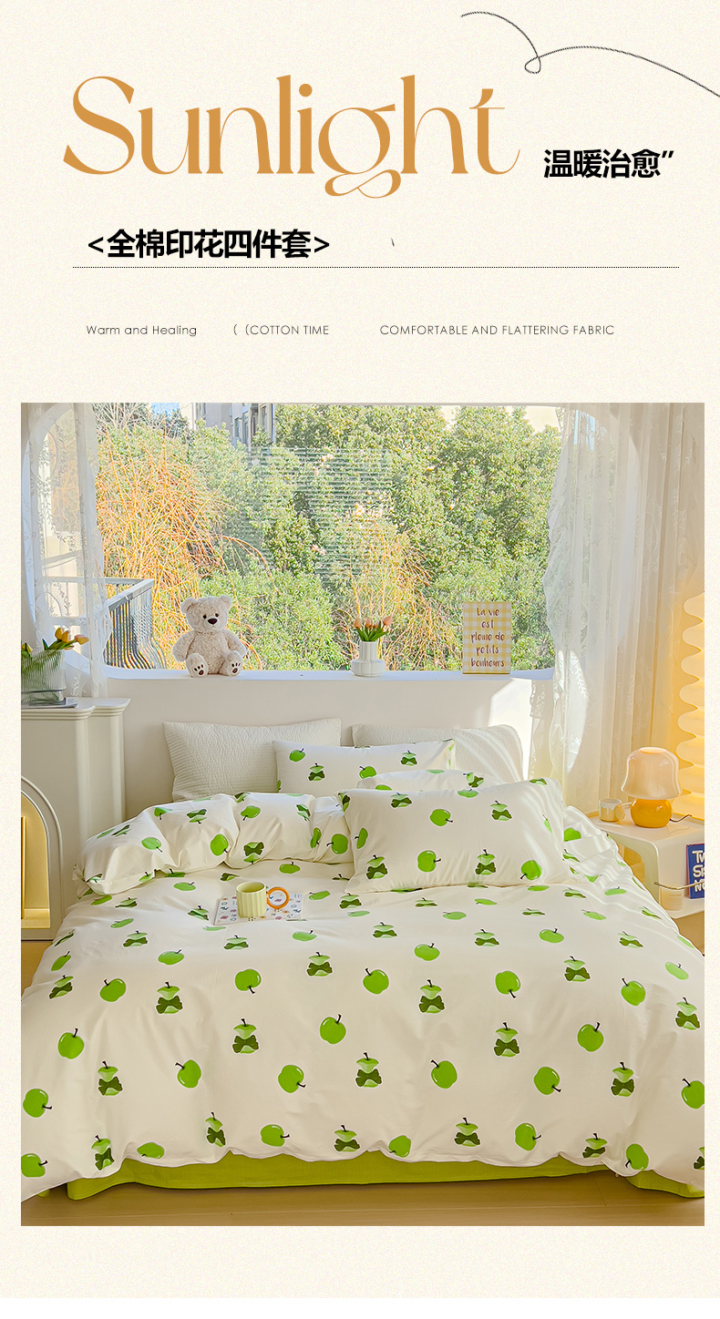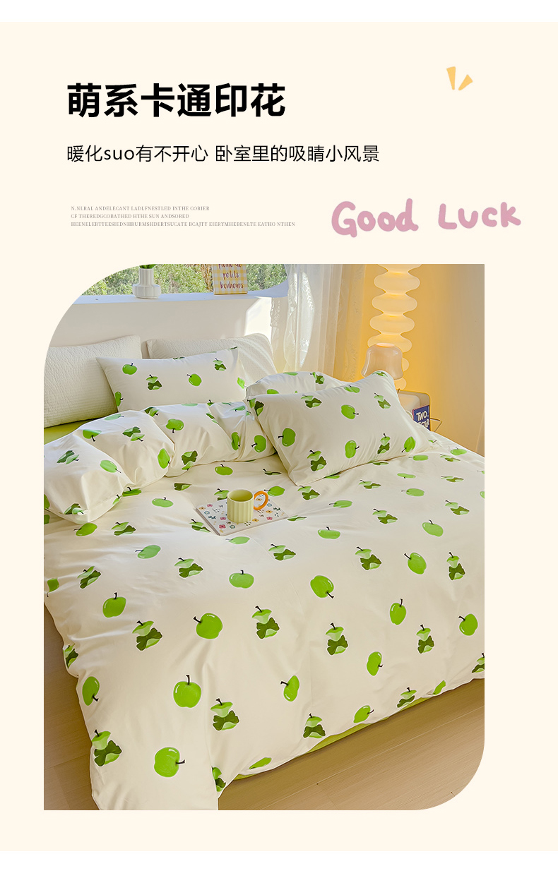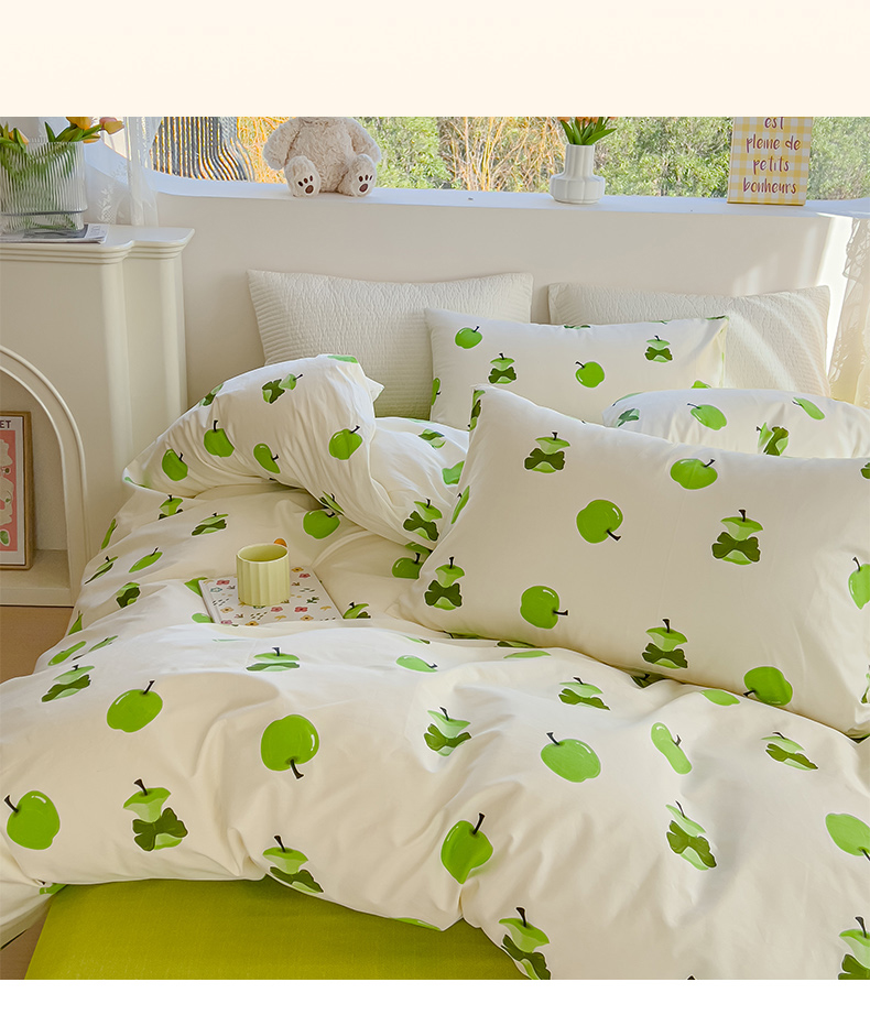 当前位置: 91家纺网 > 商品网购 > 床品套件 > 四件套 > 全棉普通四件套 > 感遇家纺 2024春夏新品全棉卡通印花四件套-第一批 青苹果