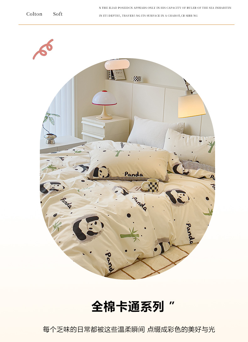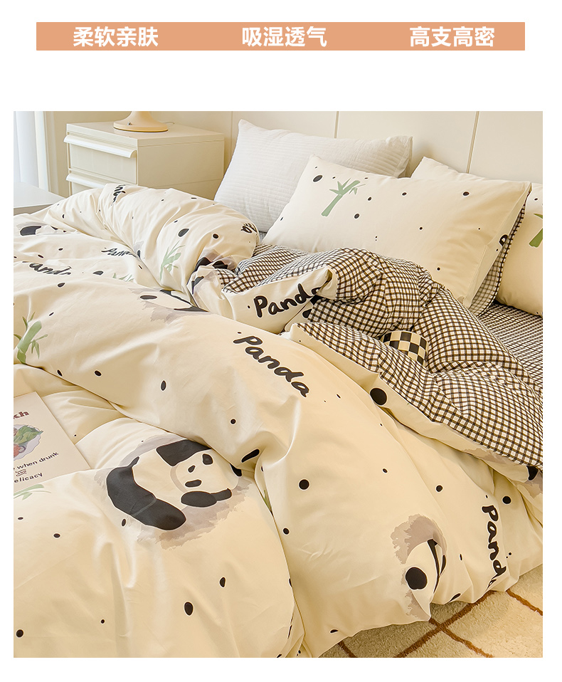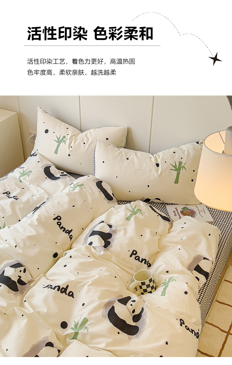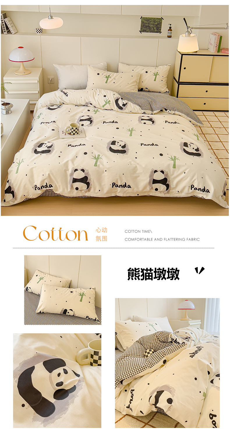 当前位置: 91家纺网 > 商品网购 > 床品套件 > 四件套 > 全棉普通四件套 > 感遇家纺 2024春夏新品全棉卡通印花四件套-第二批 熊猫墩墩