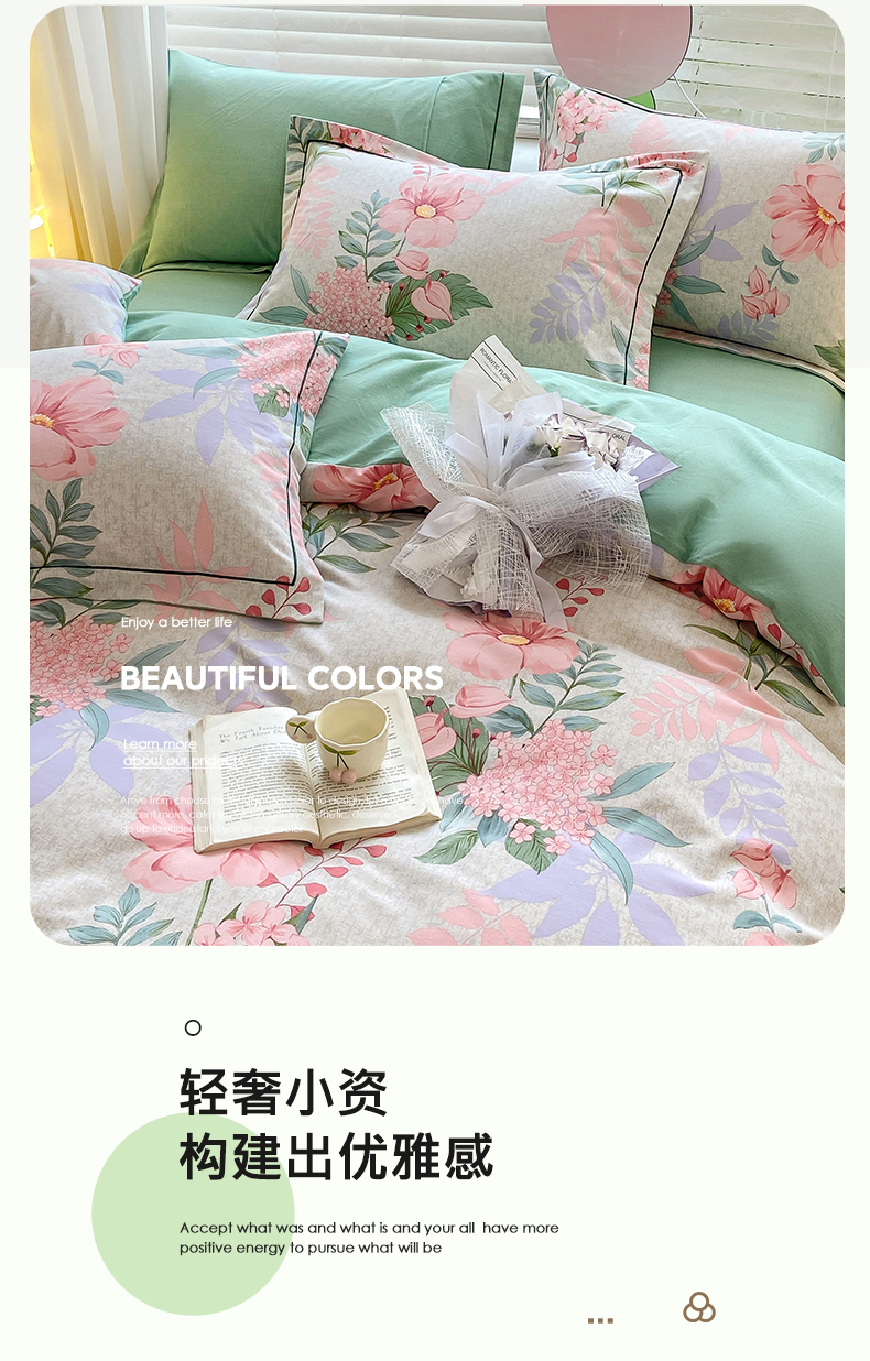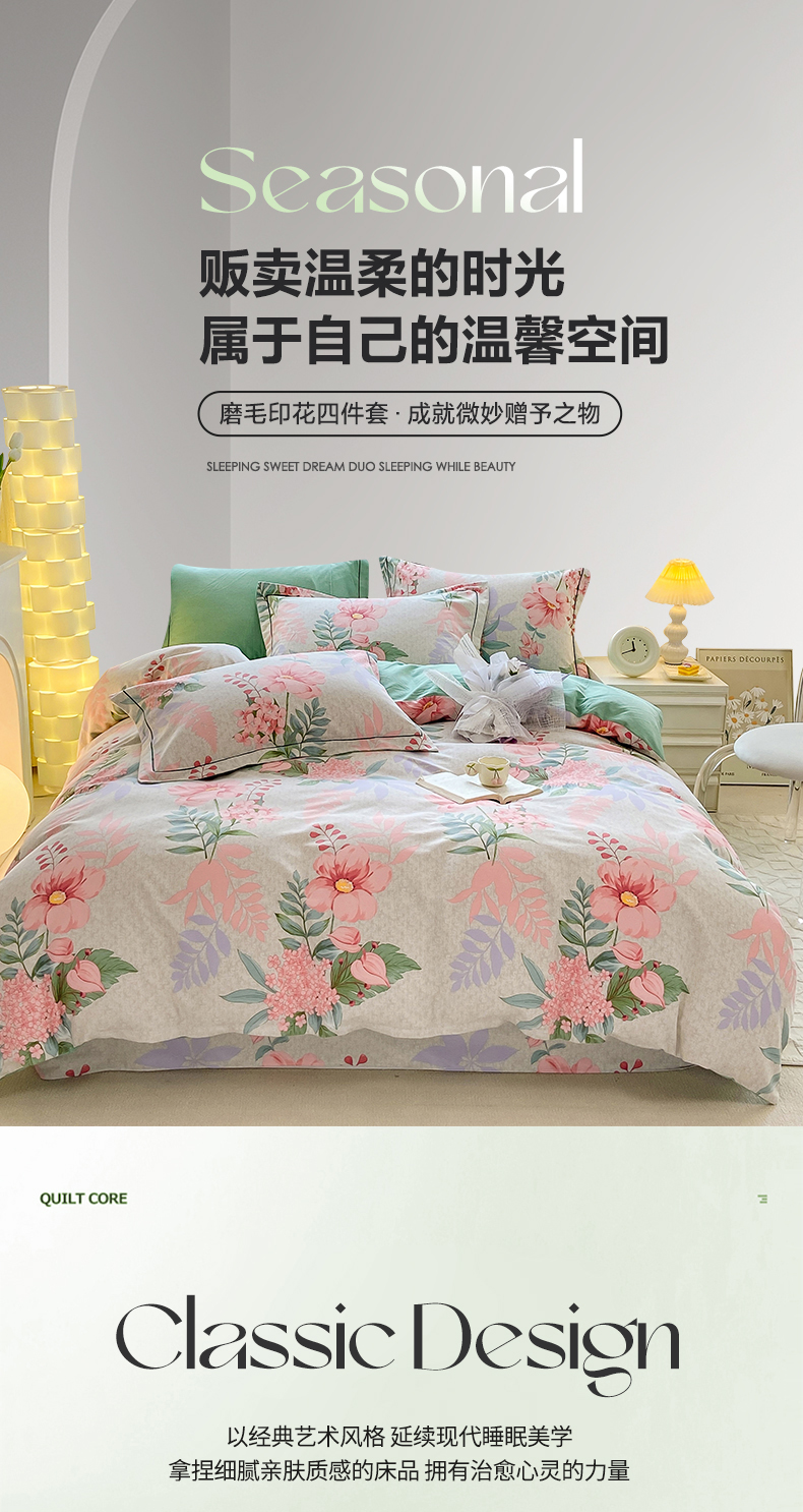 宜家坊 2024新款ins小清新磨毛印花四件套 蔚然花