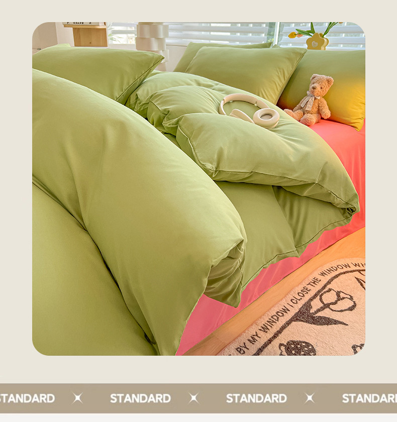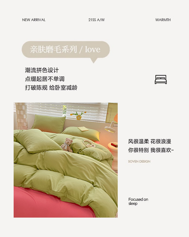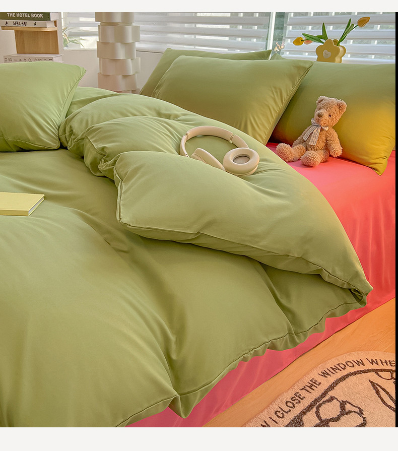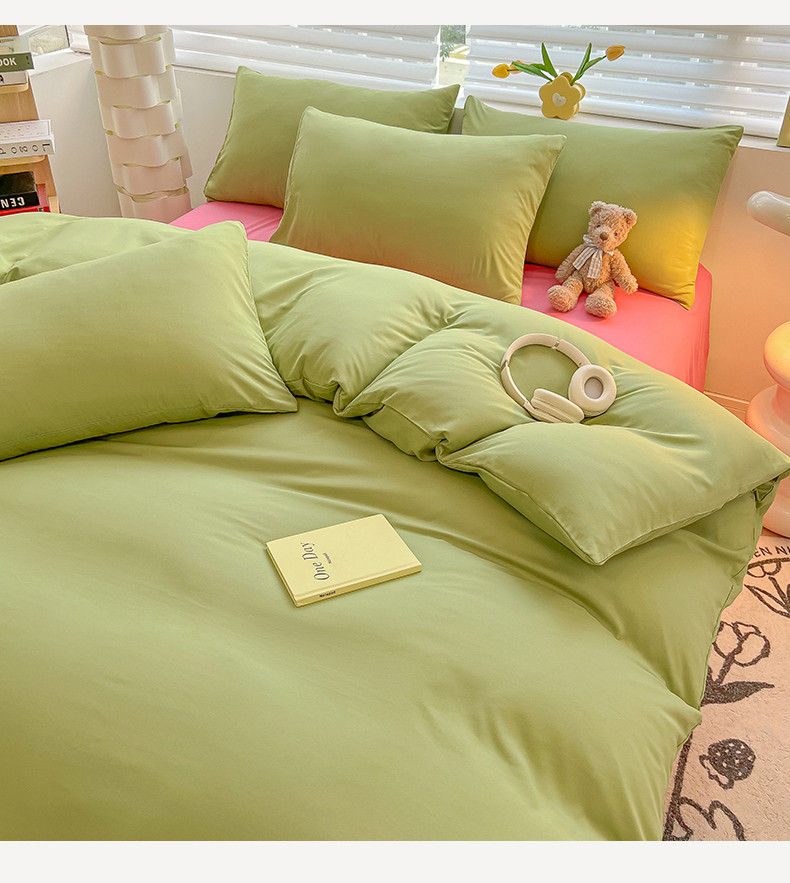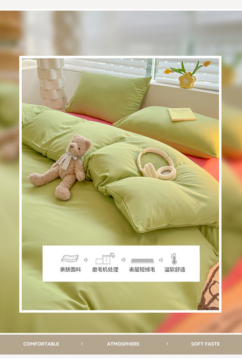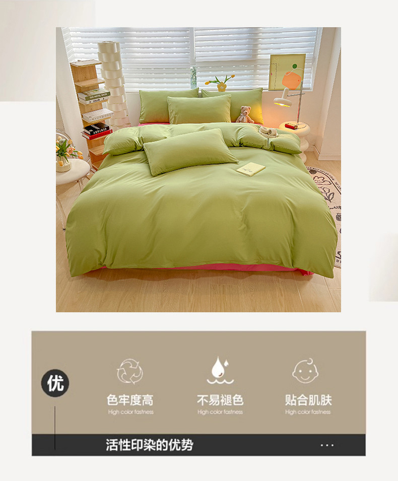 当前位置: 91家纺网 > 商品网购 > 床品套件 > 四件套 > 化纤活性四件套 > 玉海棠家纺 2024新款日式简约风纯色双拼水洗棉四件套 双拼-粉绿