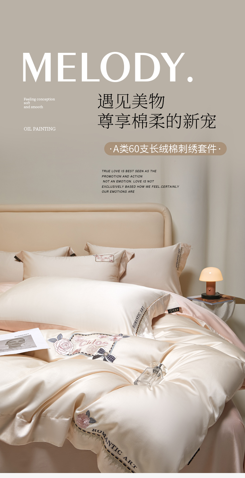 商品名称:(总)618家纺 2024新款A类60s长绒棉全棉纯棉四件套100%全棉可可系列 可可米粉