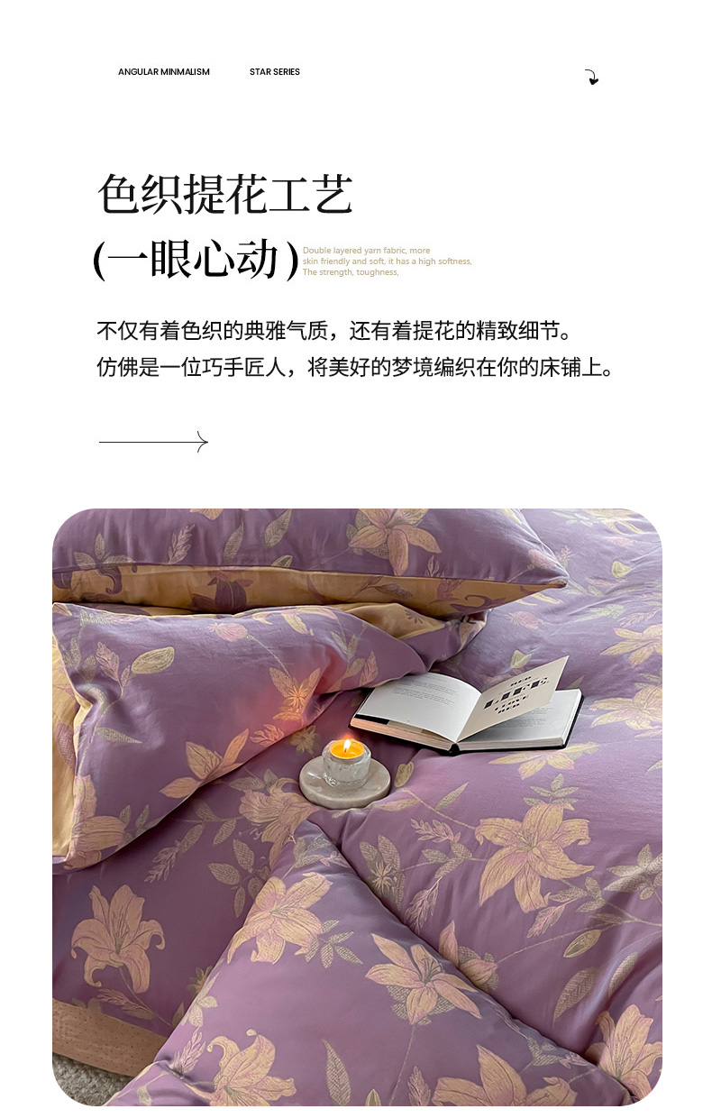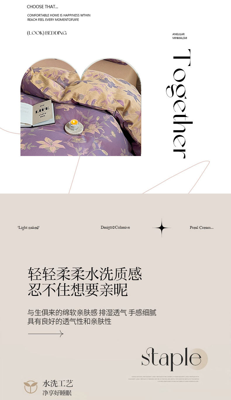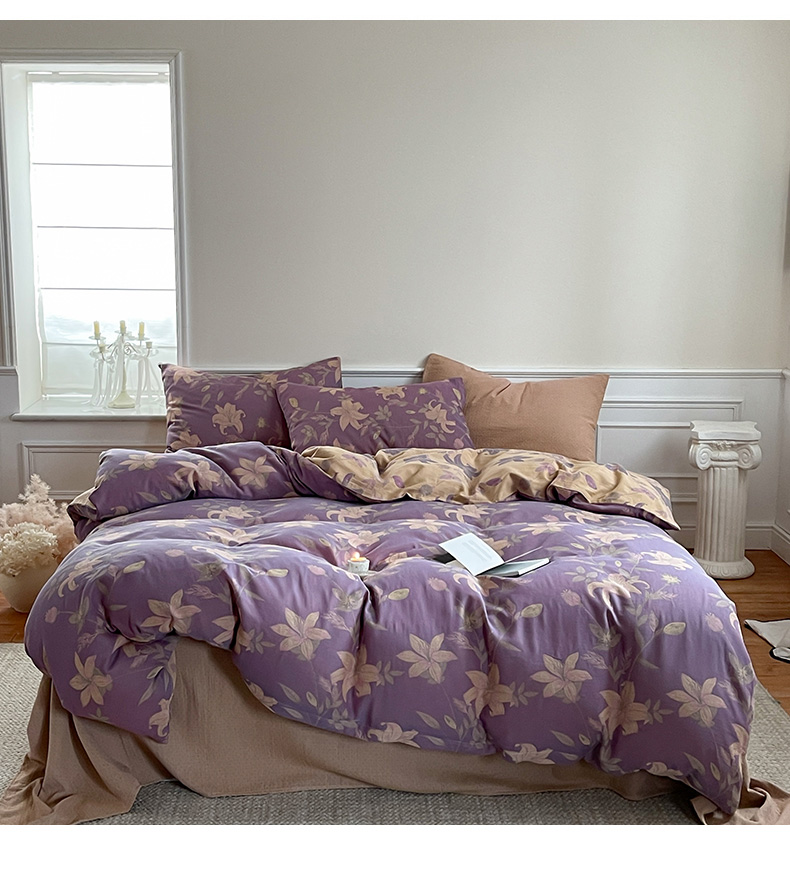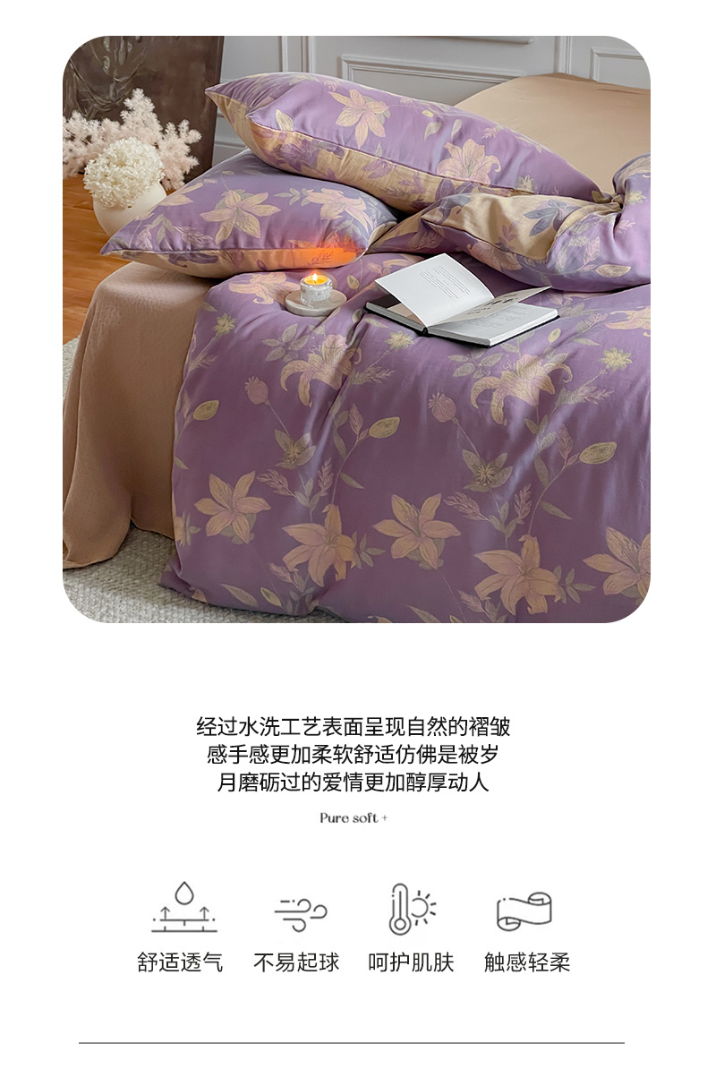 • 91家纺网 家纺一手货源 找家纺 艾咪 新款法式复古风纯棉双层纱布四件套(有单品售) 百合紫