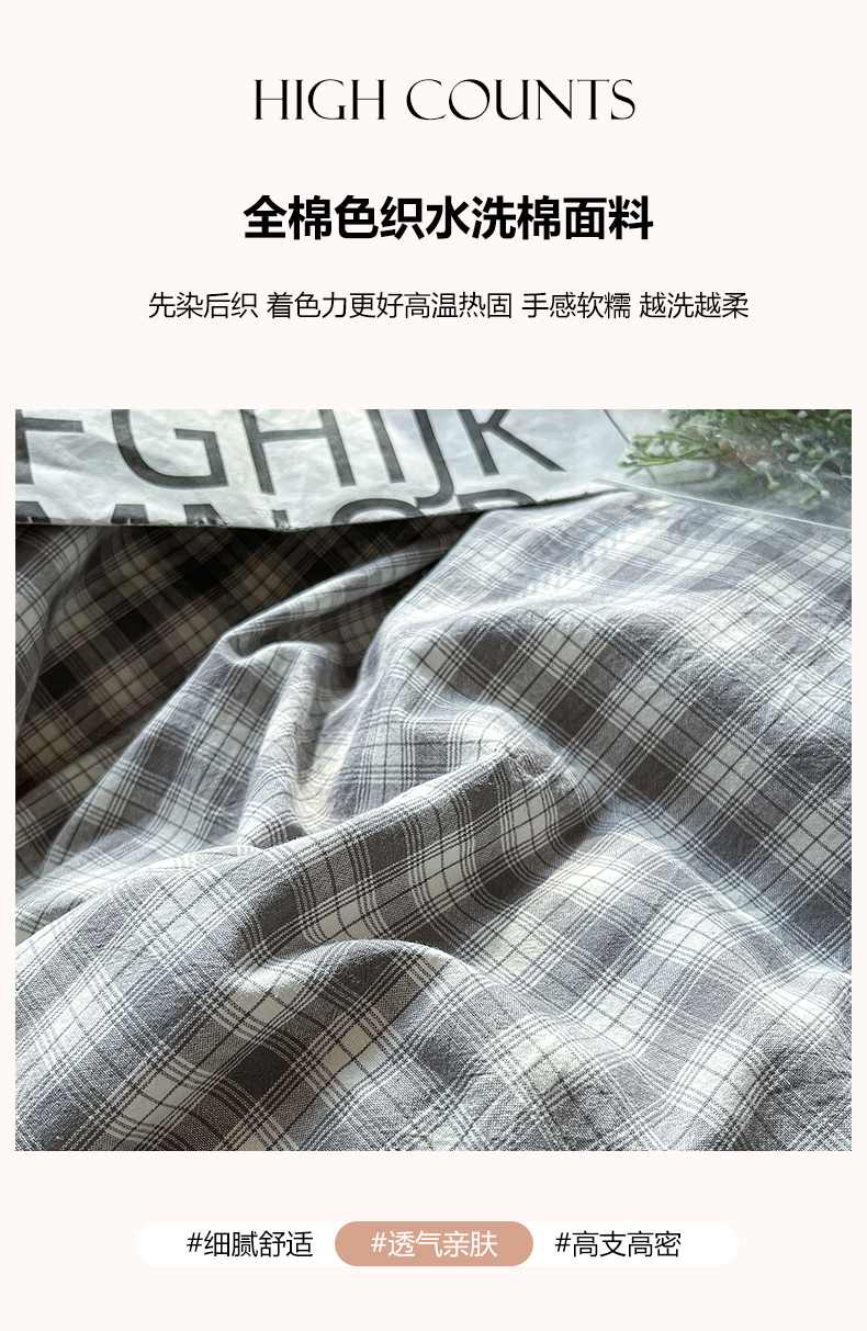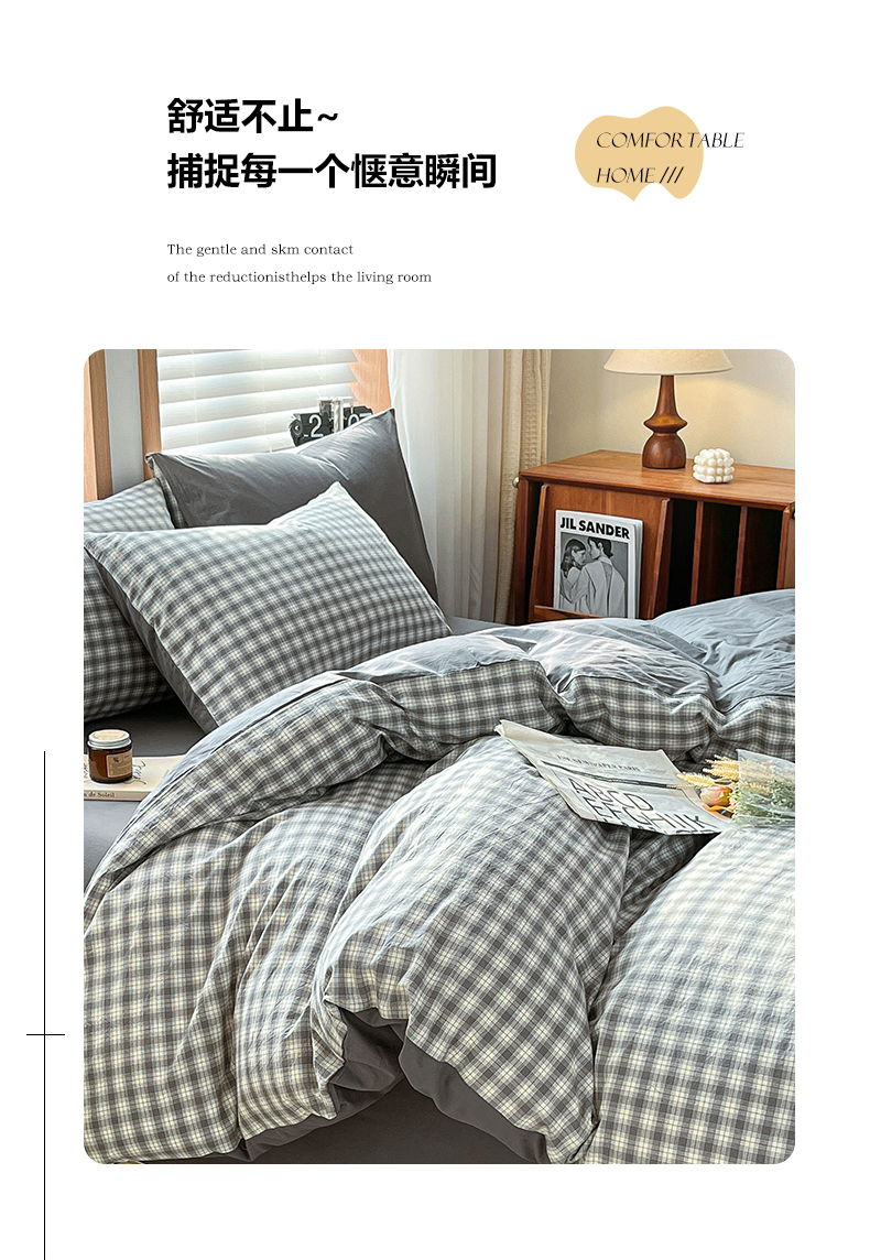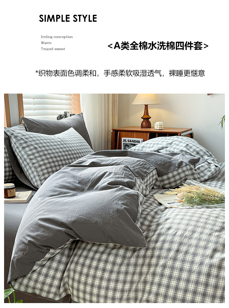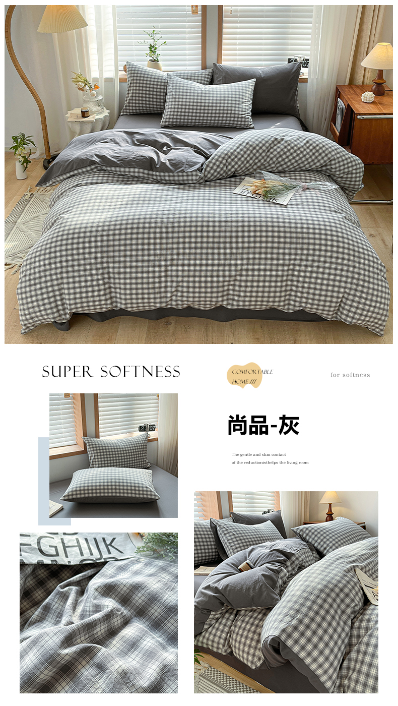 当前位置: 91家纺网 > 商品网购 > 床品套件 > 四件套 > 水洗棉四件套 > 柠萌家居 2024新款无印风A类全棉色织水洗棉四件套 尚品-灰