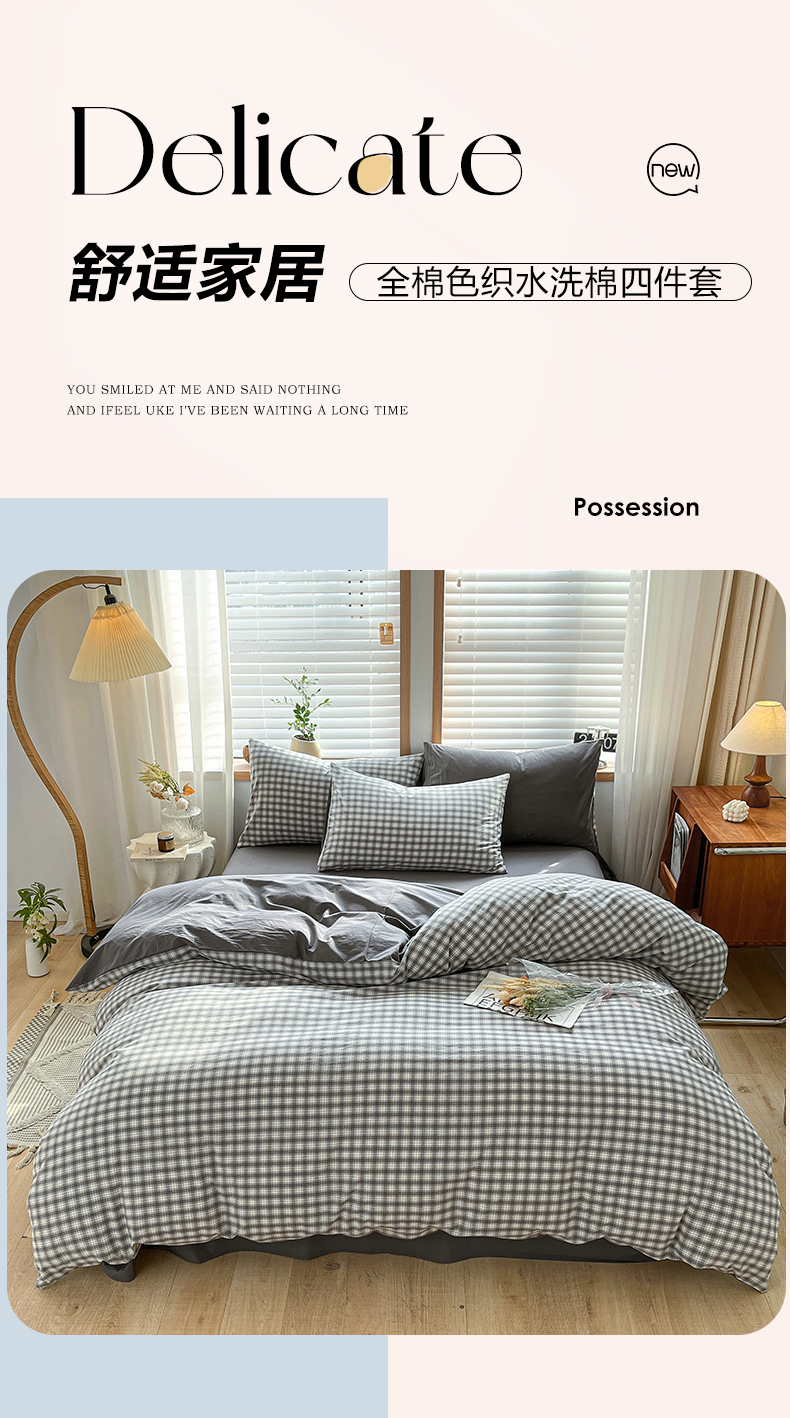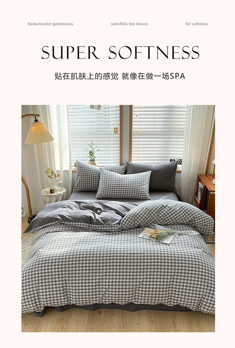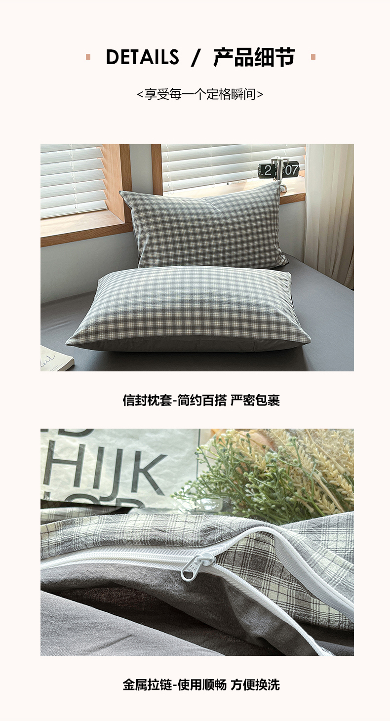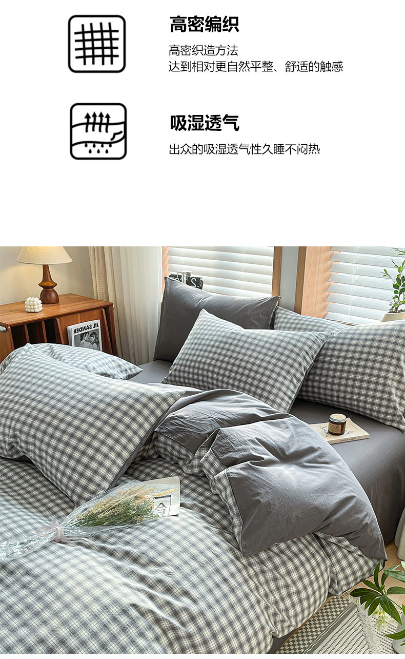 当前位置: 91家纺网 > 商品网购 > 床品套件 > 四件套 > 水洗棉四件套 > 柠萌家居 2024新款无印风A类全棉色织水洗棉四件套 尚品-灰