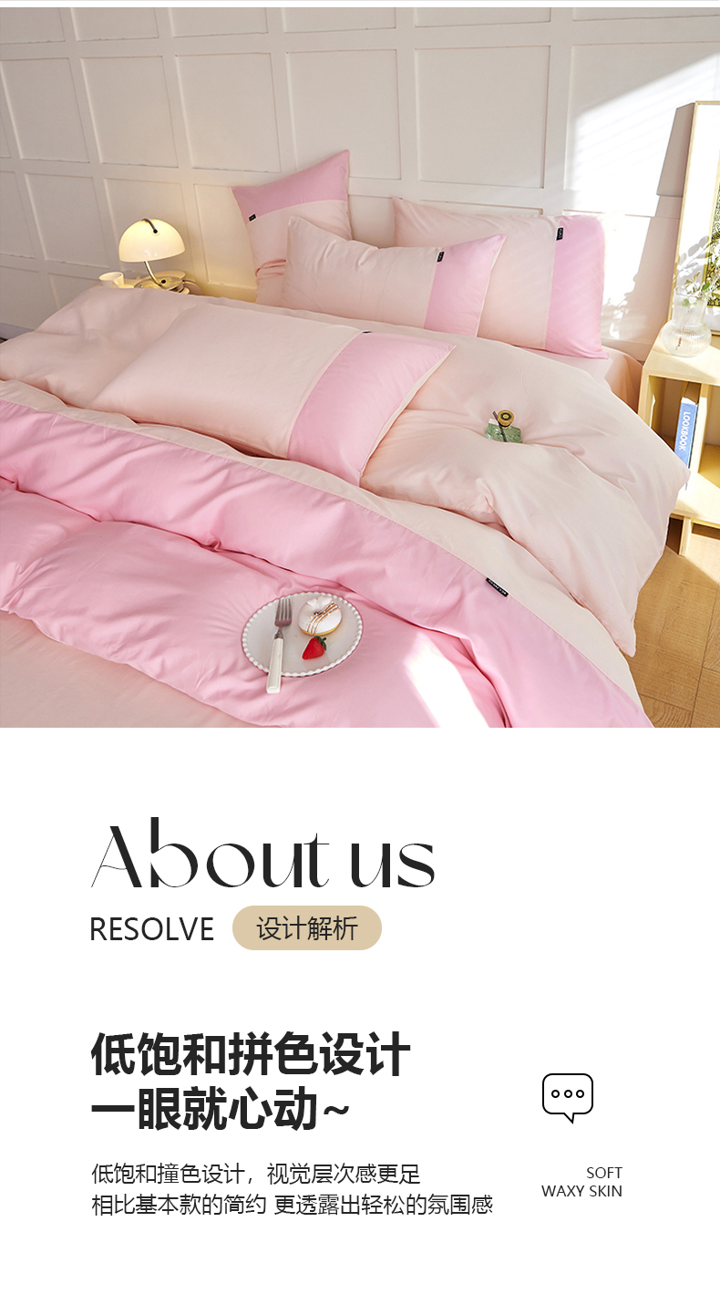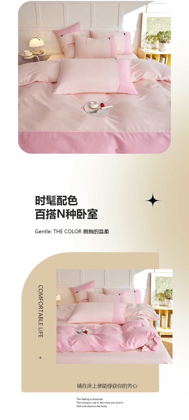 商品名称:2024新款13372全棉拼色正拼四件套系列 简尚-玉粉