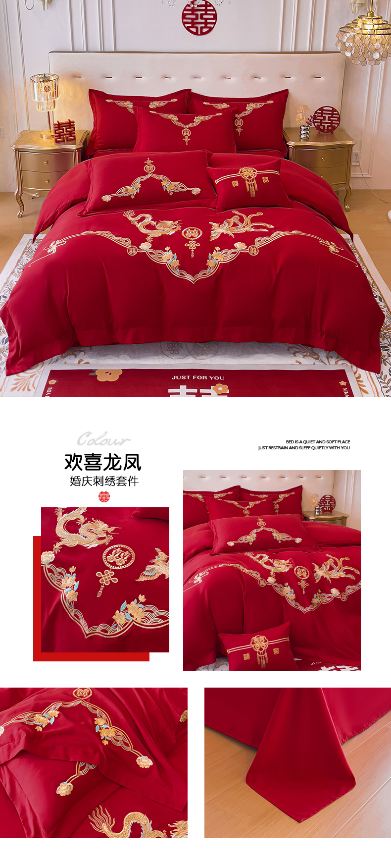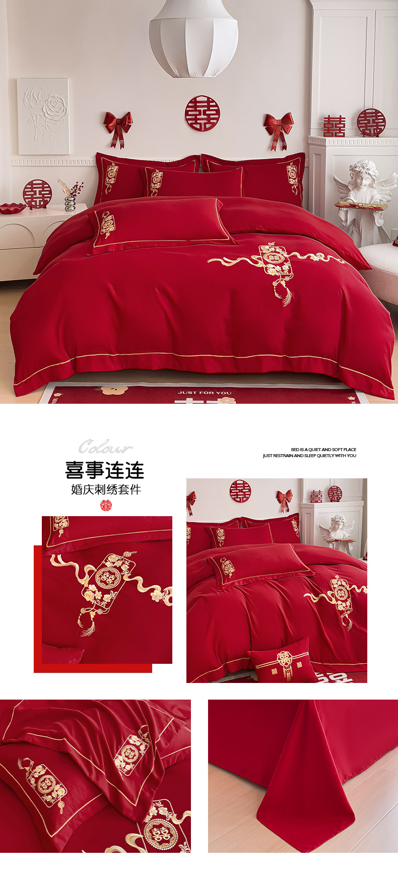 (总)2024新款亲肤面料婚庆刺绣系列四件套