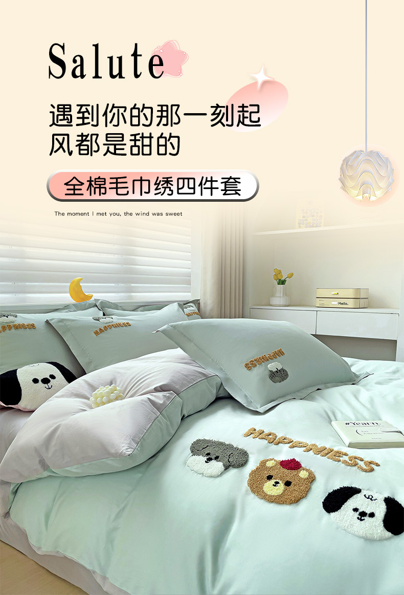 商品名称:娜娜 2024新款全棉亲肤舒适毛巾绣卡通系列四件套 汪汪队-繁星蓝
