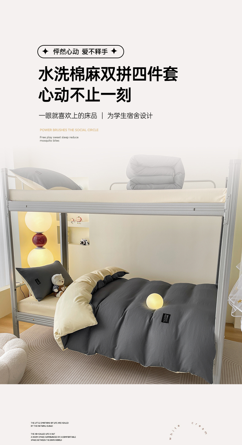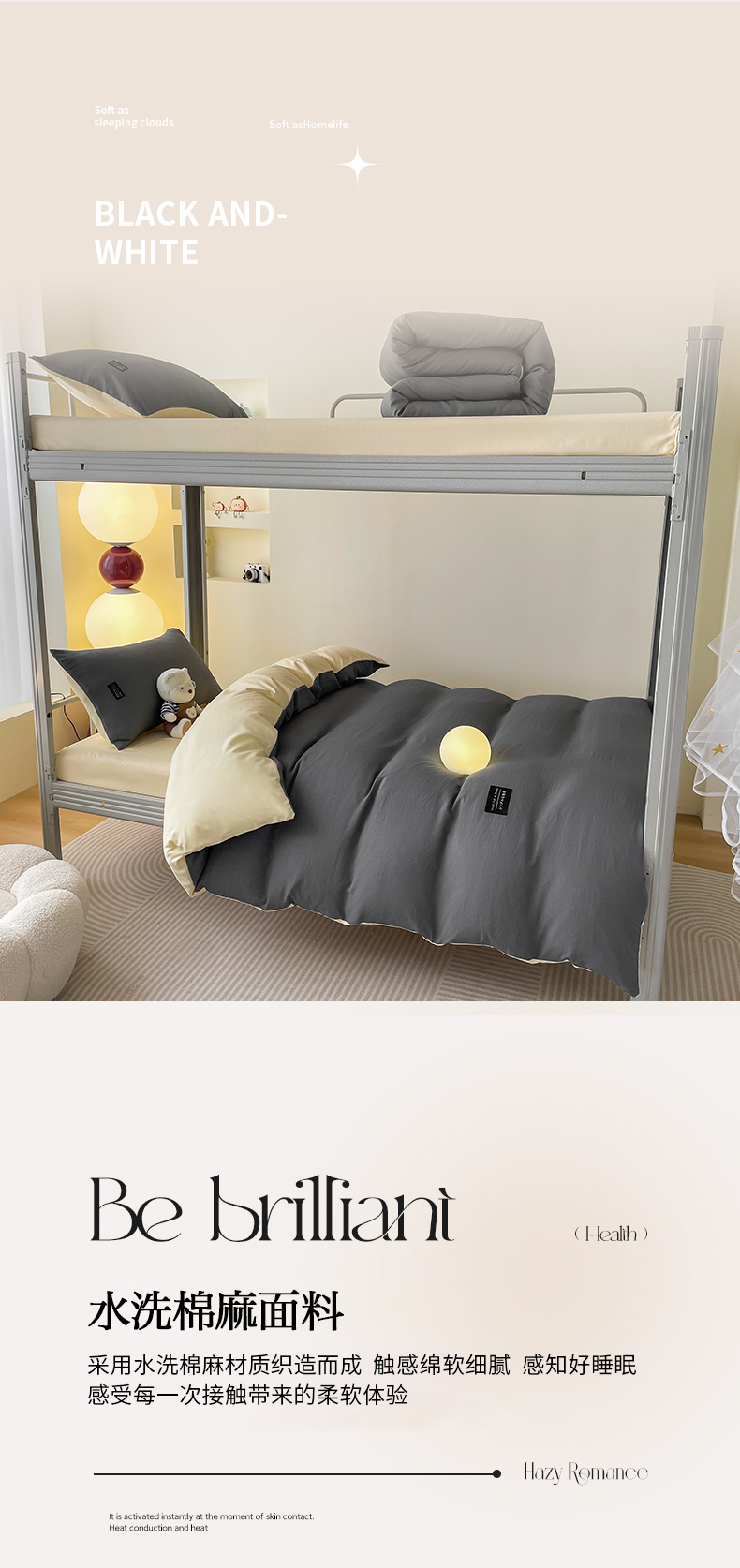 当前位置: 91家纺网 > 商品网购 > 床品套件 > 三件套 > 米瑞娜 2024新款水洗棉麻双拼纯色学生三件套 中灰+奶茶