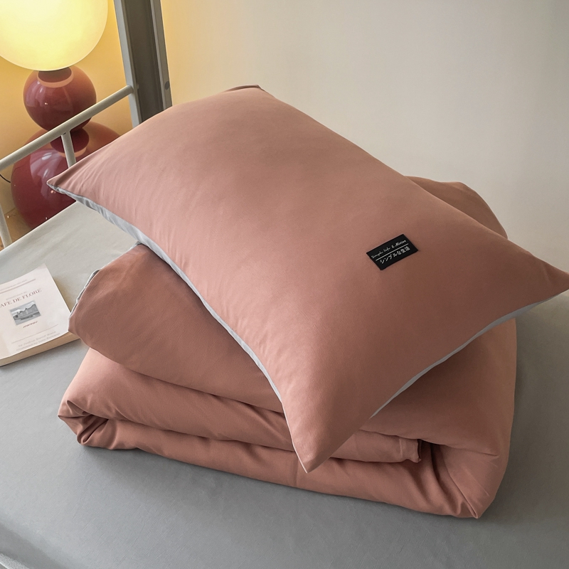 米瑞娜2024水洗棉麻双拼纯色学生款枕套 黛粉+浅灰