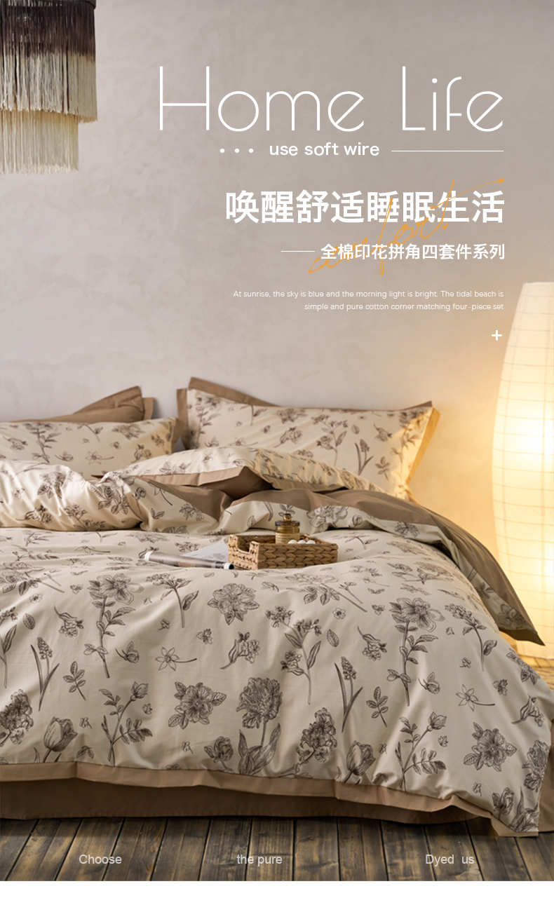 千朵森 2024新款全棉长绒棉拼角款印花四件套(风格一) 简爱