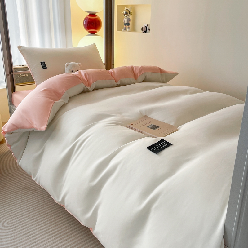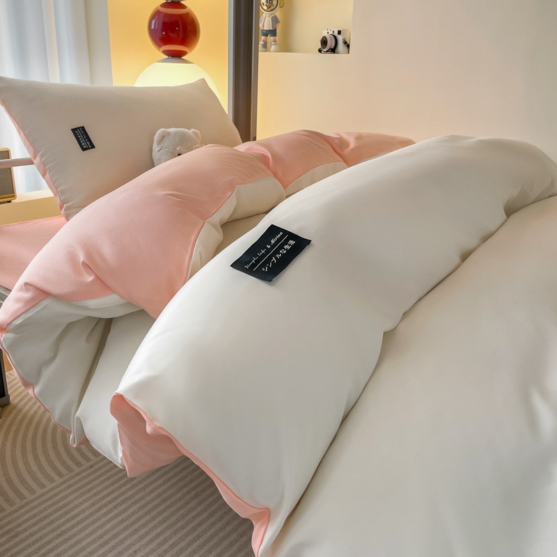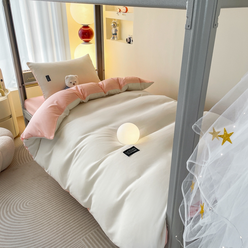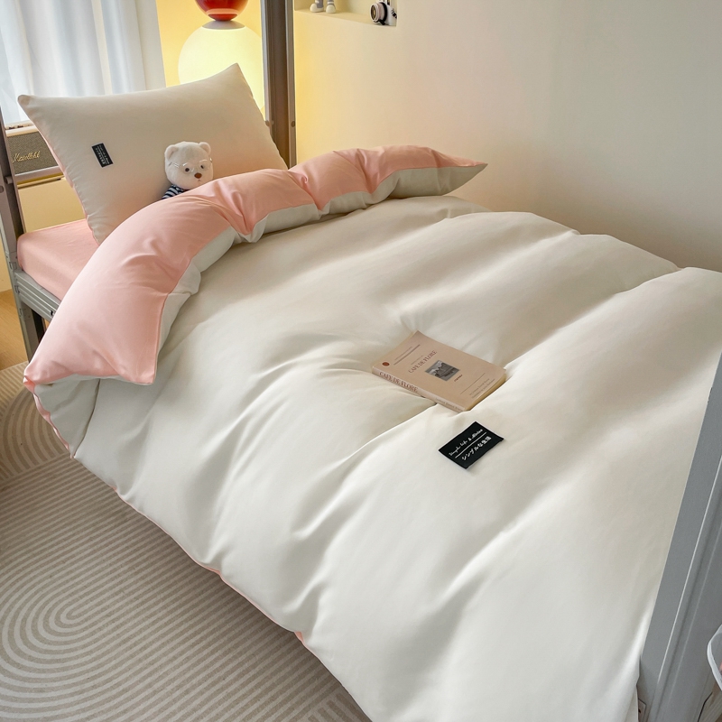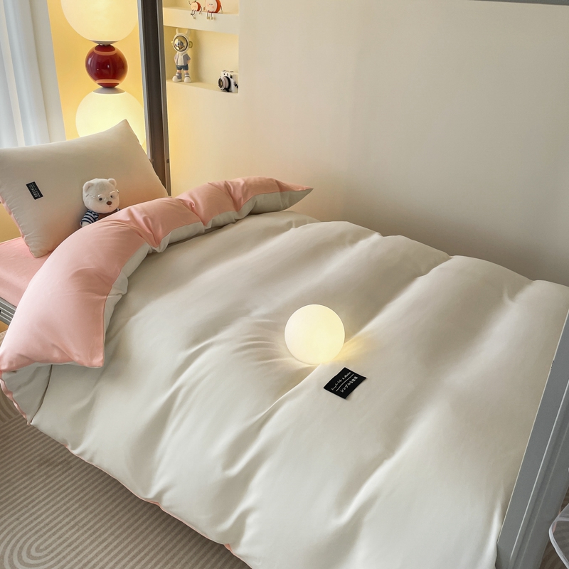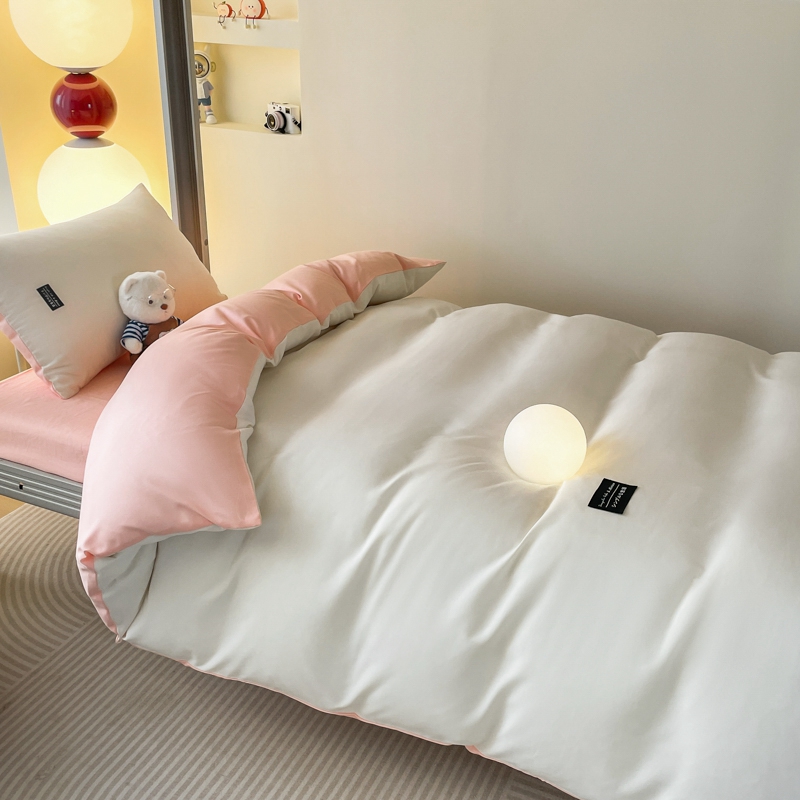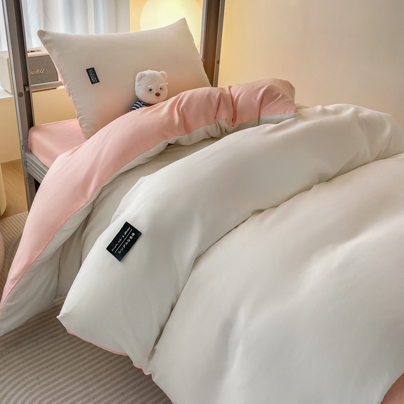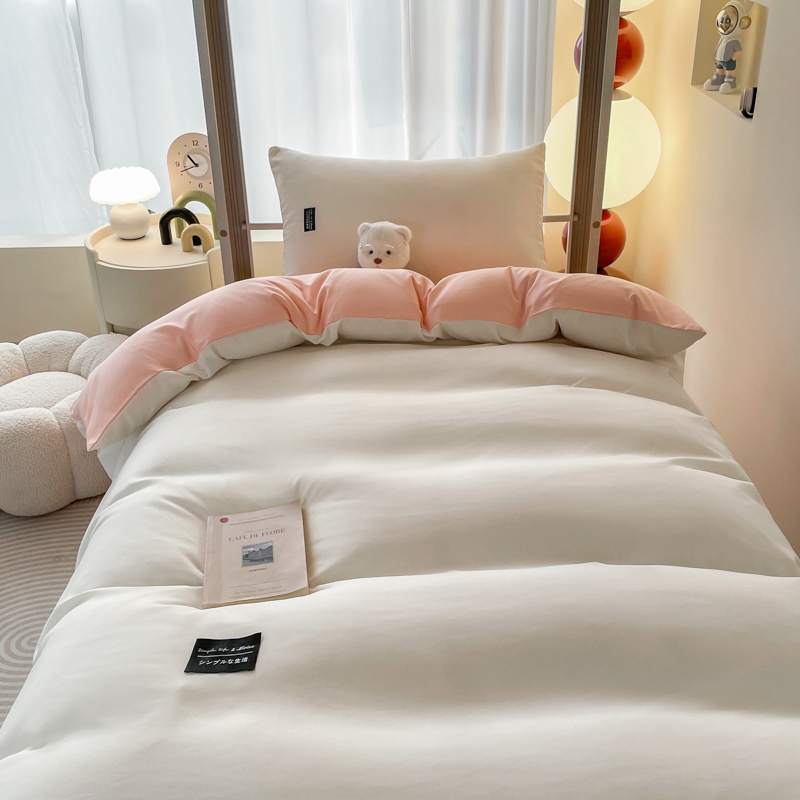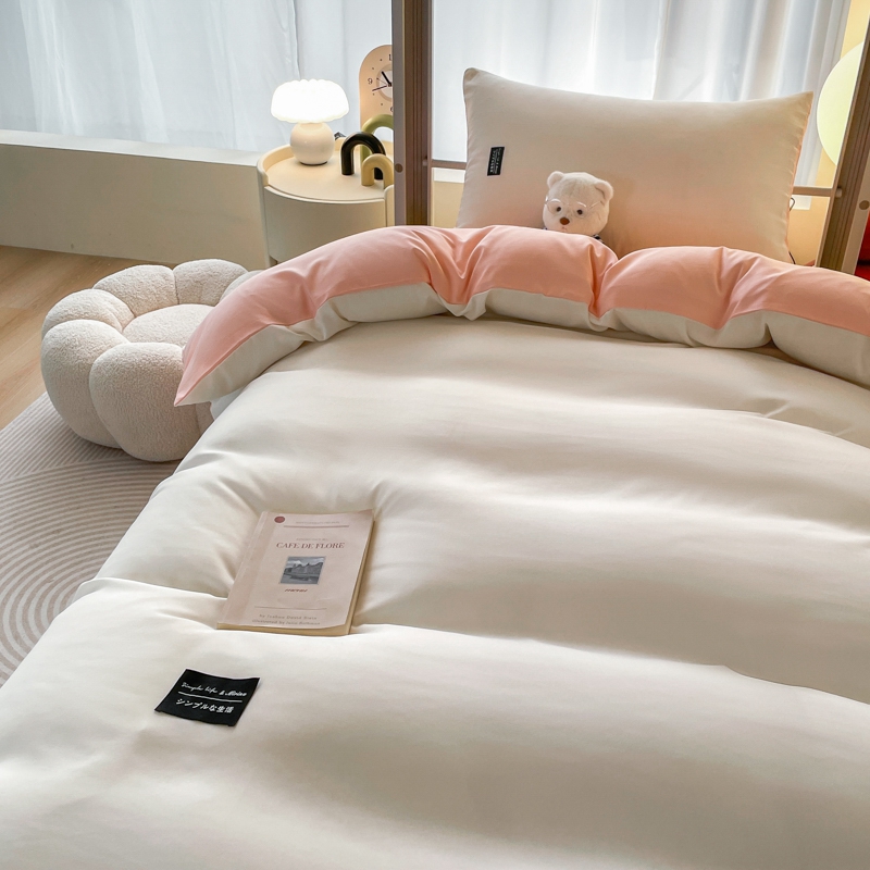 商品名称:米瑞娜2024水洗棉麻双拼纯色学生款被套 奶白+冰粉