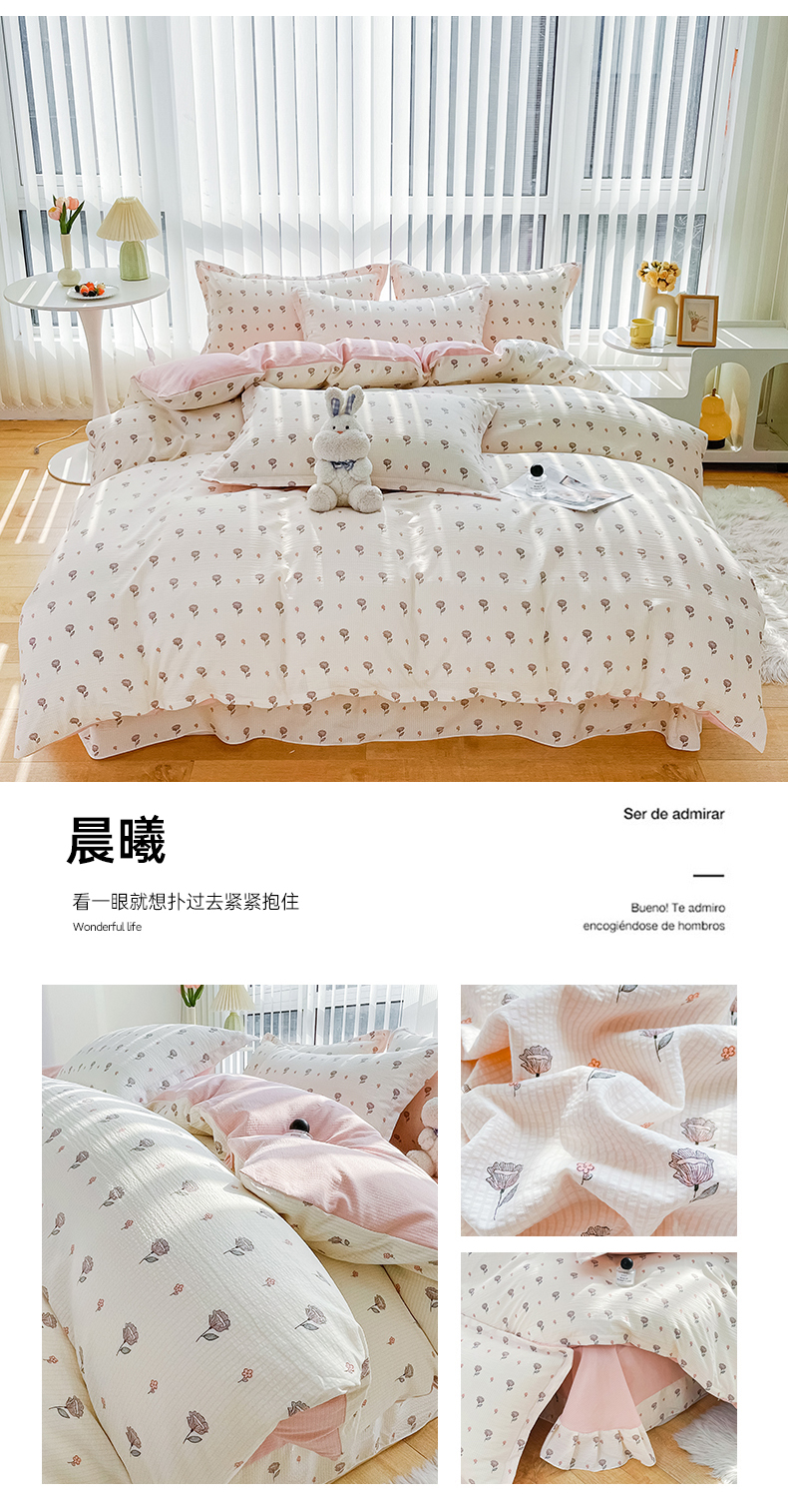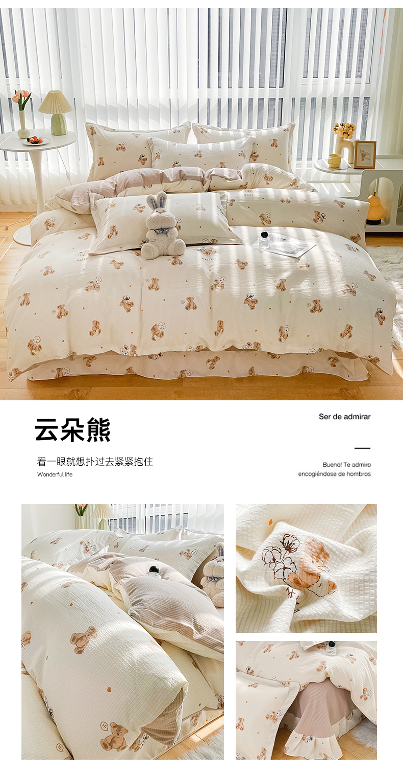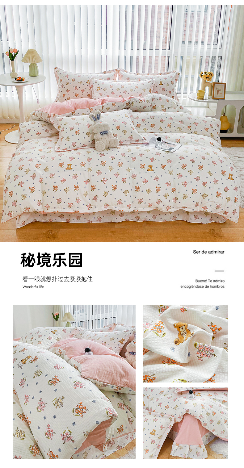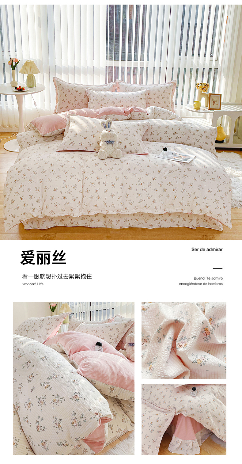 可思家纺 2024新款直播爆款泡泡棉四件套现货供应 爱丽丝