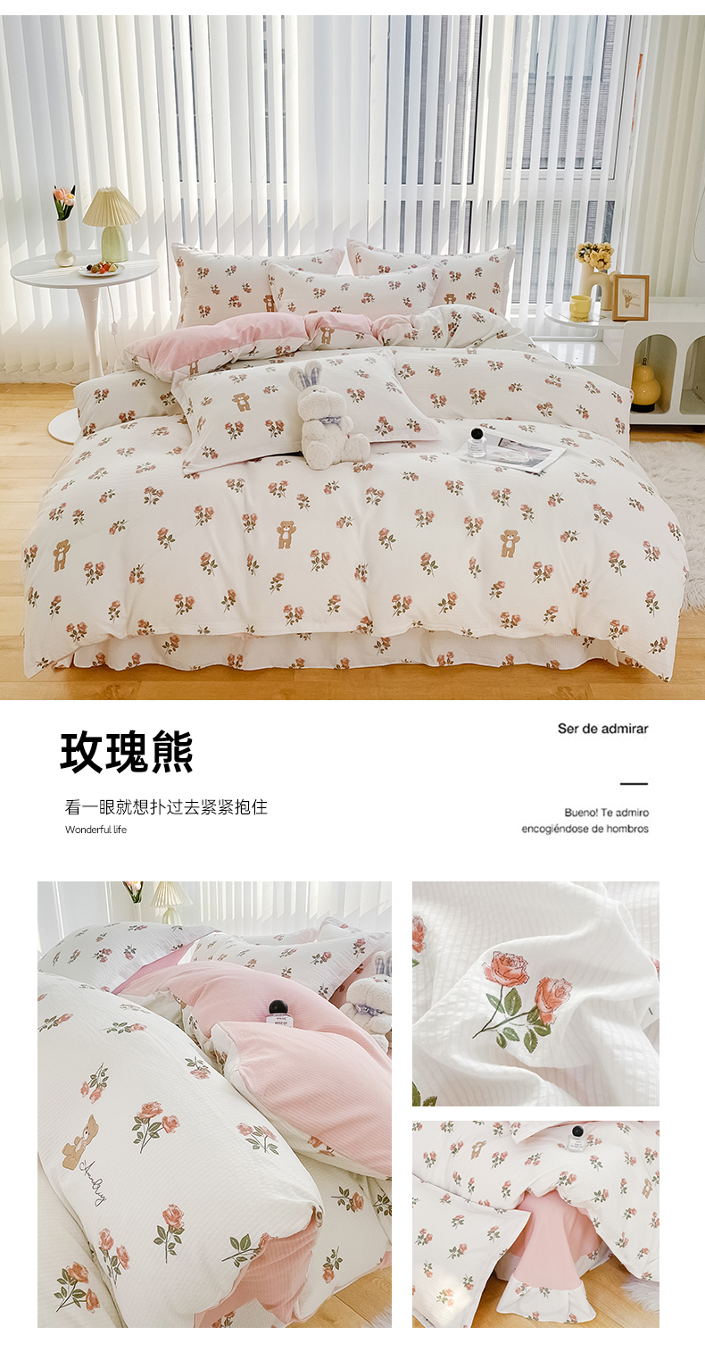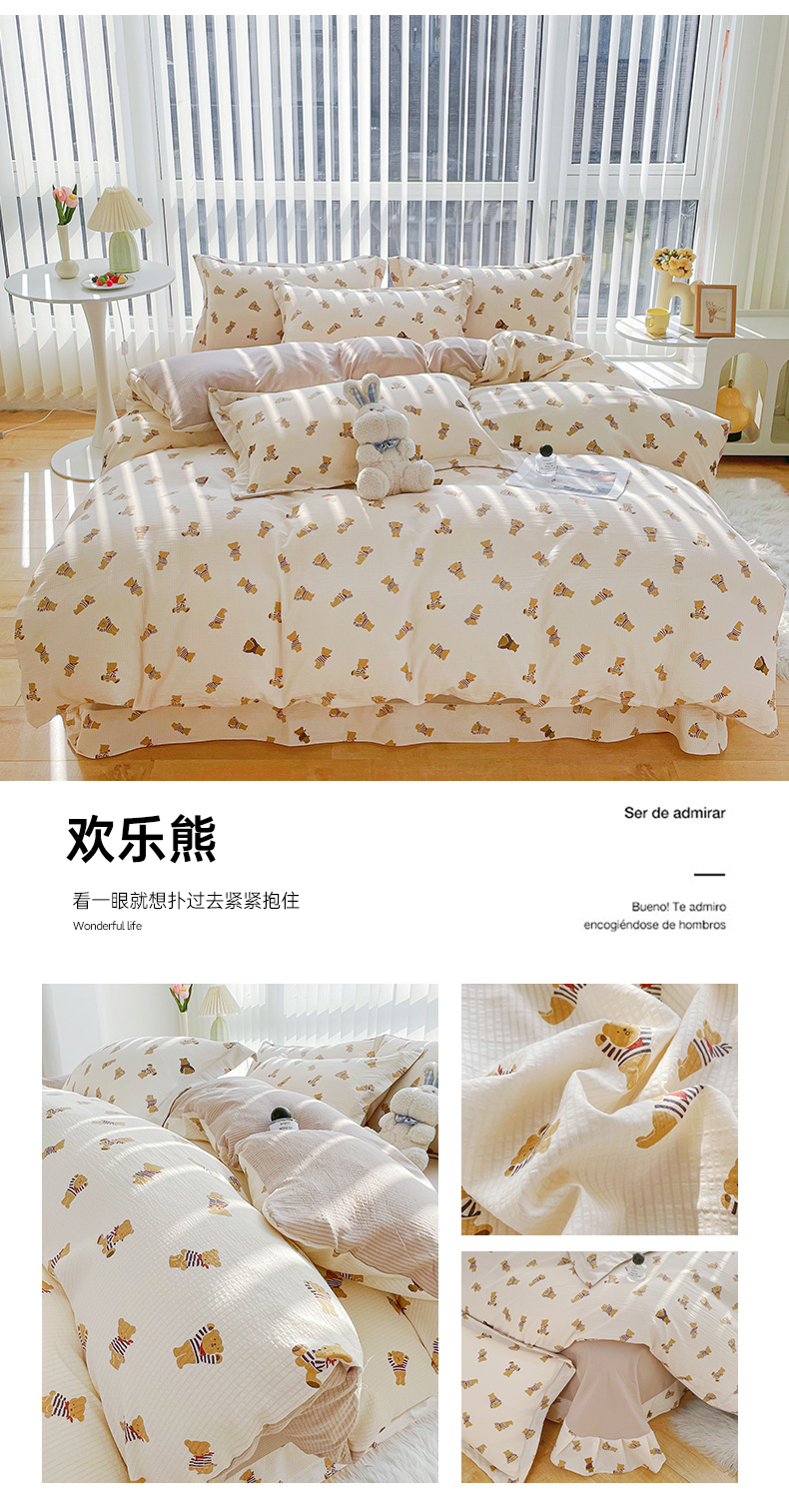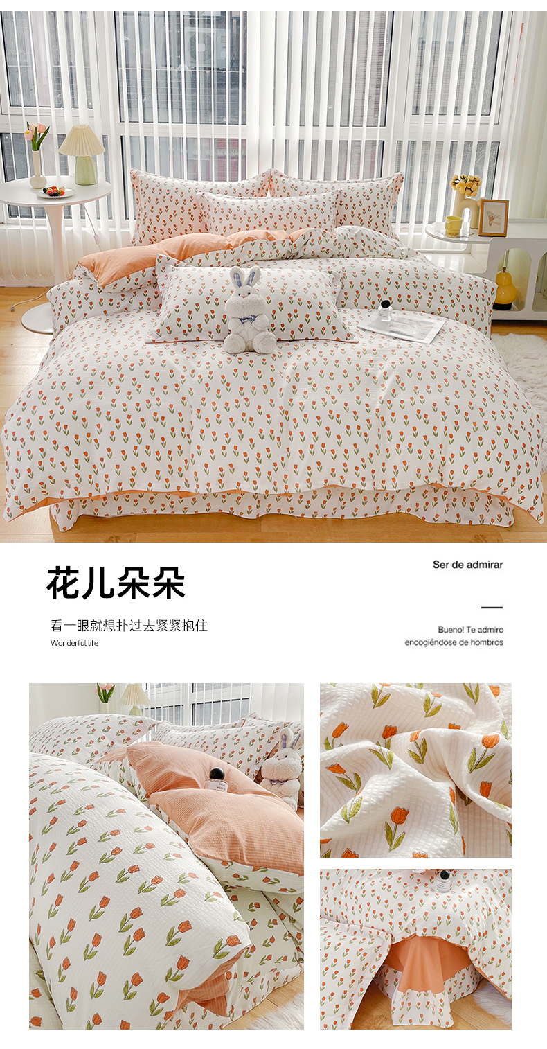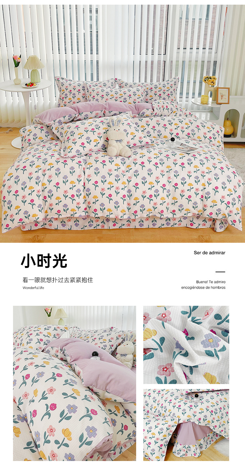 可思家纺 2024新款直播爆款泡泡棉四件套现货供应 爱丽丝